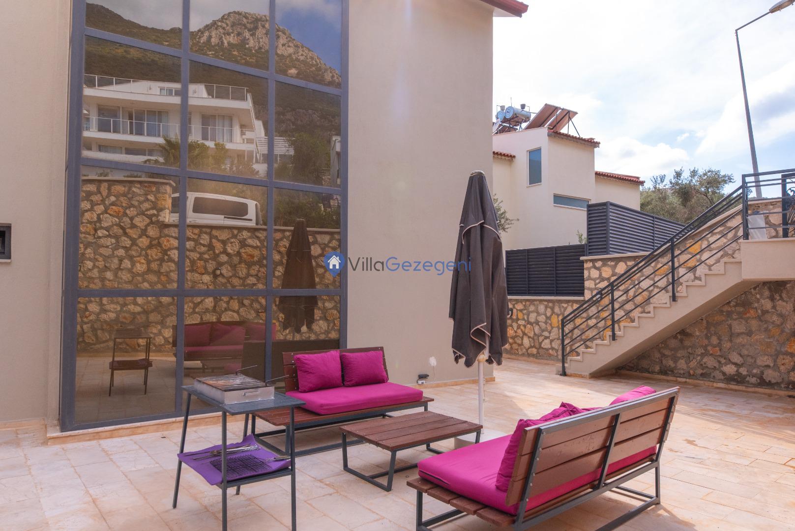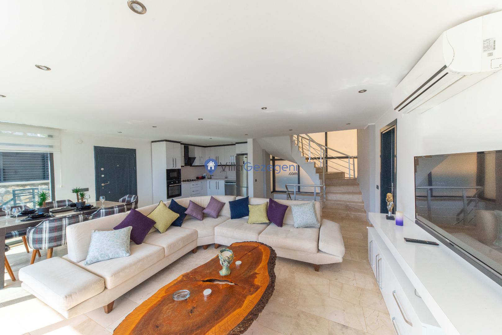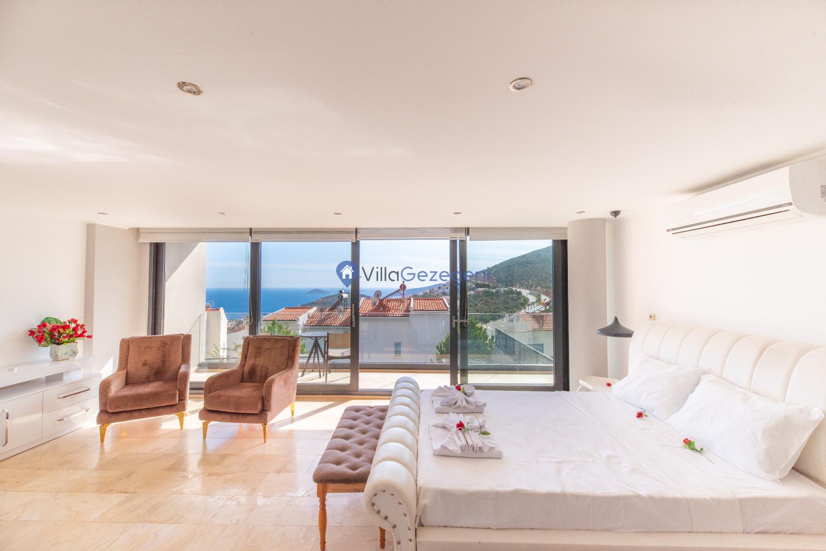 Kalkan Kızıltaş Mevkiinde yer alan 5 yatak odalı 10 kişi kapasiteli Deniz Manzaralı Kiralık Tatil Villası.