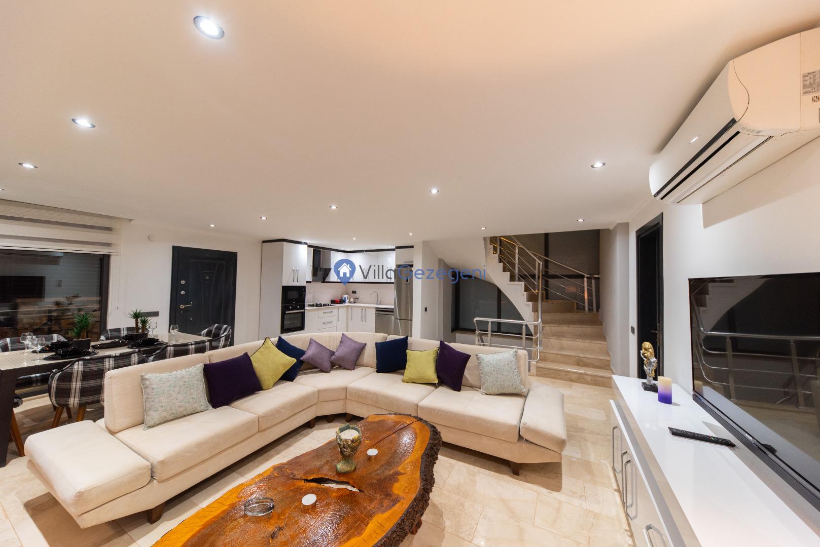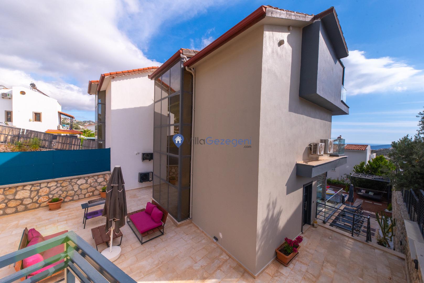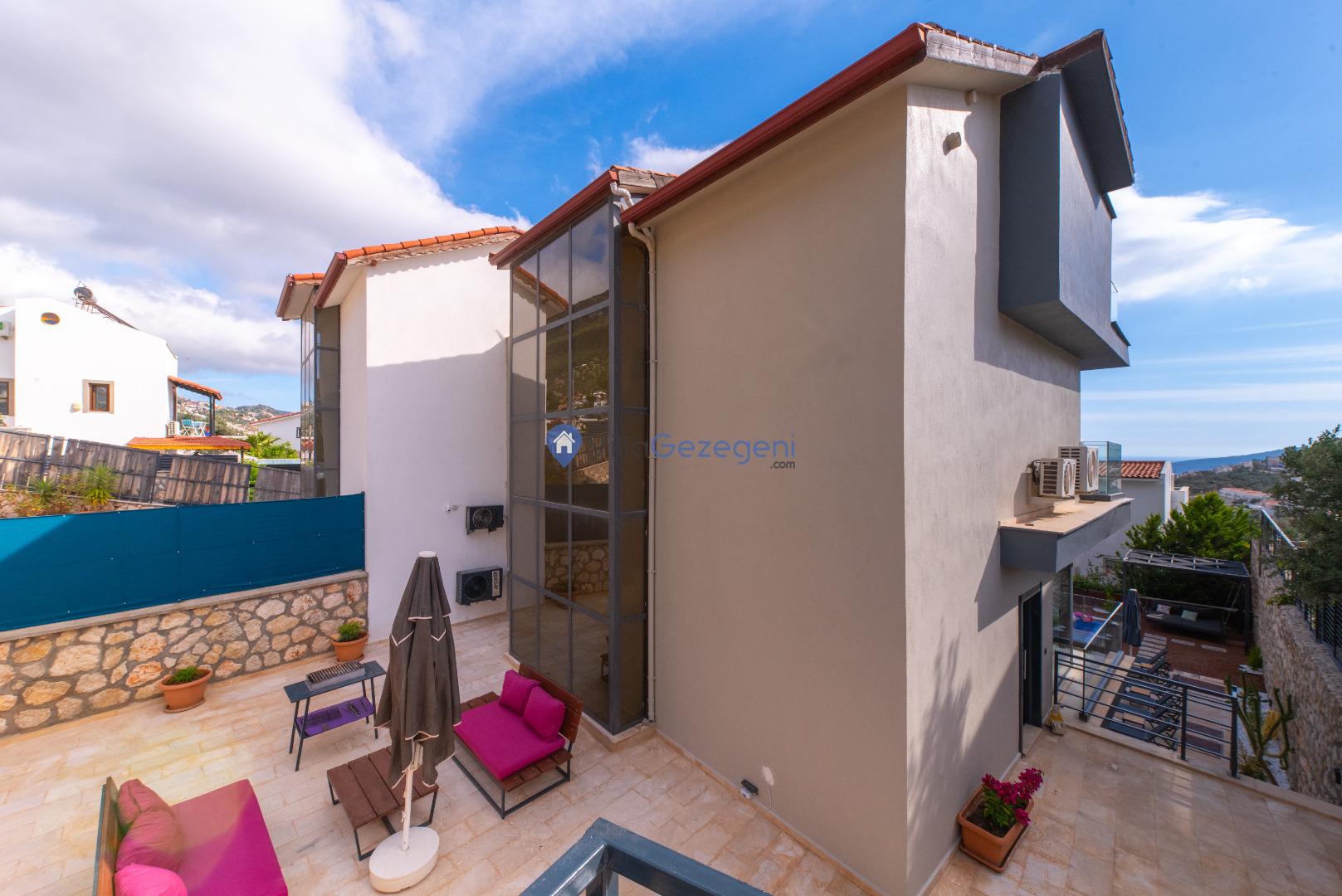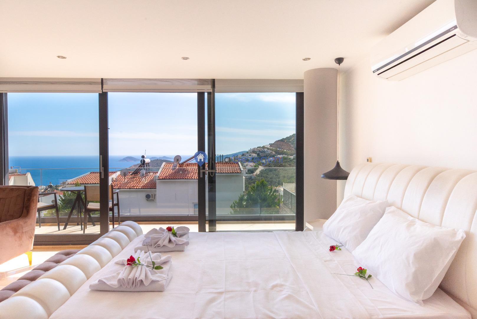 Kalkan Kızıltaş Mevkiinde yer alan 5 yatak odalı 10 kişi kapasiteli Deniz Manzaralı Kiralık Tatil Villası.