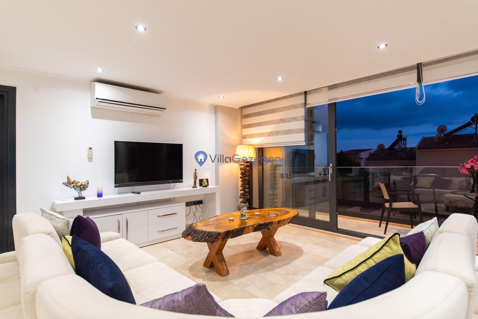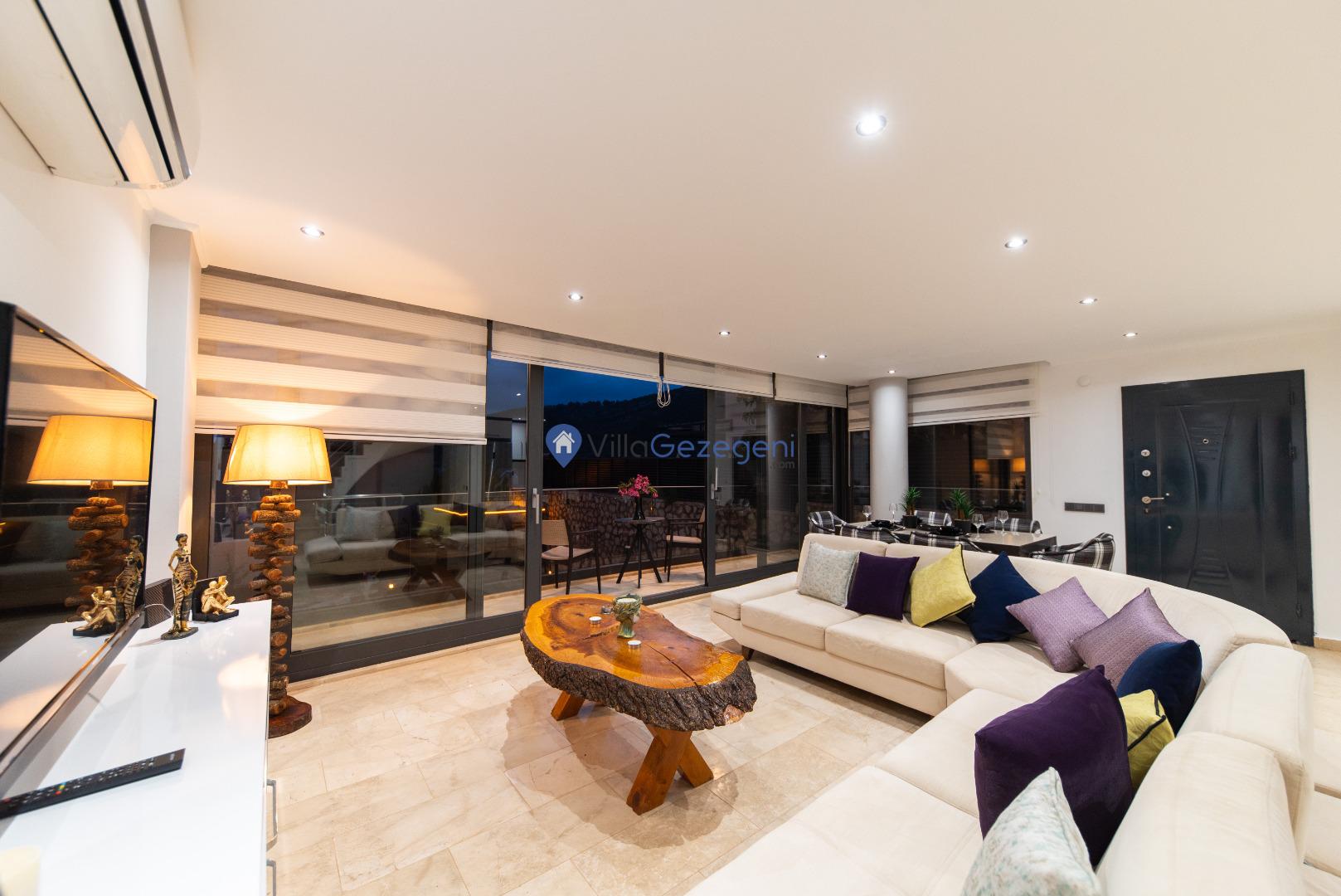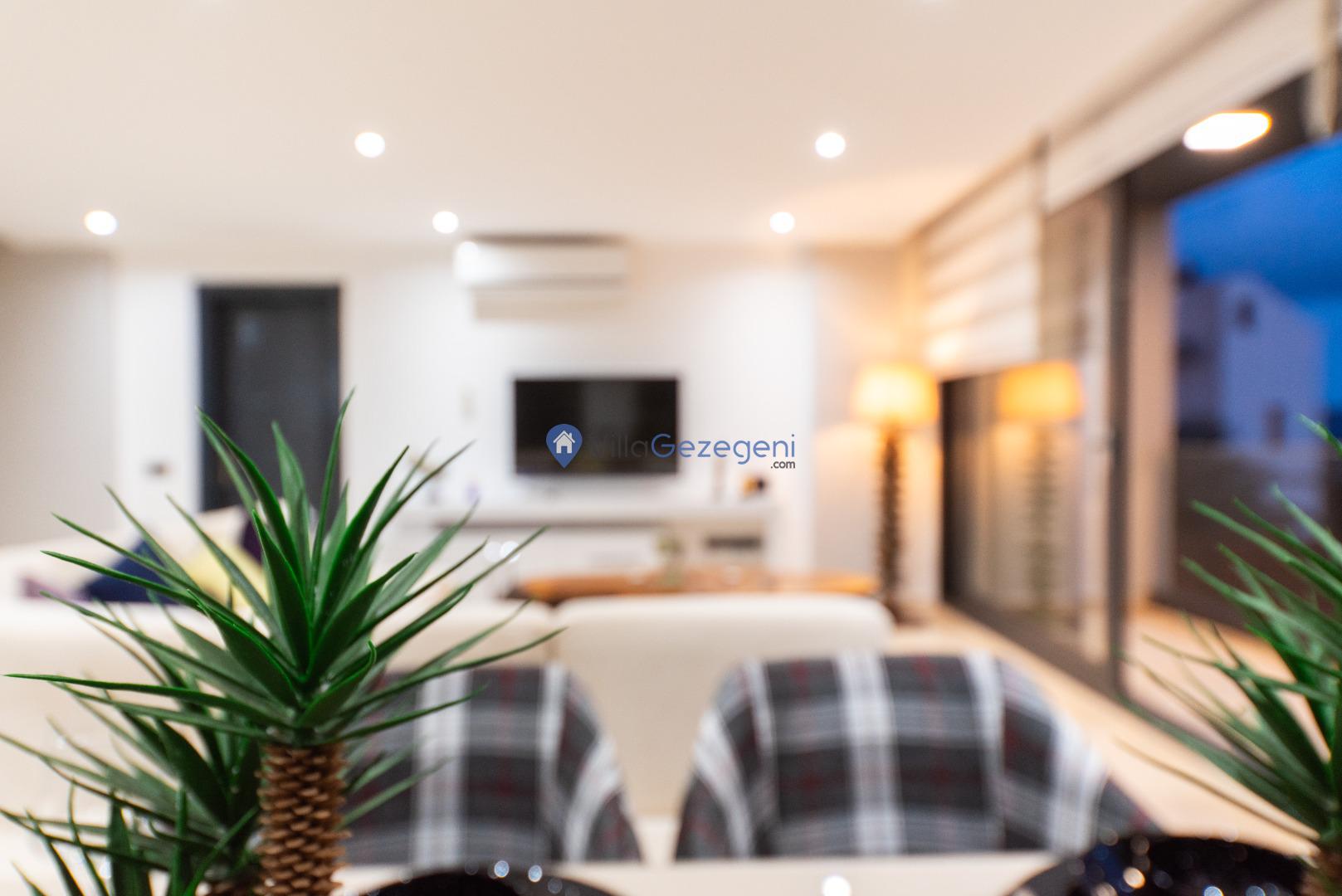📺 Salon: Geniş oturma grubu, Smart TV, klima, kahve köşesi ve yemek masası