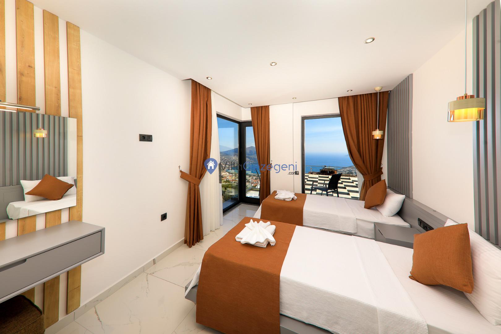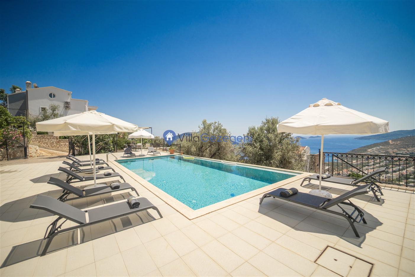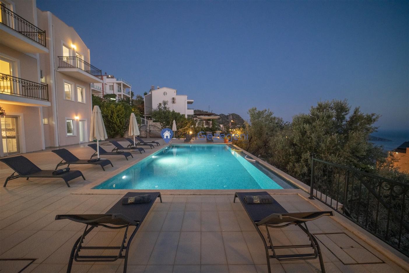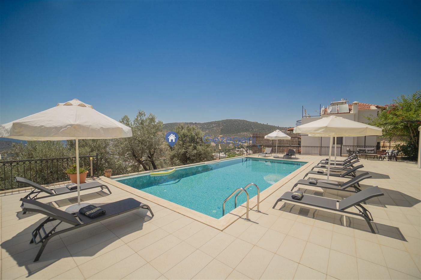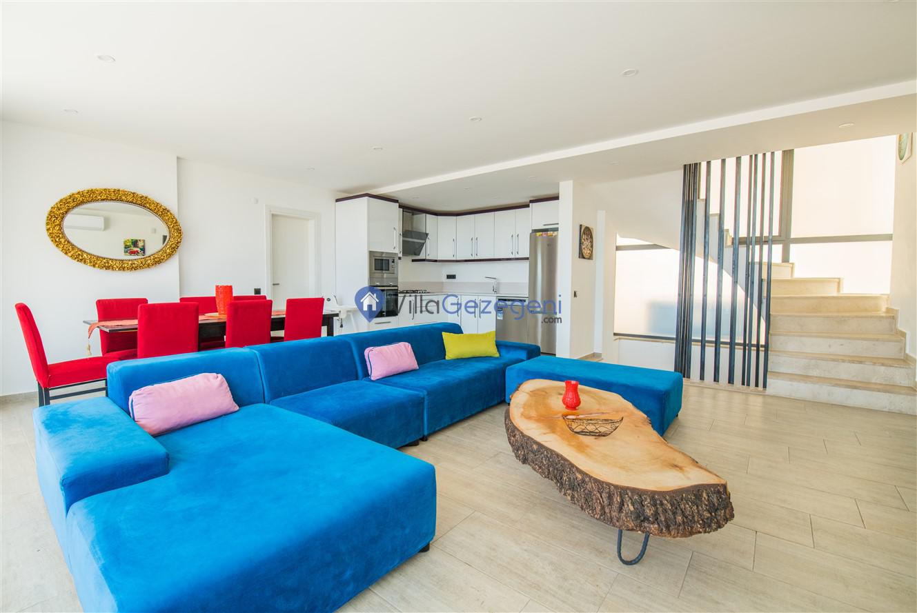 Kaş/Kalkan/Kızıltaş Bölgesinde yer alan 5 yatak odalı 10 kişi kapasiteli geniş aile ve arkadaş grupları için uygun deniz manzaralı tatil villasıdır.