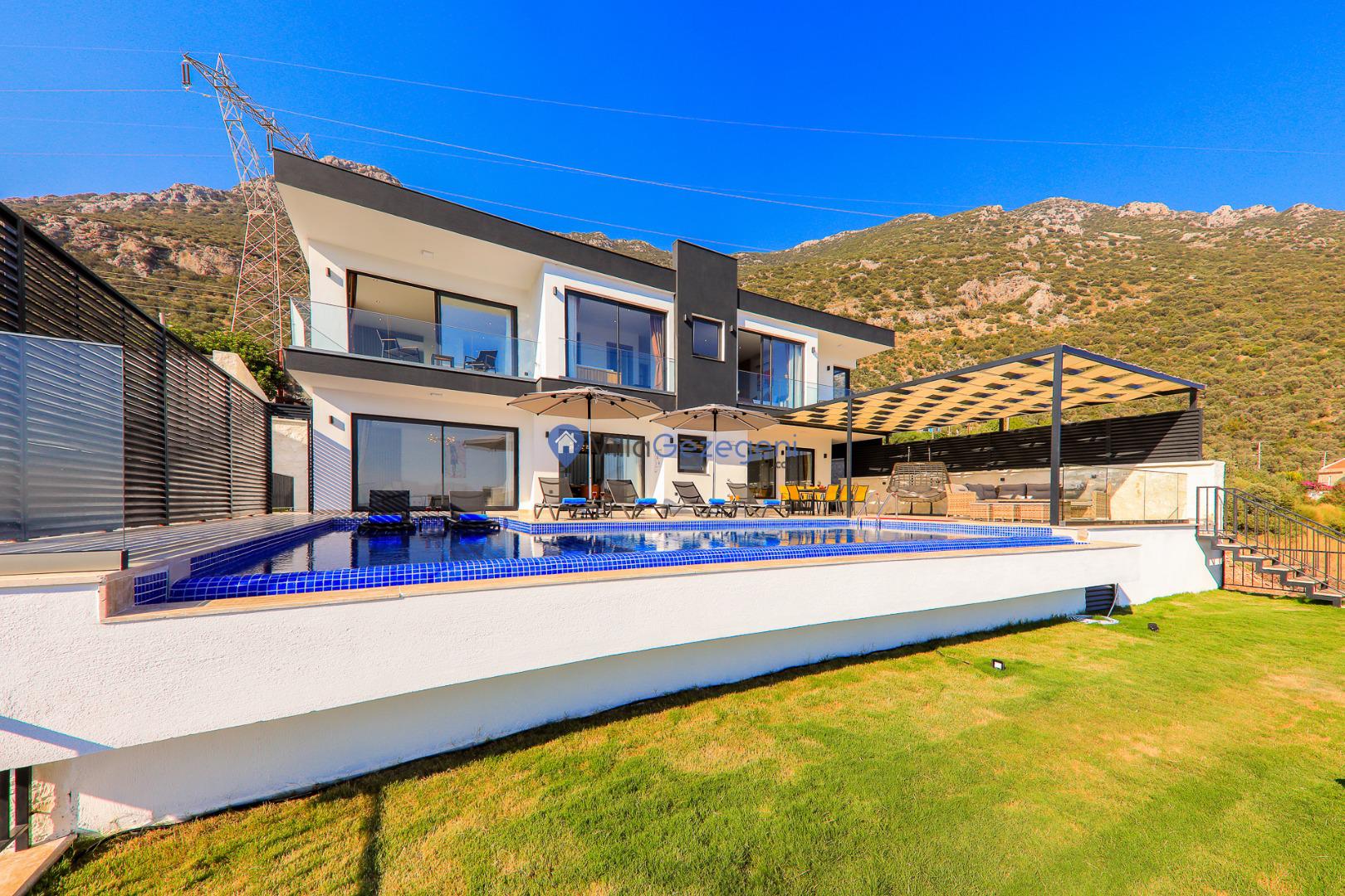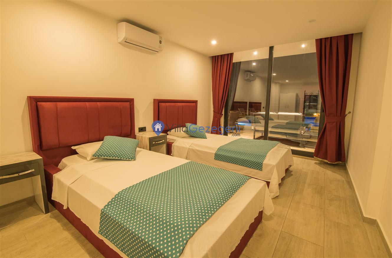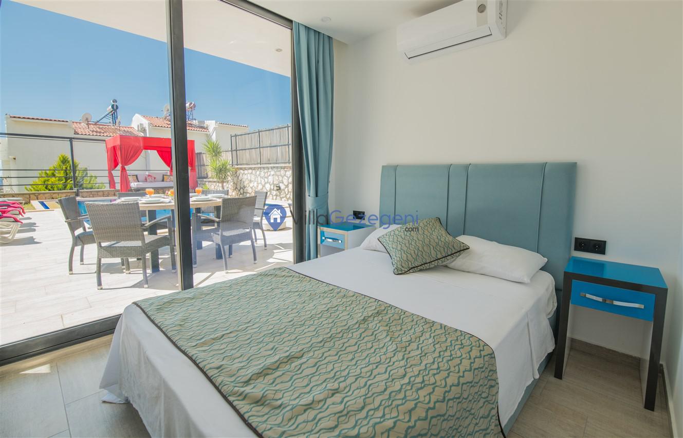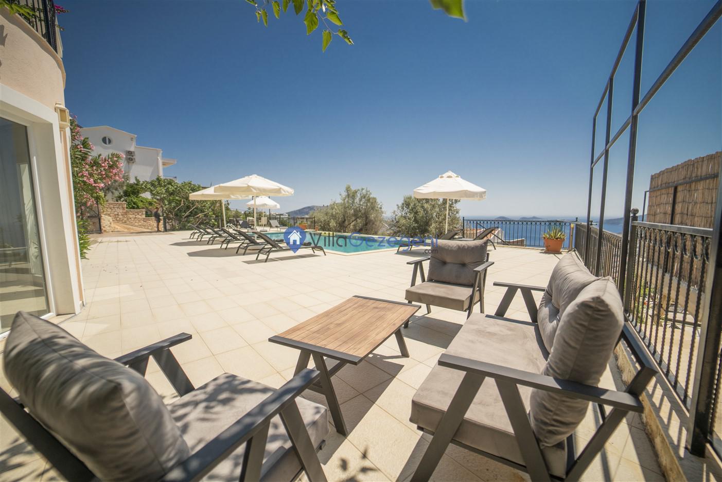 Kaş/Kalkan/Kızıltaş Bölgesinde yer alan 5 yatak odalı 10 kişi kapasiteli geniş aile ve arkadaş grupları için uygun deniz manzaralı tatil villasıdır.