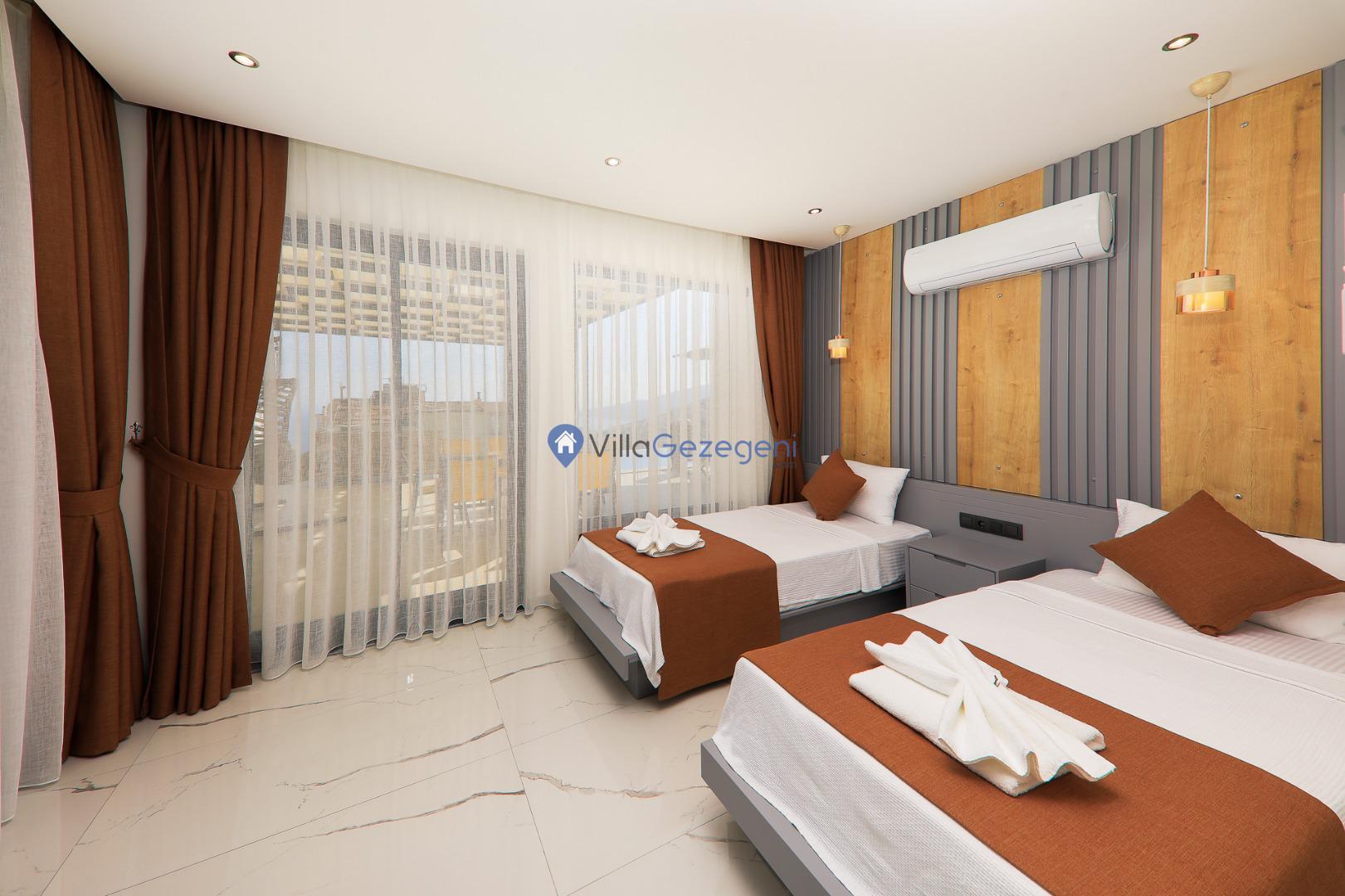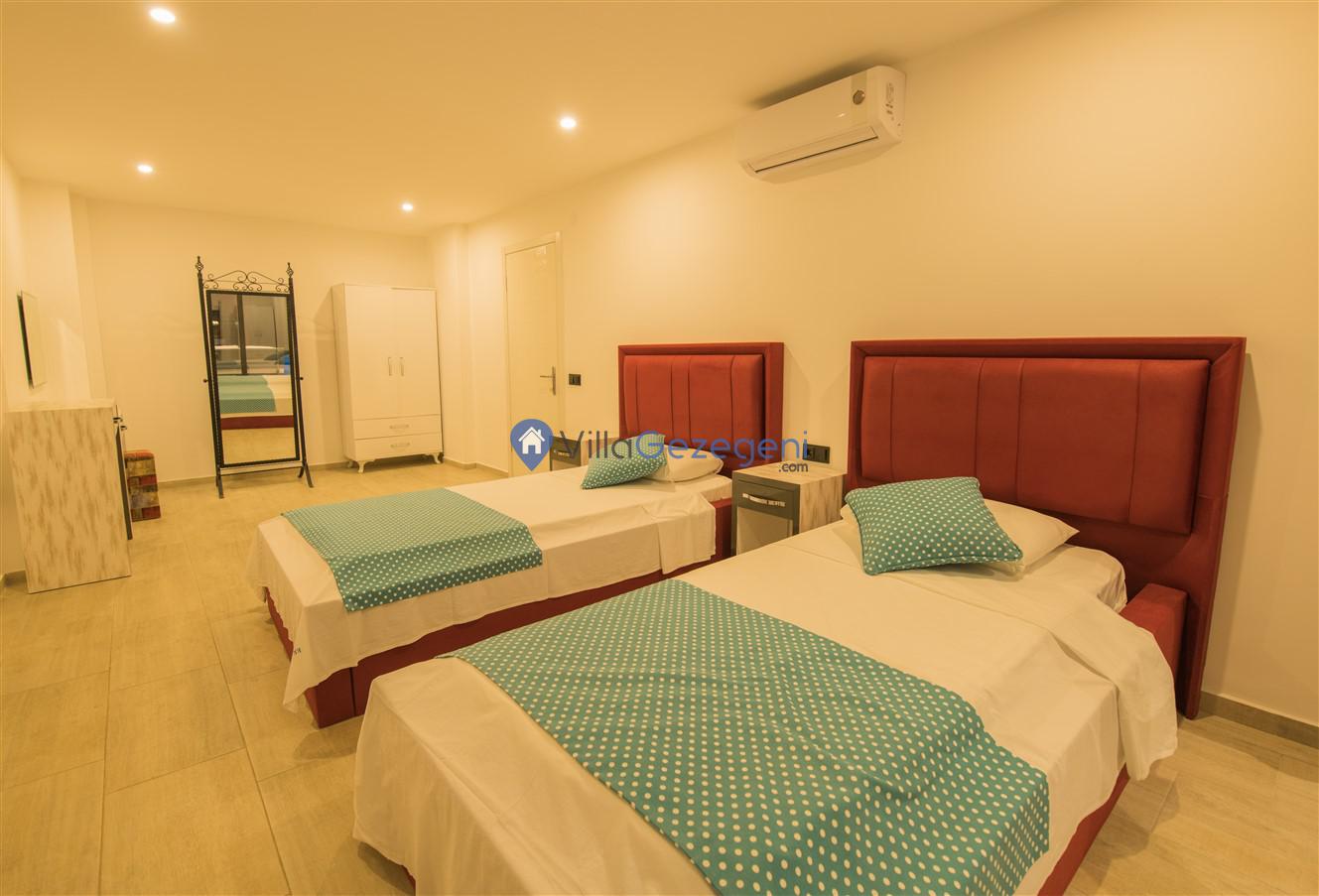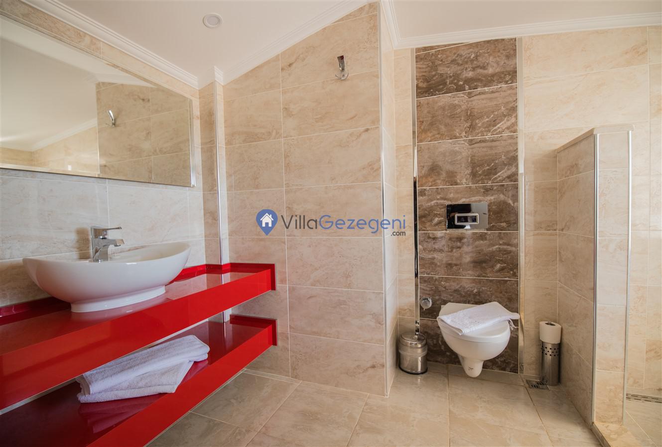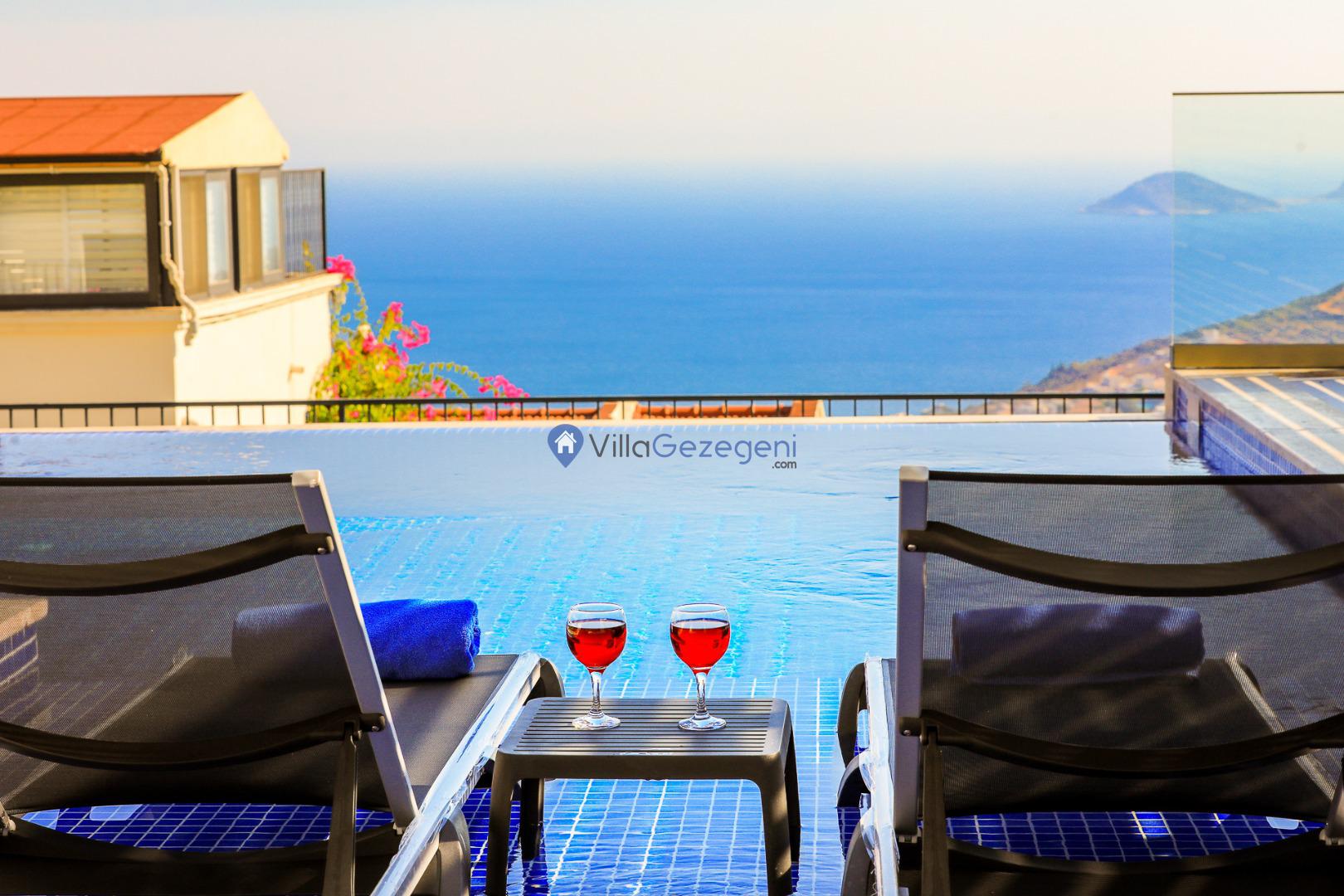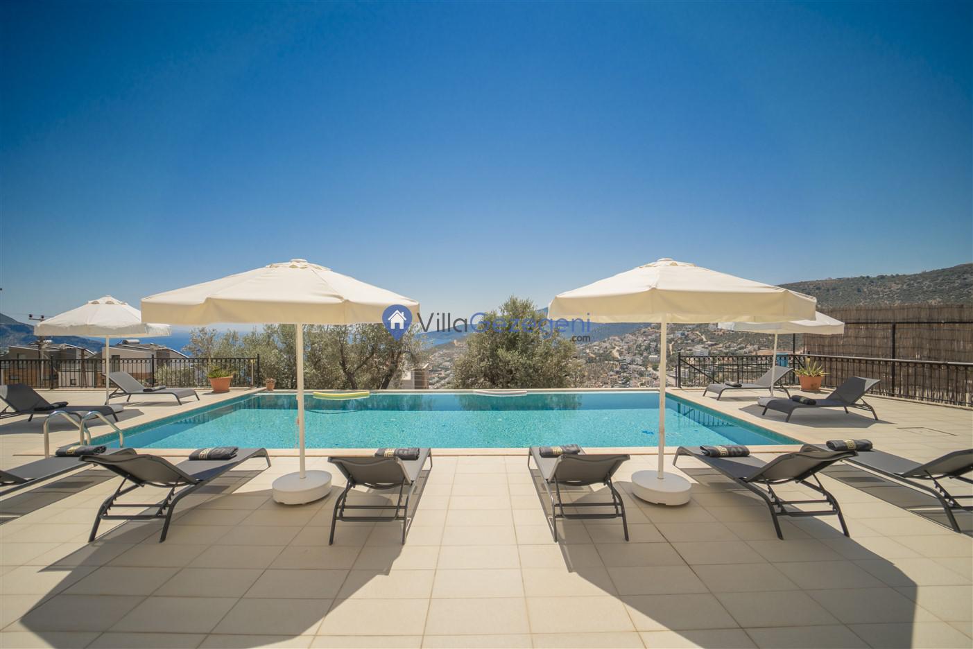 Kaş/Kalkan/Kızıltaş Bölgesinde yer alan 5 yatak odalı 10 kişi kapasiteli geniş aile ve arkadaş grupları için uygun deniz manzaralı tatil villasıdır.