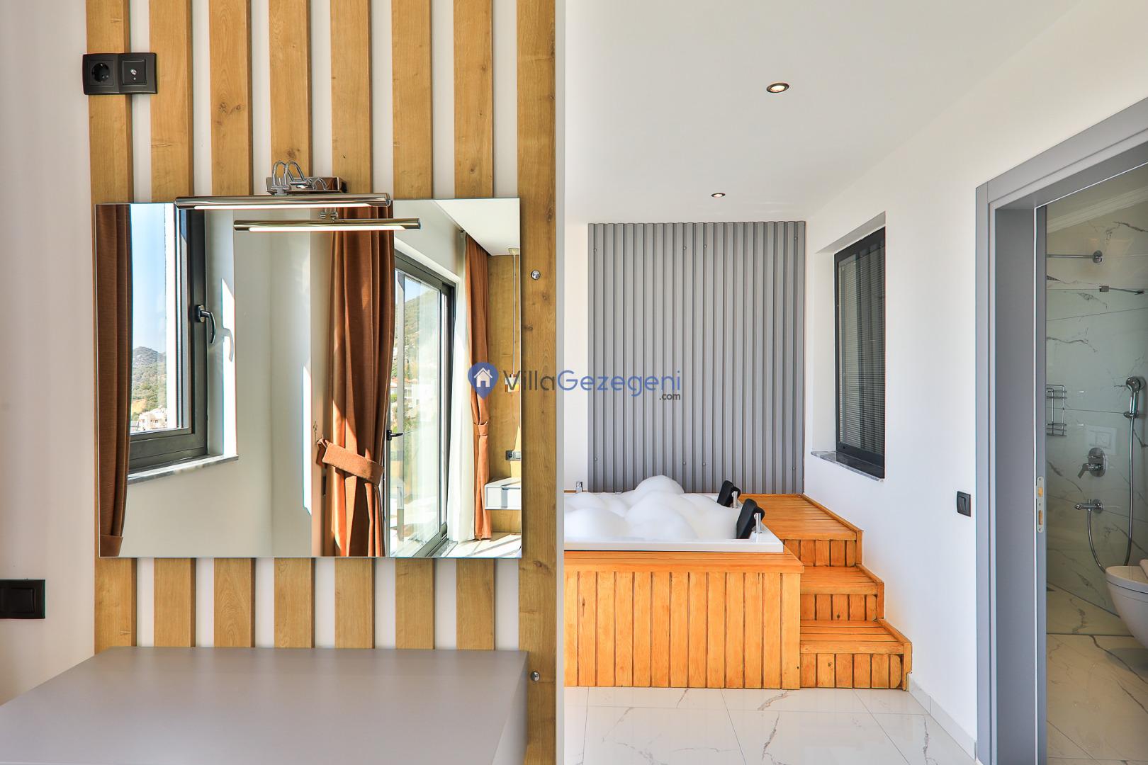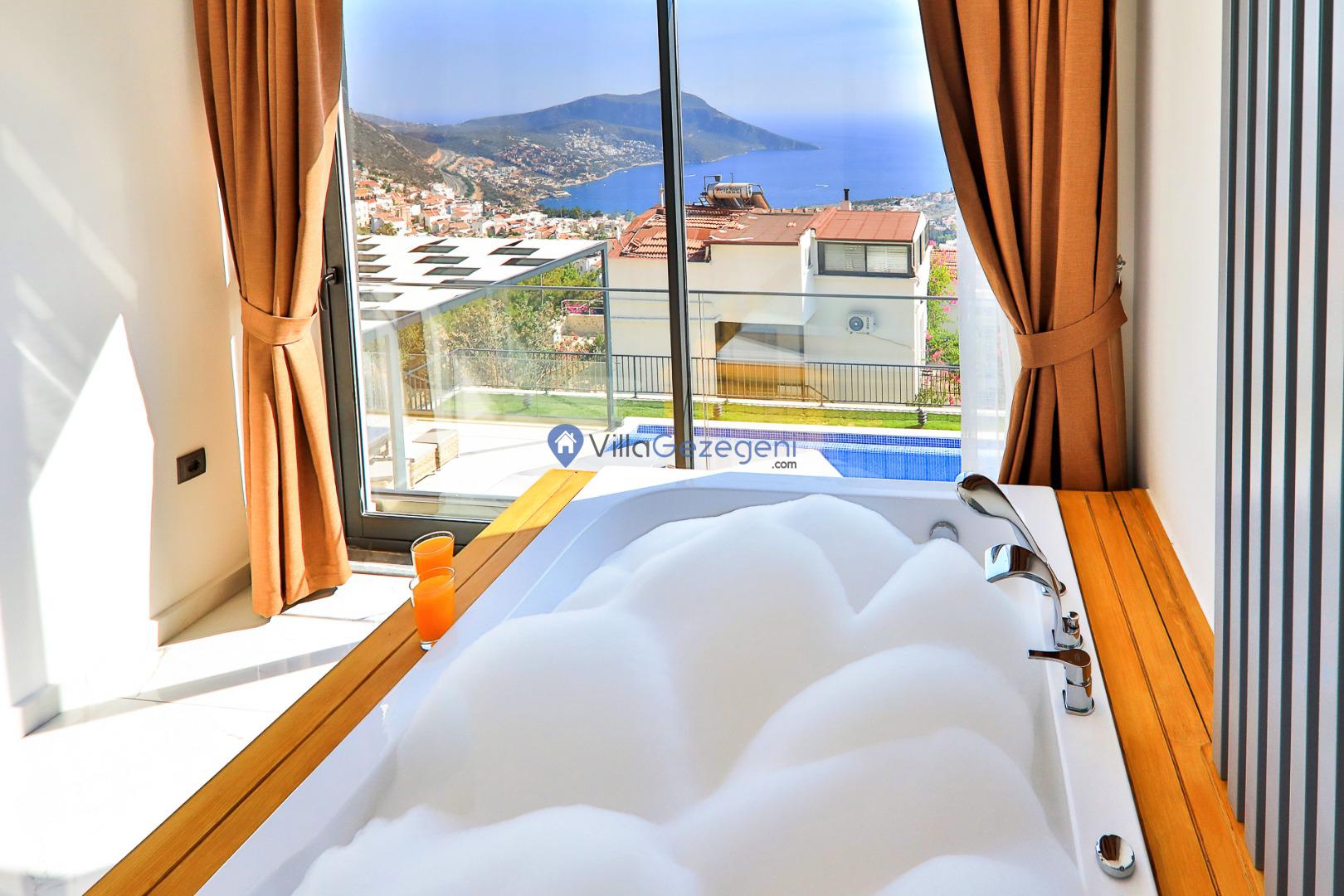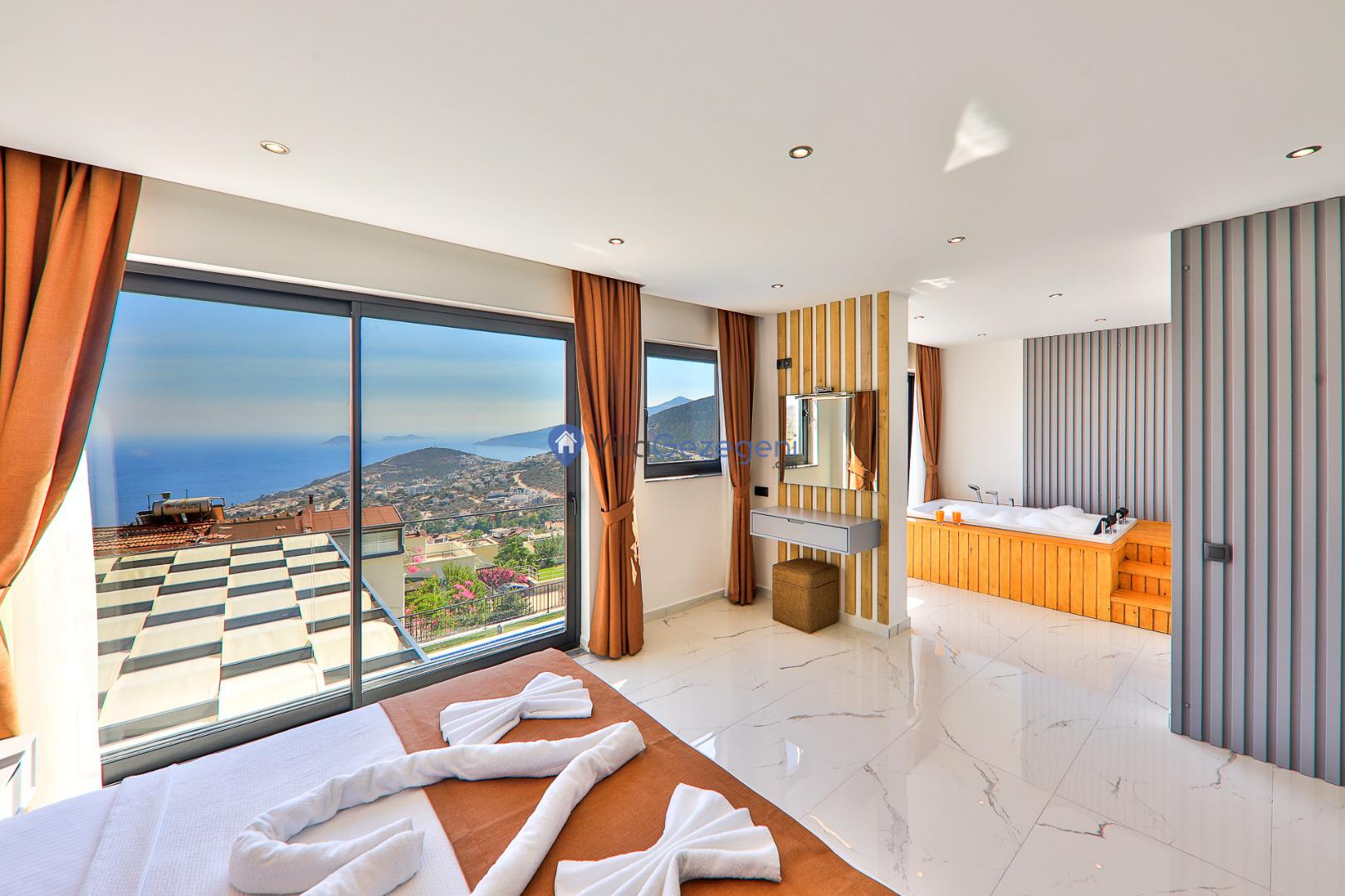 Kaş/Kalkan/Kızıltaş Bölgesinde yer alan 3 yatak odalı 6 kişi kapasiteli, lüks, deniz manzaralı, jakuzili,şehir merkezine yakın kiralık tatil villası.