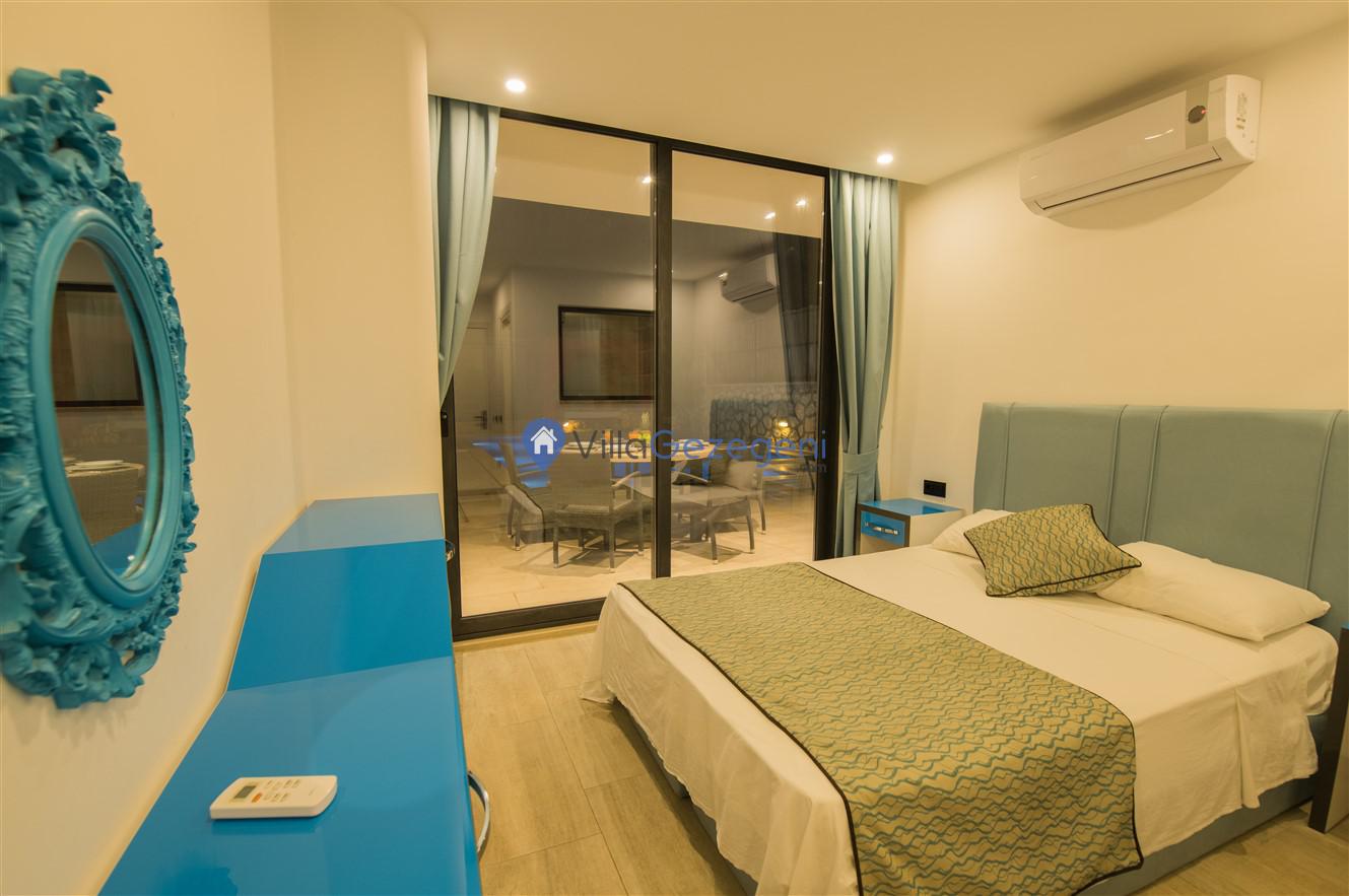 Villamızın genel konsept ve özelliklerinden tekrar bahsedecek olursak; villamızın 1 adet müstakil özel havuzu bulunmaktadır. Geniş bir bahçeye sahip olan villamız rahatlığı ön planda tutan 4 adet suit yatak odası ve 5 yatak 4 banyo, hareket alanı geniş bir mutfak ve 8 kişinin geniş aralıklarla rahatlıkla oturabileceği koltuklara sahip salonu bulunmaktadır.