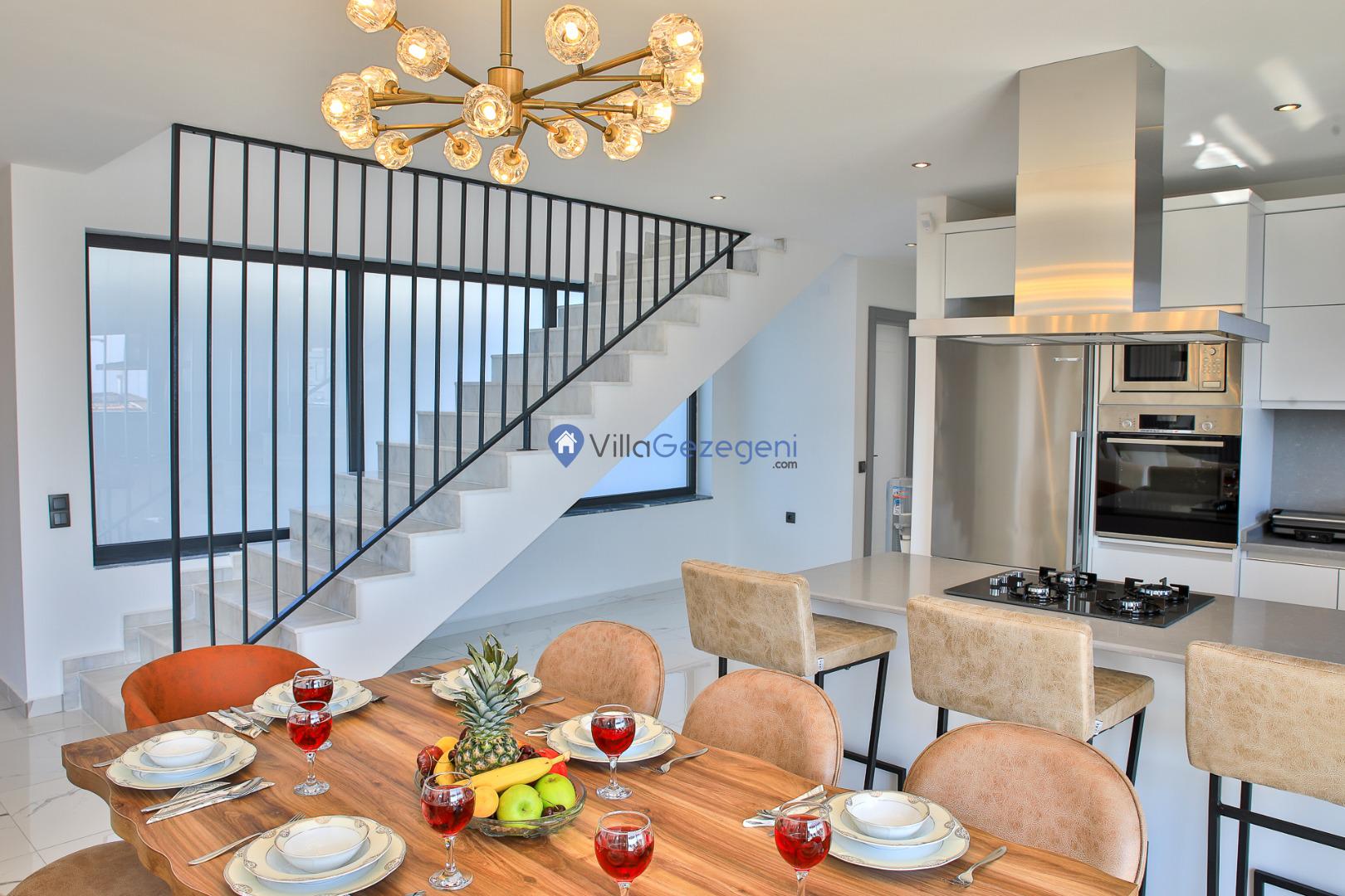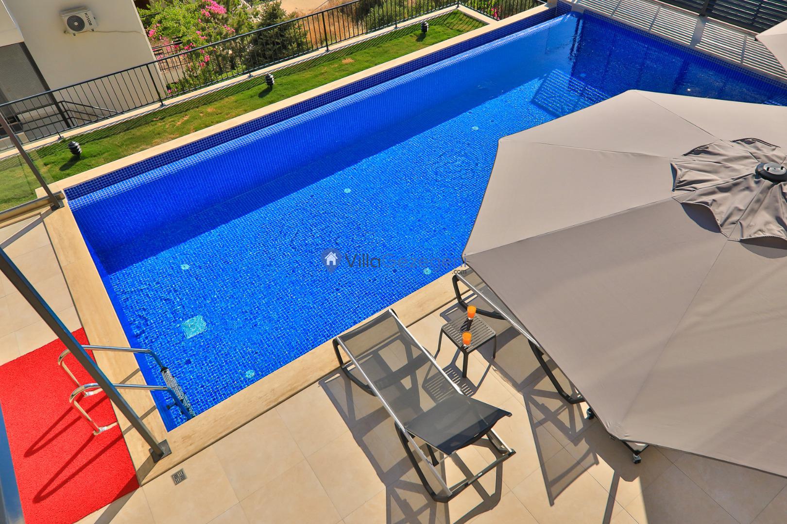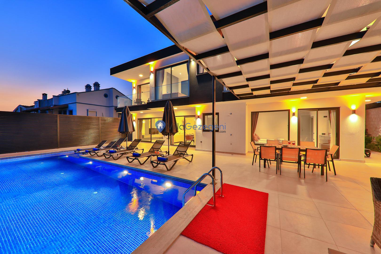 Şezlong, Güneş Şemsiyesi, Mangal, Yemek Masası ve bahçe mobilyaları kullanımınız için hazır bulunmaktadır. Gün batımına karşı unutulmaz bir tatilin kapılarını misafirlerine aralayan villamız modern örnekler arasında son dönemlerde geniş arkadaş grupları veya aileler tarafından her yaz dönemi yoğun olarak rağbet görmeye devam etmektedir.