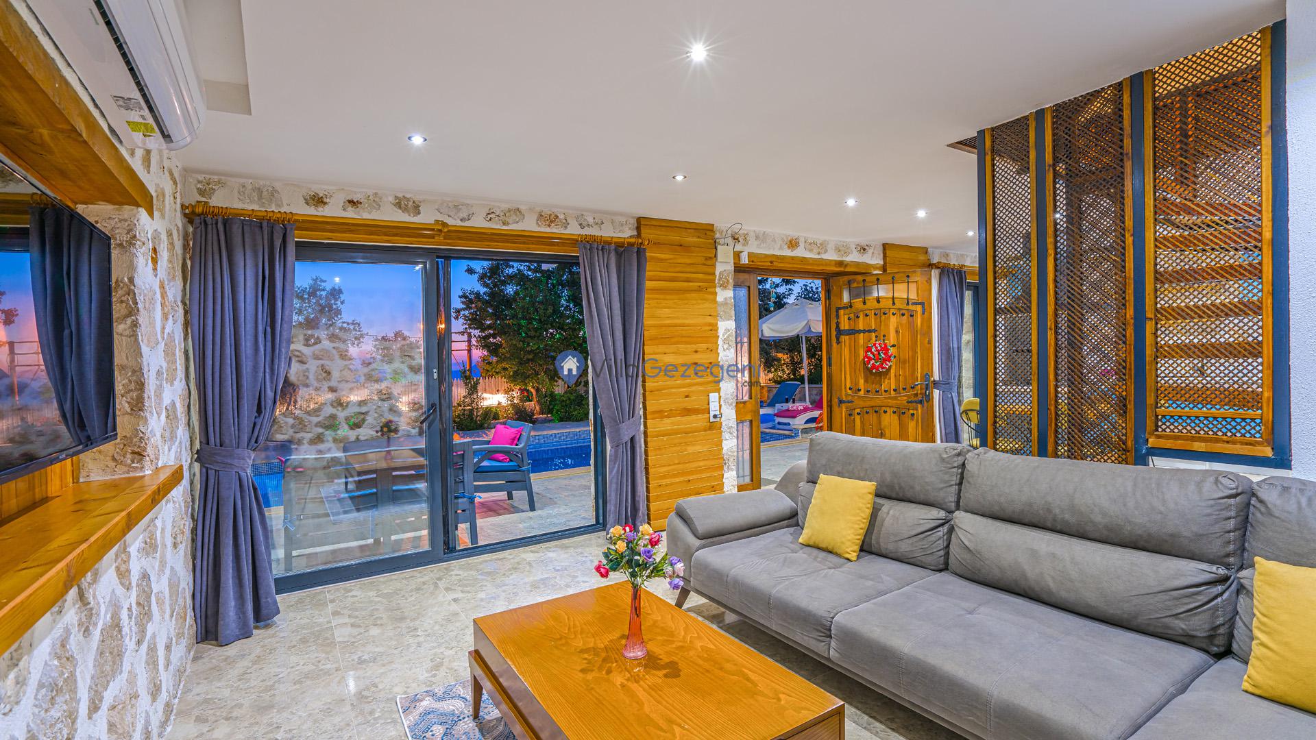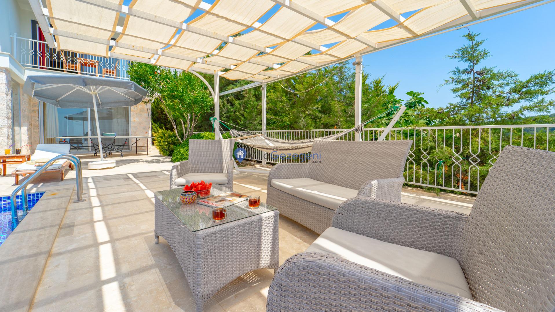 Kalkan Üzümlü Bölgesinde 3 Yatak Odalı 6 Kişilik Muhafazakar Kiralık Villa