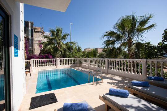 Kalkan'da bulunan 4 yatak odalı denize yürüme mesafesinde kiralık özel havuzlu tatil villası