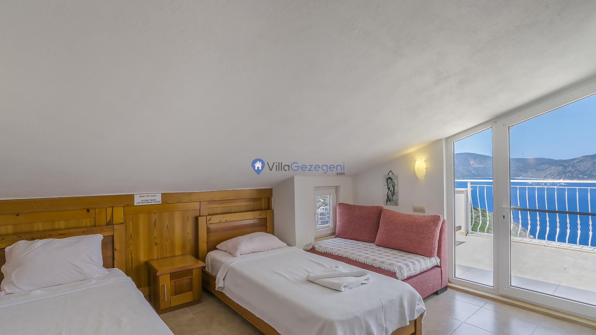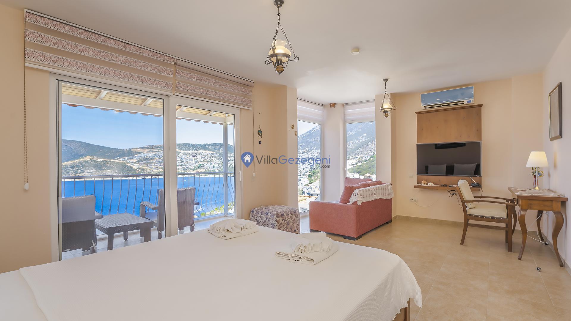 Kalkan Kışla' da 2 yatak odalı, 4 kişilik deniz manzaralı kiralık villa