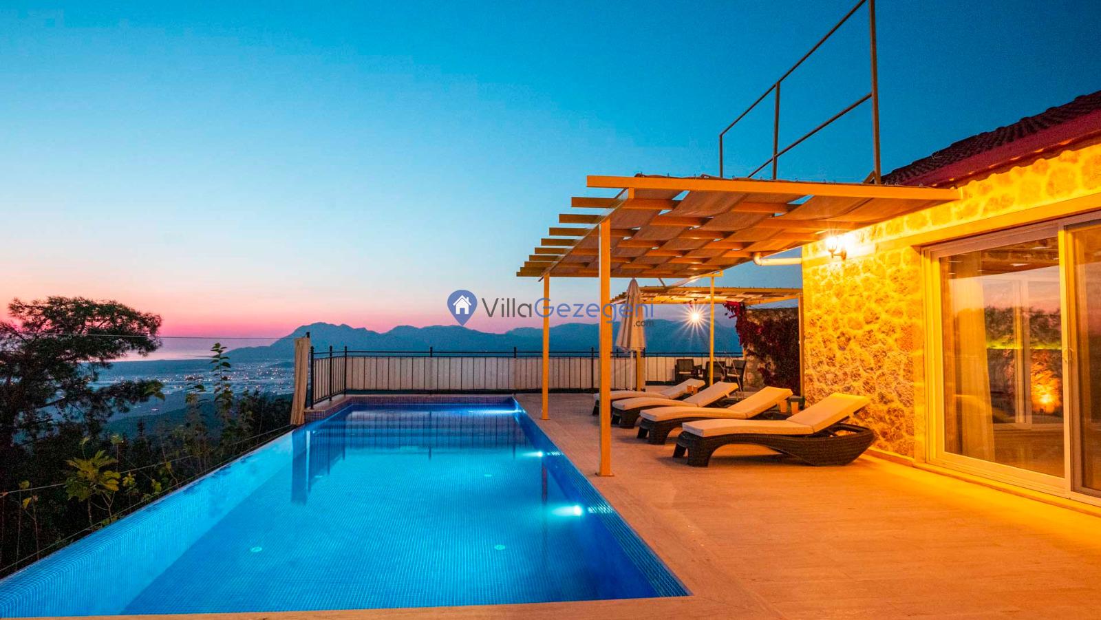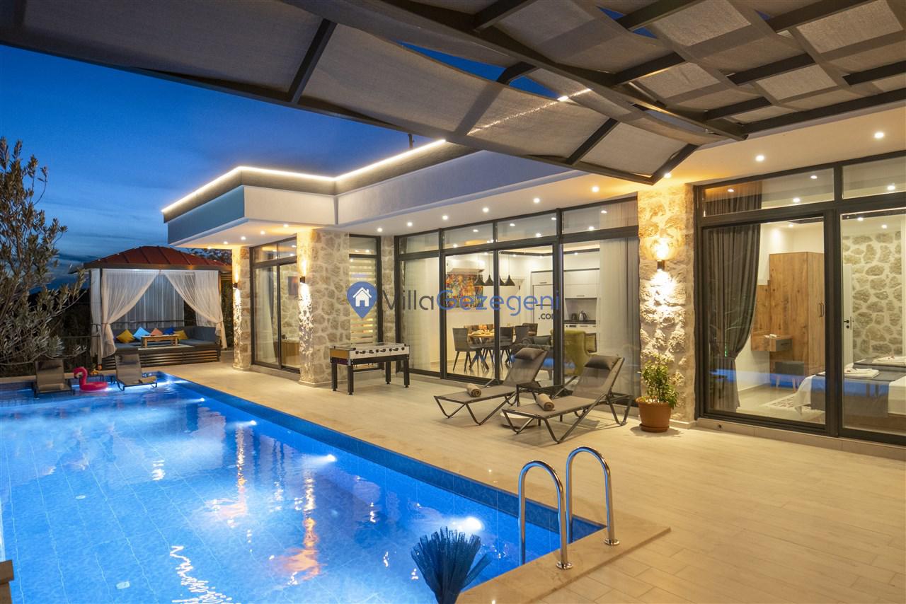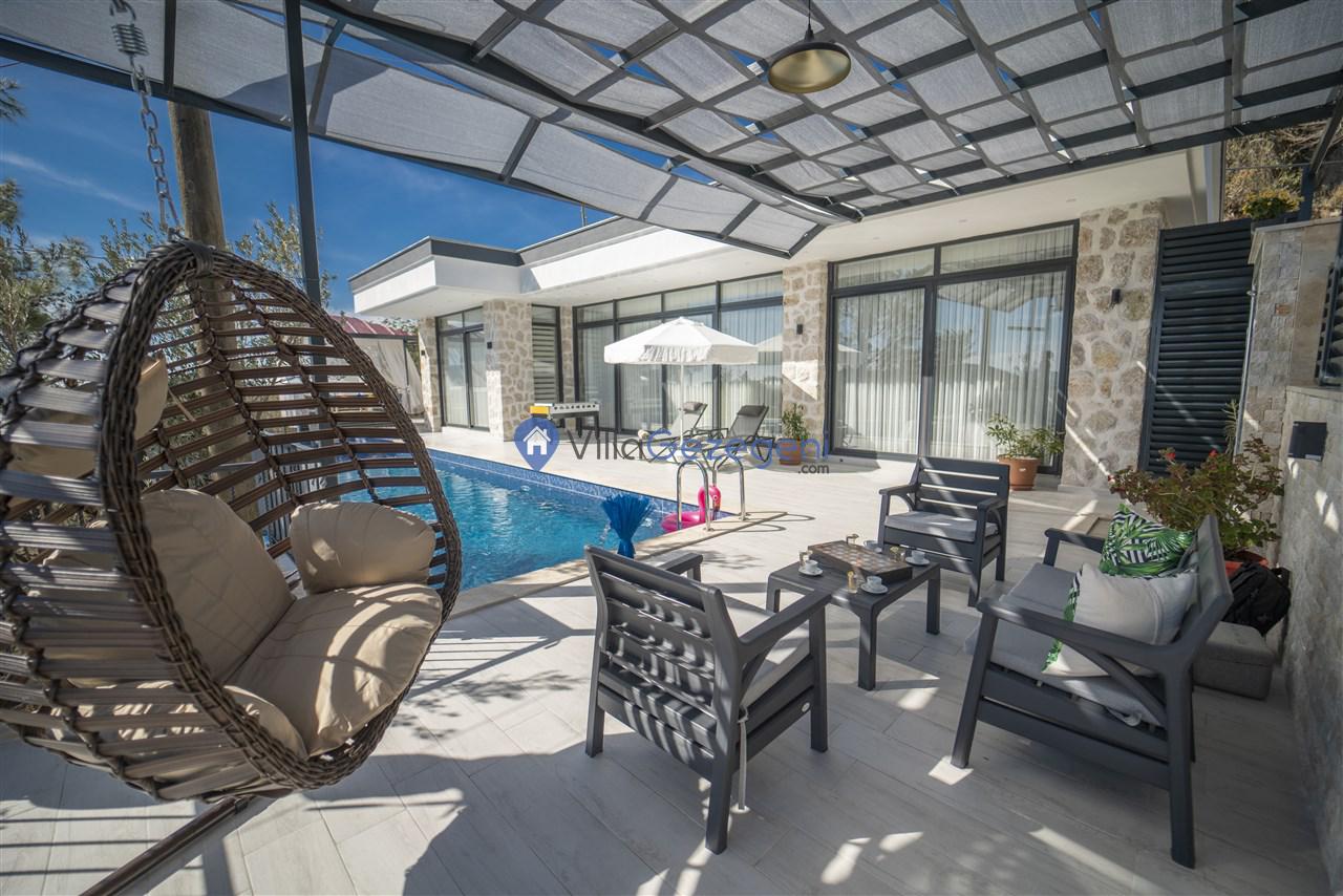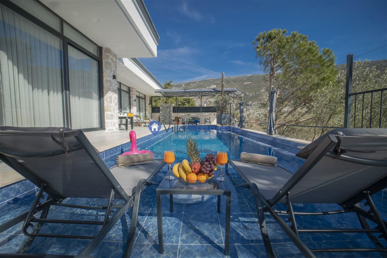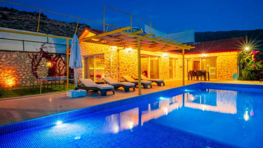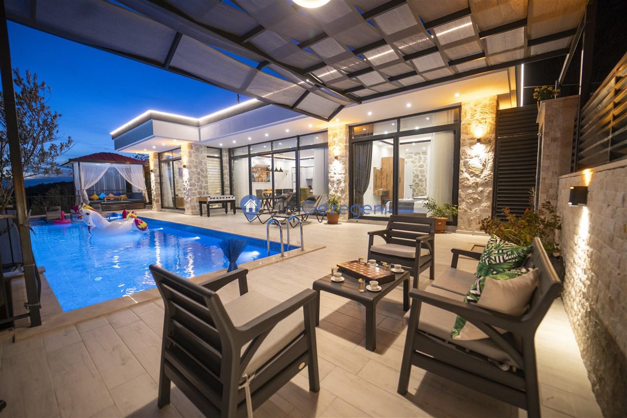 Villa Serenity, Kalkan İslamlar'da 16 kişilik, kalabalık gruplar için dizayn edilmiş, ısıtmalı, kapalı havuzlu kiralık muhafazakar özellikli villa.