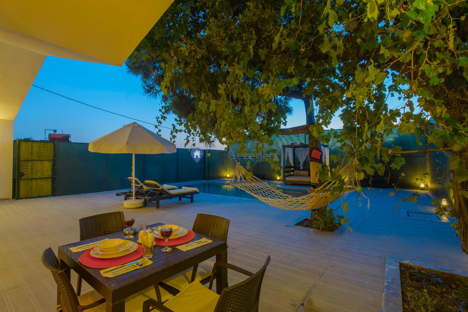 Yemek Masası ve bahçe mobilyaları kullanımınız için hazır bulunmaktadır sevdikleriniz ile beraber yemekler yiyip sohbetin dibine vurabilirsiniz. Villanın bahçesindeki salıncak ile keyifli vakitler geçirebilirsiniz.