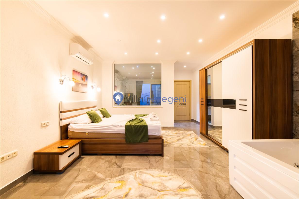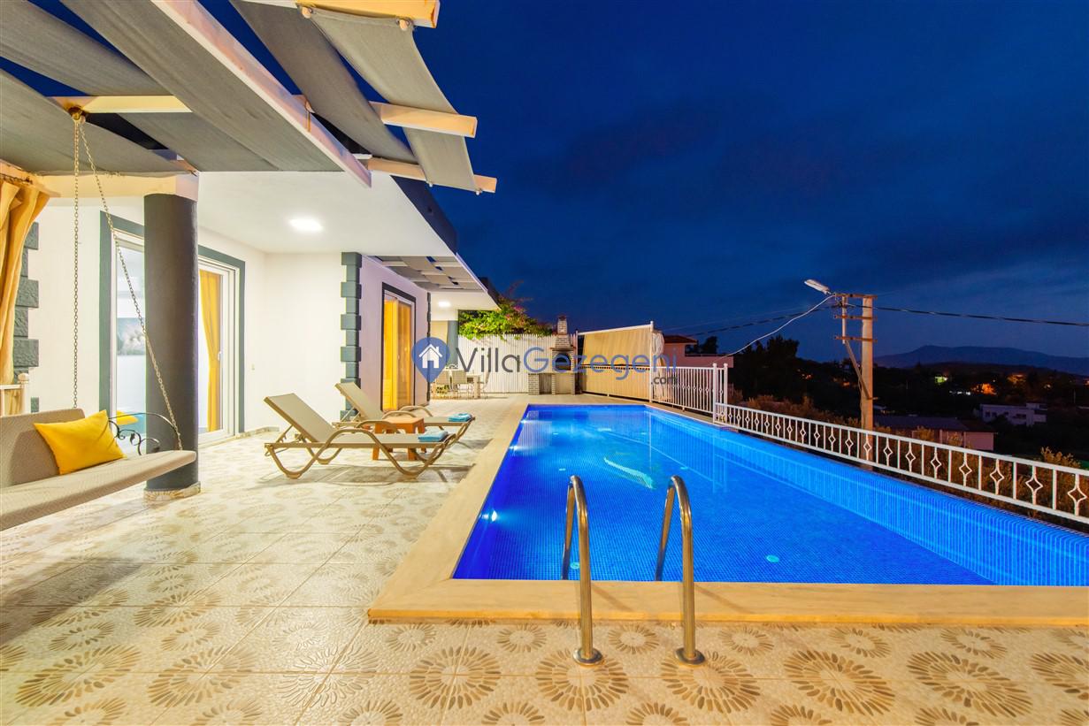 Villamızın genel konsept ve özelliklerinden tekrar bahsedecek olursak; villamızın 1 adet müstakil özel havuzu bulunmaktadır. Ferah bir bahçeye sahip olan villamız rahatlığı ön planda tutan 3 adet yatak odası, 4 yatak, 3 banyo, büyük bir mutfak ve 6 kişinin rahatlıkla oturabileceği koltuklara sahip büyük salonu bulunmaktadır.