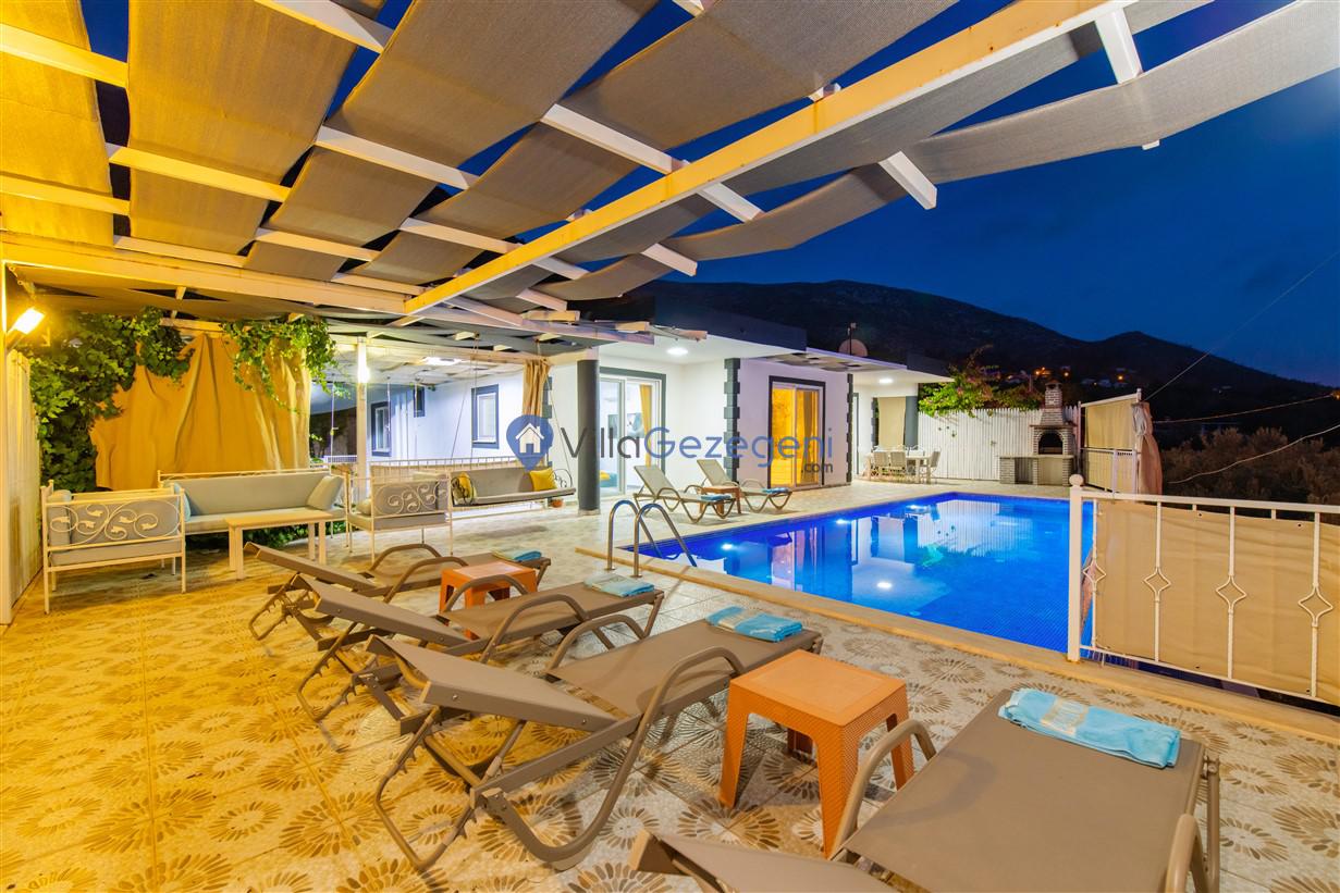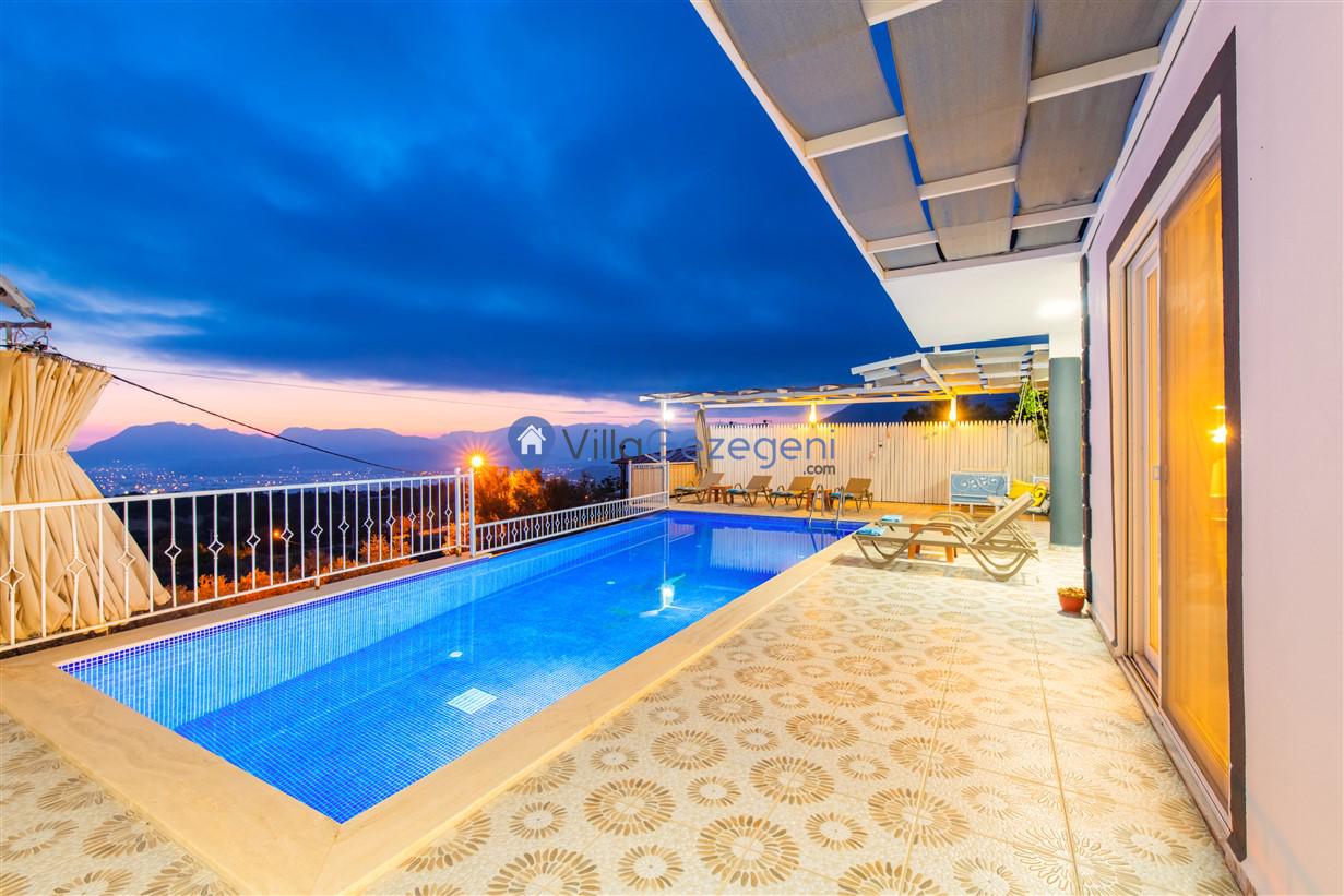 Villa Atlas, Kalkan'ın Üzümlü Köyü'nde yer alan, 6 kişilik kapasiteli ve muhafazakar tatilciler için ideal bir seçenek sunan bir villadır. Dalaman Havalimanı'na 125 km, Kalkan Şehir Merkezi'ne 10 km ve en yakın plaja 12 km uzaklıkta bulunan bu villa, hem doğanın içinde sakin bir tatil imkanı hem de şehir merkezinin olanaklarına yakın olmasıyla dikkat çekiyor. En yakın market ve restoranlara sadece 1 km mesafede olan Villa Atlas, konuklarına kolay erişim ve rahat bir konaklama deneyimi sağlar. Villa Atlas, 3 yatak odası ile konforlu bir konaklama imkanı sunmakta ve bunların ikisi suit odadır. Her odada klima ve banyo-tuvalet bulunmaktadır. Villanın özel ve tam korunaklı yüzme havuzu, muhafazakar aileler ve balayı çiftleri için idealdir. Havuzun ölçüleri 3,50 cm genişlik, 8 metre uzunluk ve 1,55 cm derinliktedir. Bahçede yer alan şezlonglar ve güneş şemsiyeleri, konuklara rahat bir dinlenme ve güneşlenme imkanı sunar. Villa Atlas, etrafı perdeleme sistemi ile çevrelenmiş olup, korunaklı bir yapıdadır.