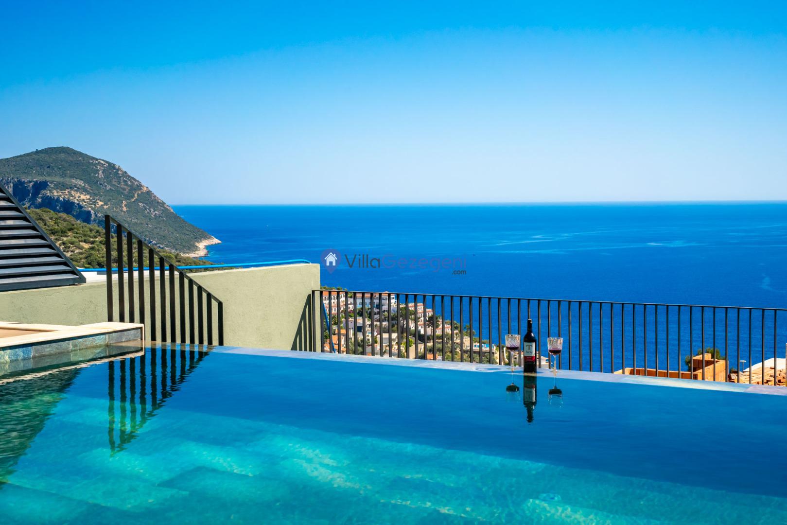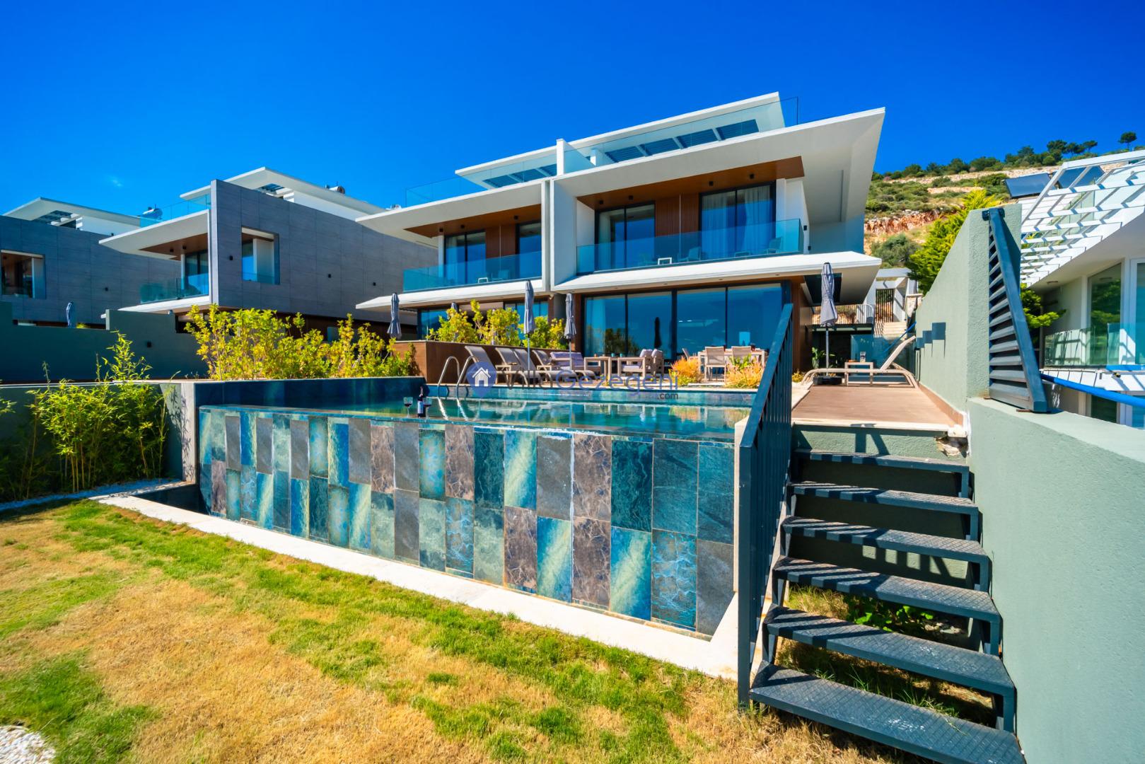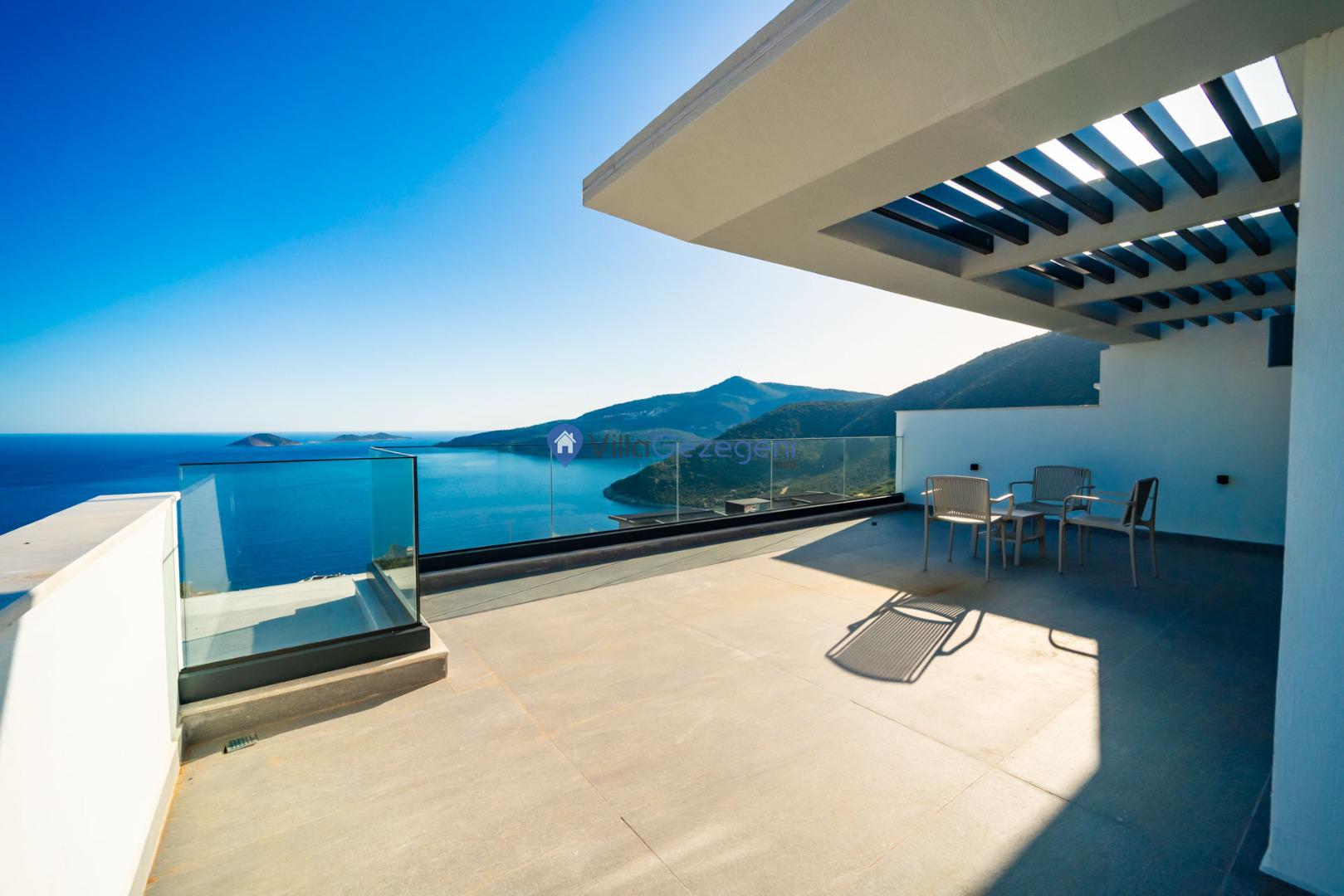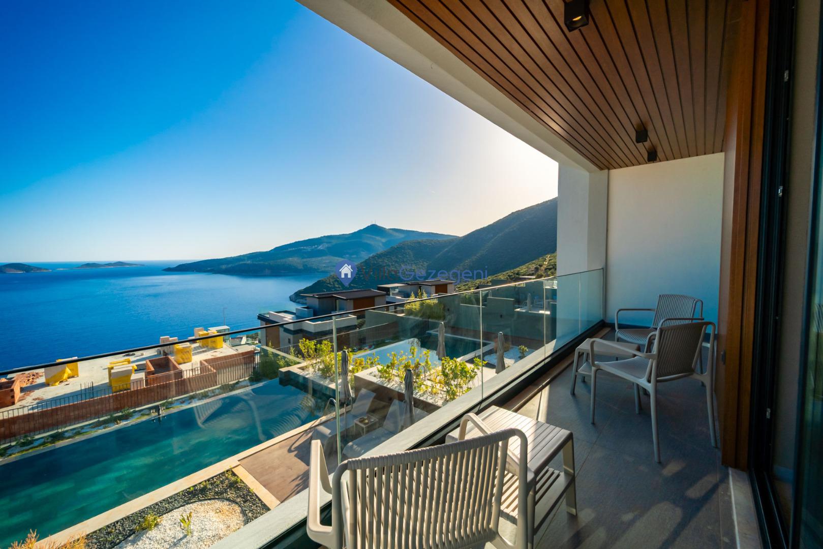 Kalkan'ın Kalamar mevkiisinde bulunan 3 odalı 6 kişilik lüks tasarıma sahip deniz manzaralı kiralık villa