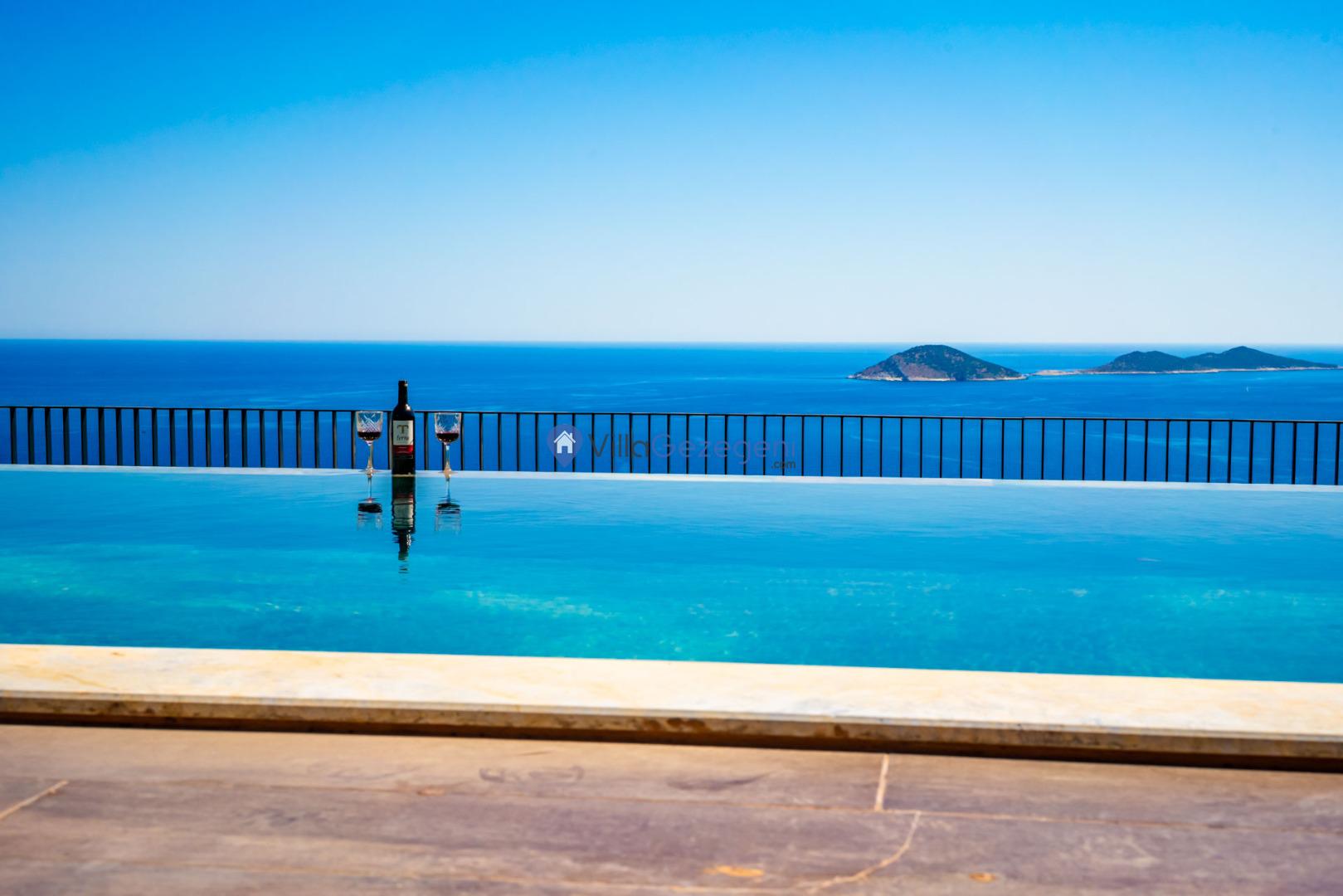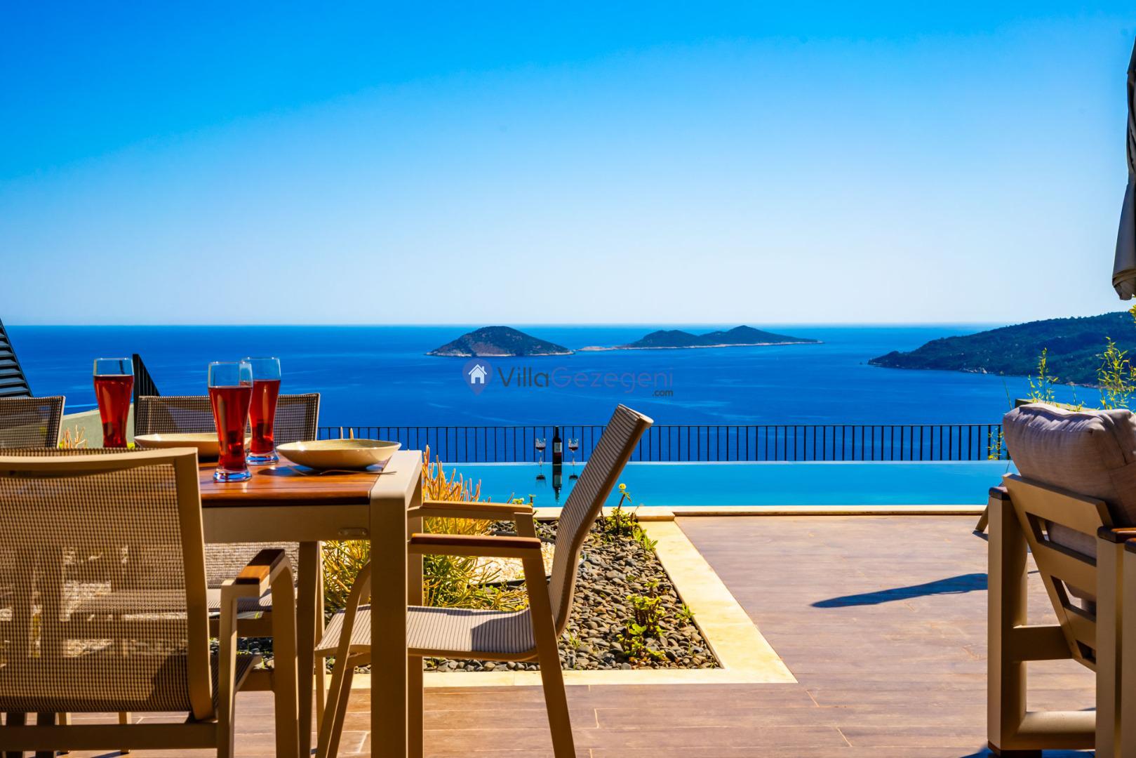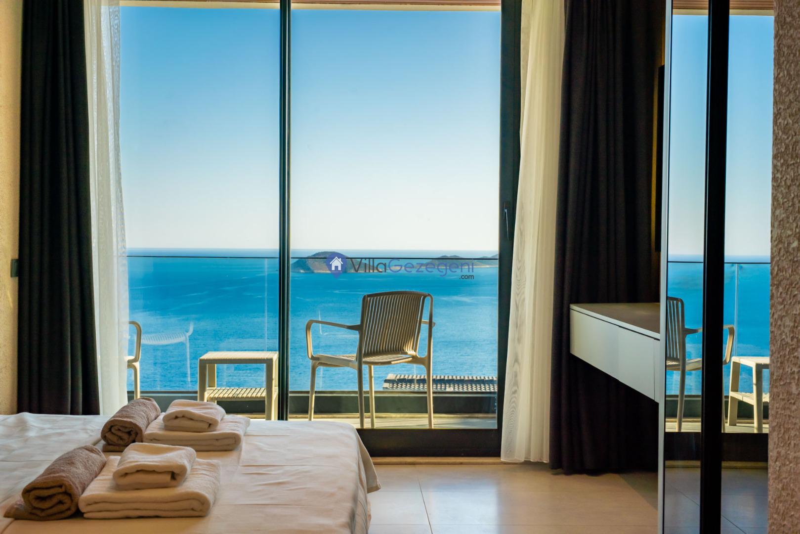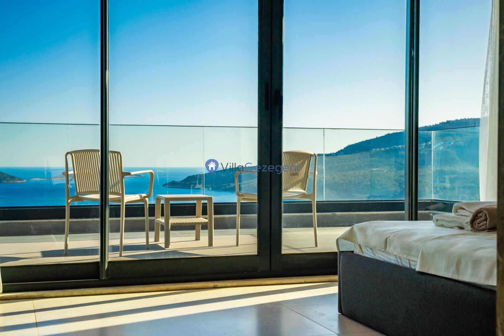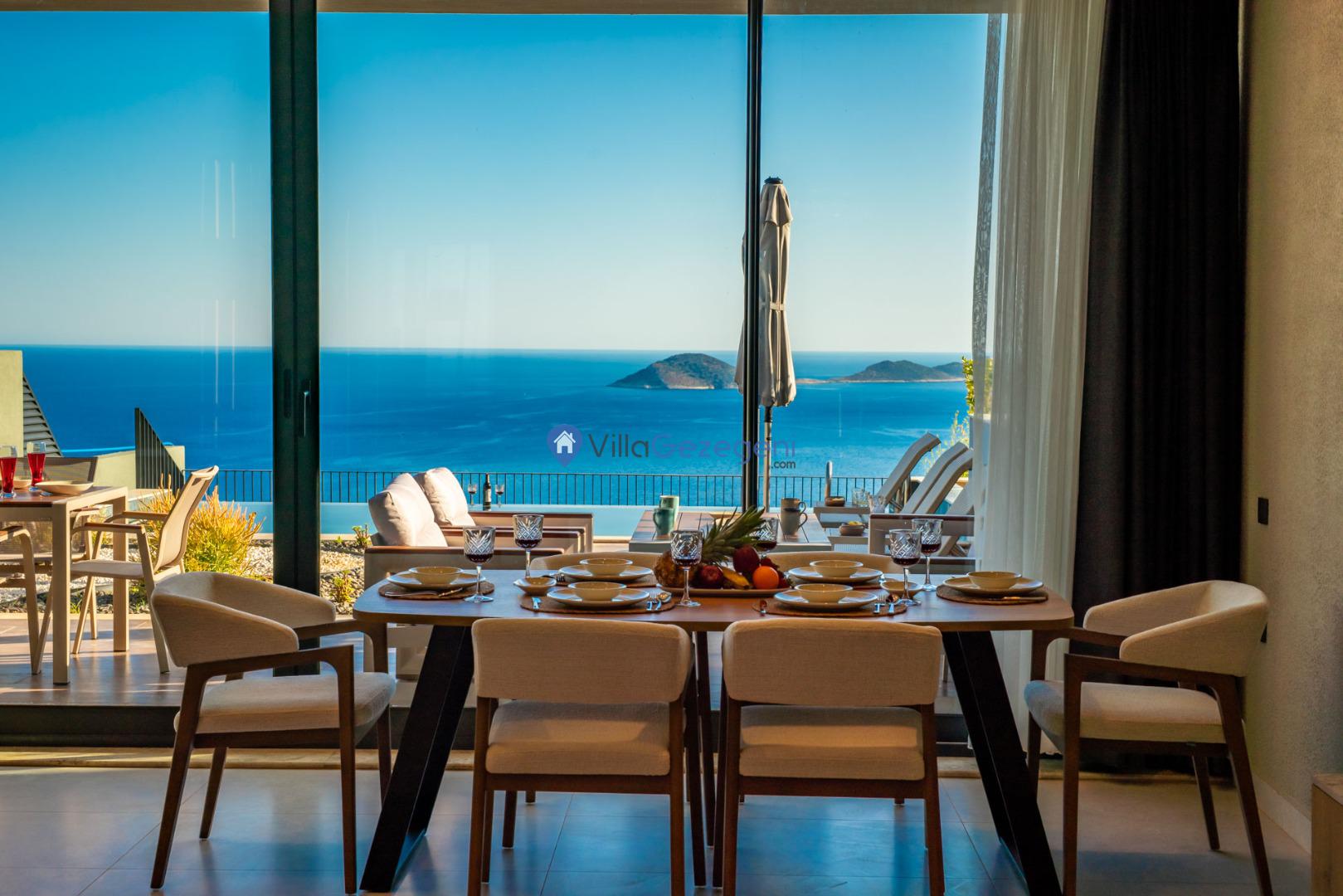 Kalkan'ın Kalamar mevkiisinde bulunan 3 odalı 6 kişilik lüks tasarıma sahip deniz manzaralı kiralık villa