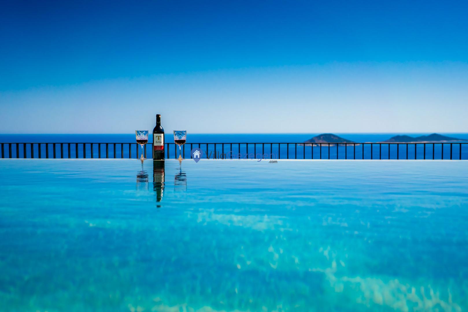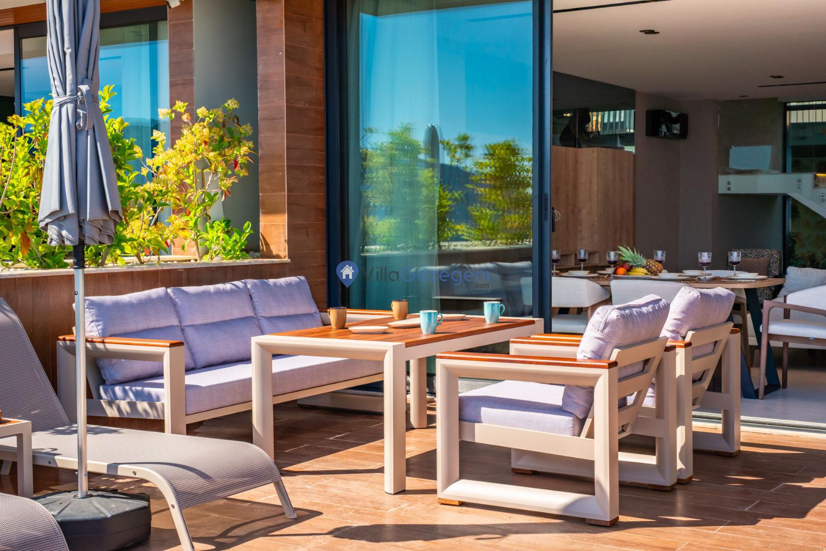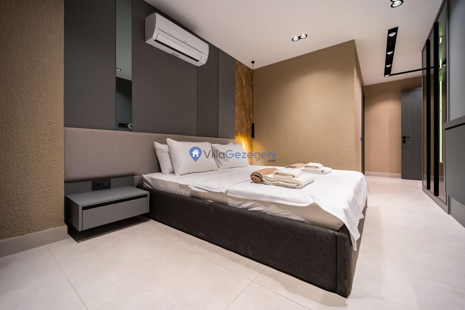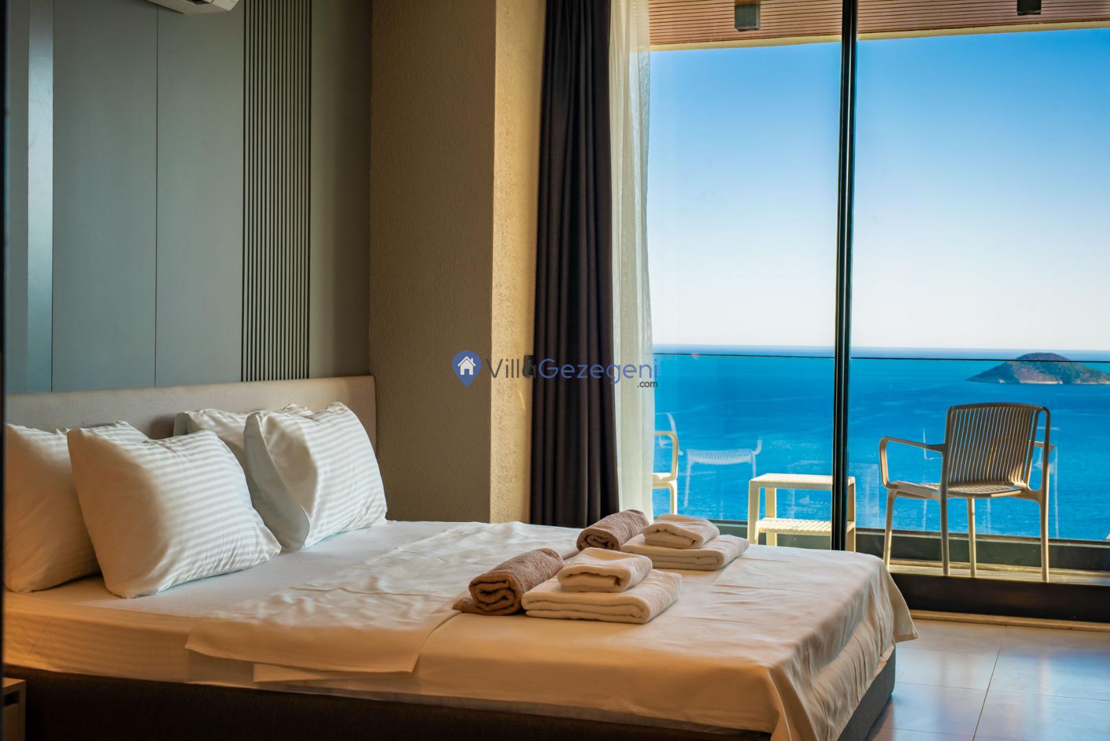 Kalkan'ın Kalamar mevkiisinde bulunan 3 odalı 6 kişilik lüks tasarıma sahip deniz manzaralı kiralık villa