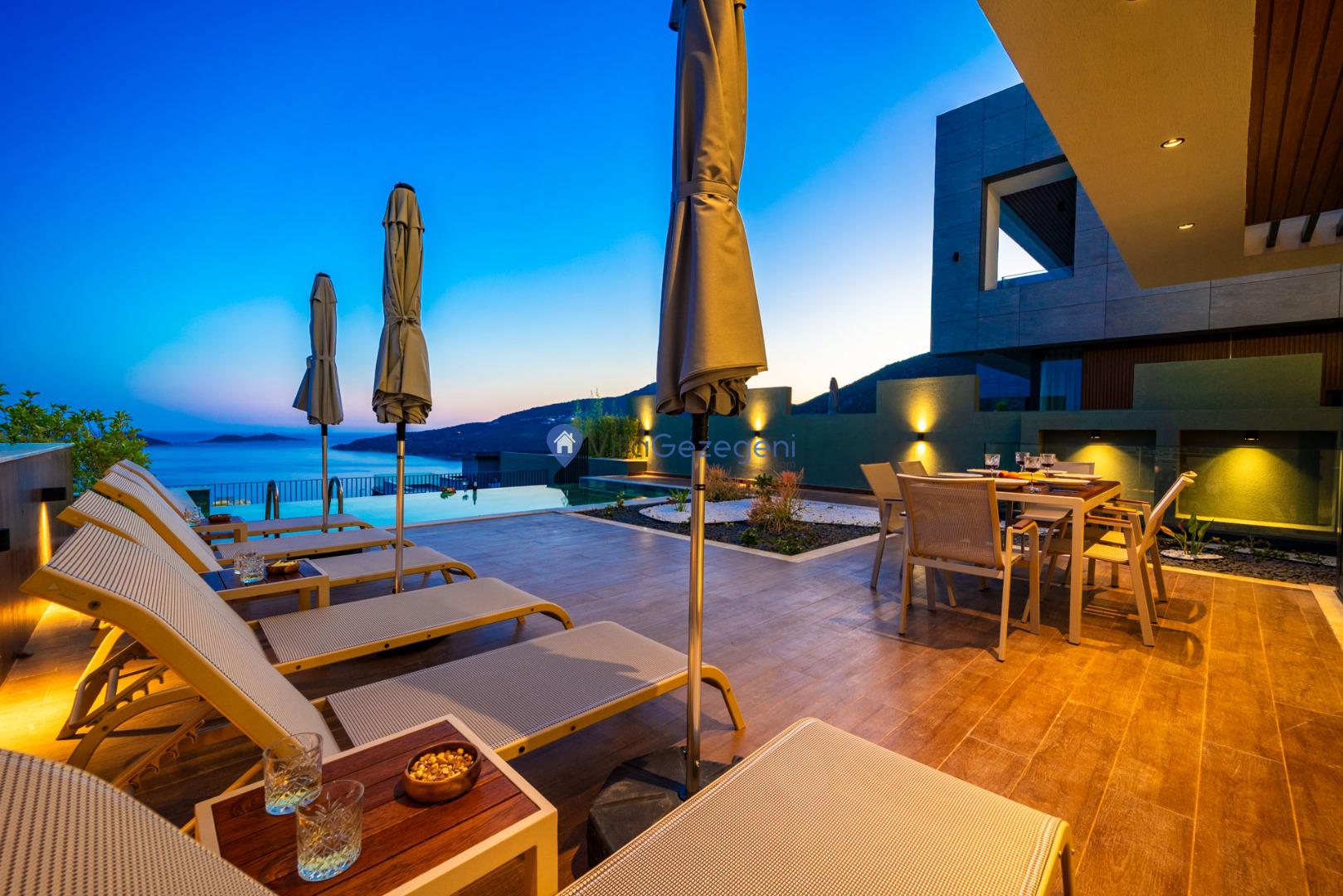 Villanın geniş terasında yer alan sonsuzluk havuzu (infinity pool), gün batımında eşsiz manzaralar eşliğinde keyifli anlar yaşamanıza olanak tanır. Tam donanımlı mutfak, ferah salon alanları ve özenle dekore edilmiş yatak odaları, evinizin rahatlığını aratmayacak şekilde tasarlanmıştır.