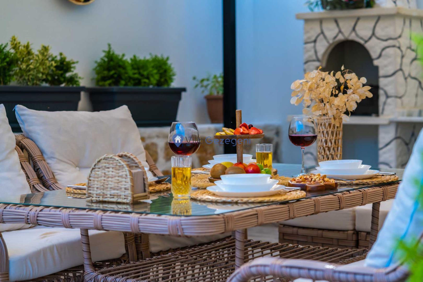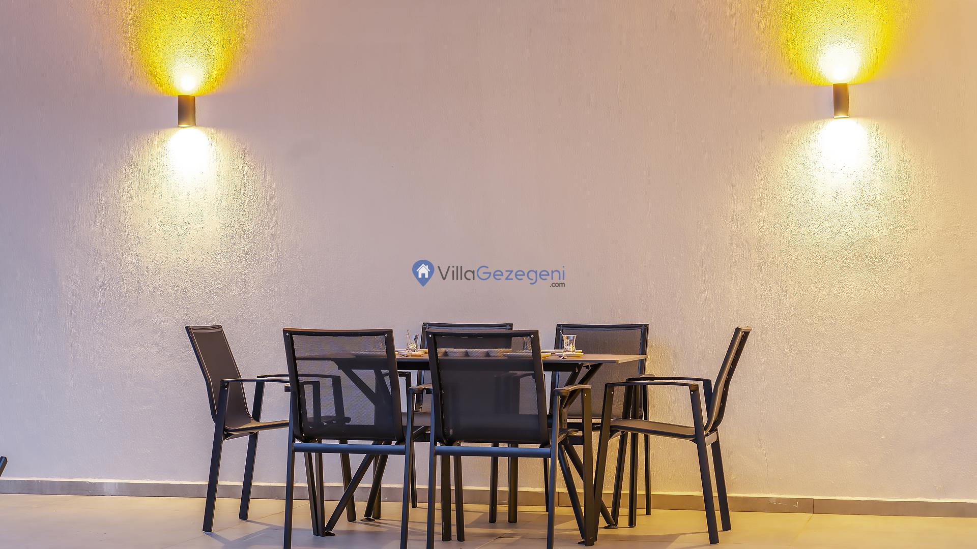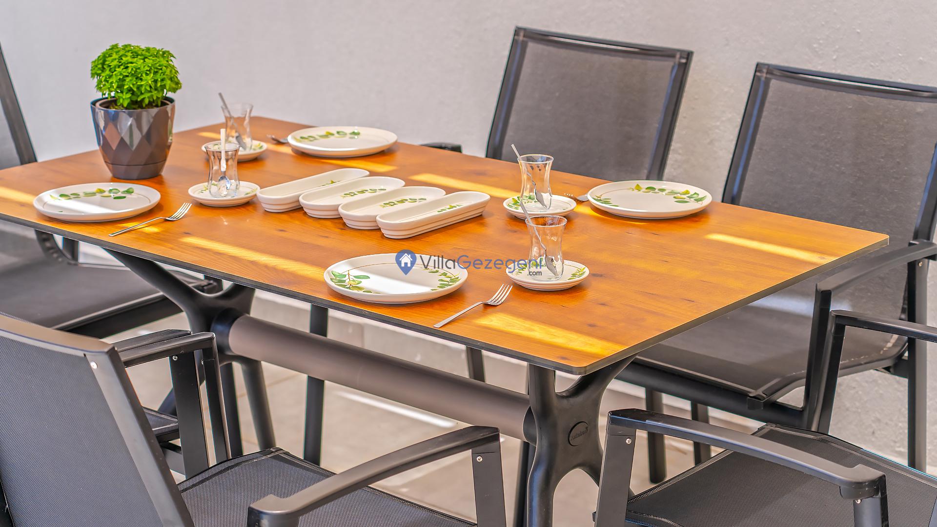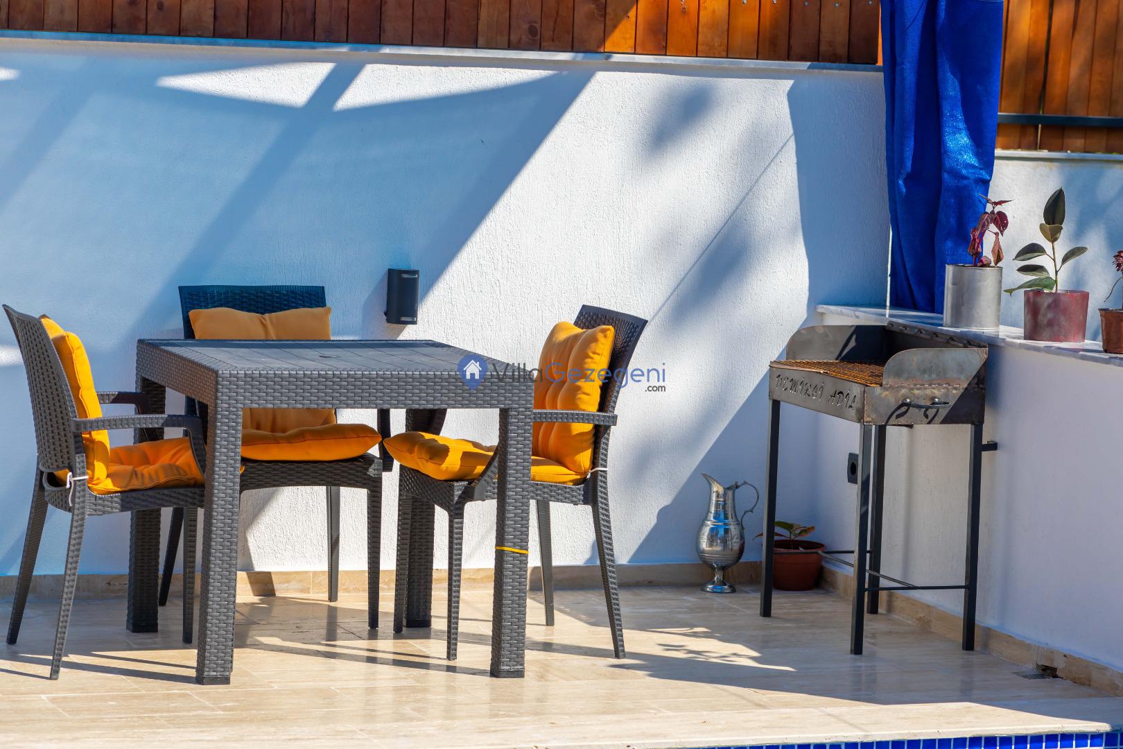 Yemek Masası ve bahçe mobilyaları kullanımınız için hazır bulunmaktadır sevdikleriniz ile beraber yemekler yiyip sohbetin dibine vurabilirsiniz. Villanın bahçesindeki salıncak ile keyifli vakitler geçirebilirsiniz.
