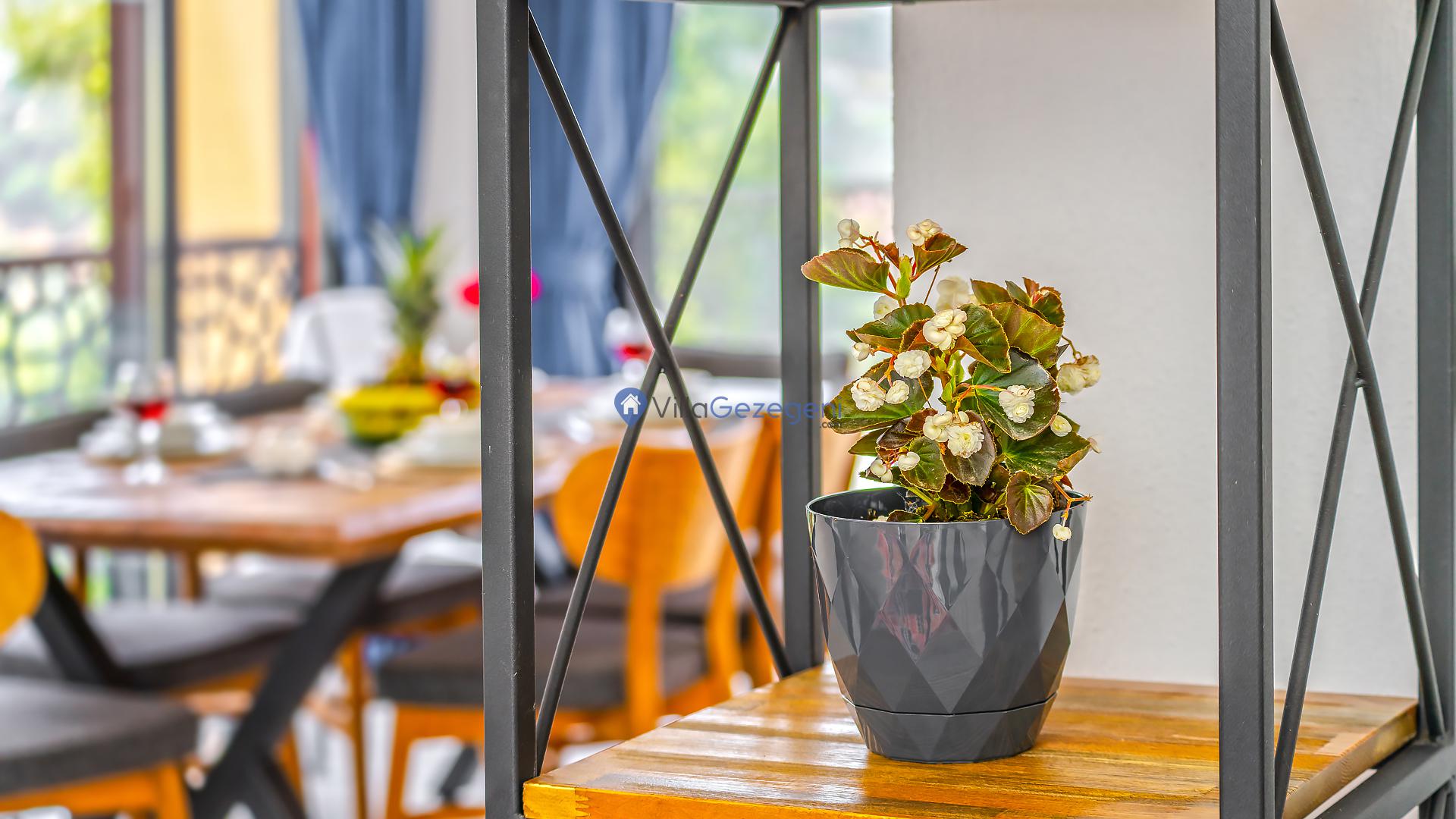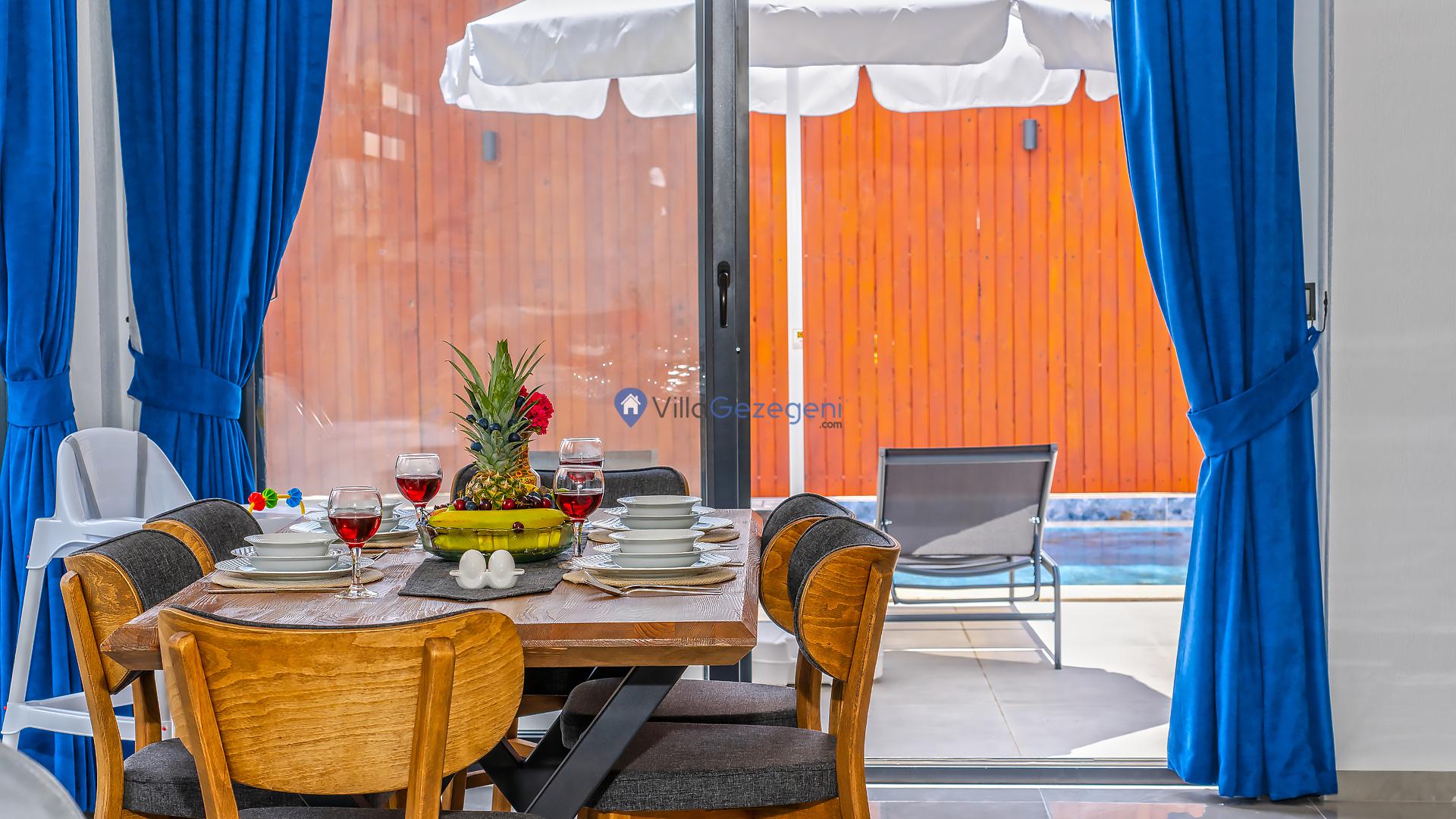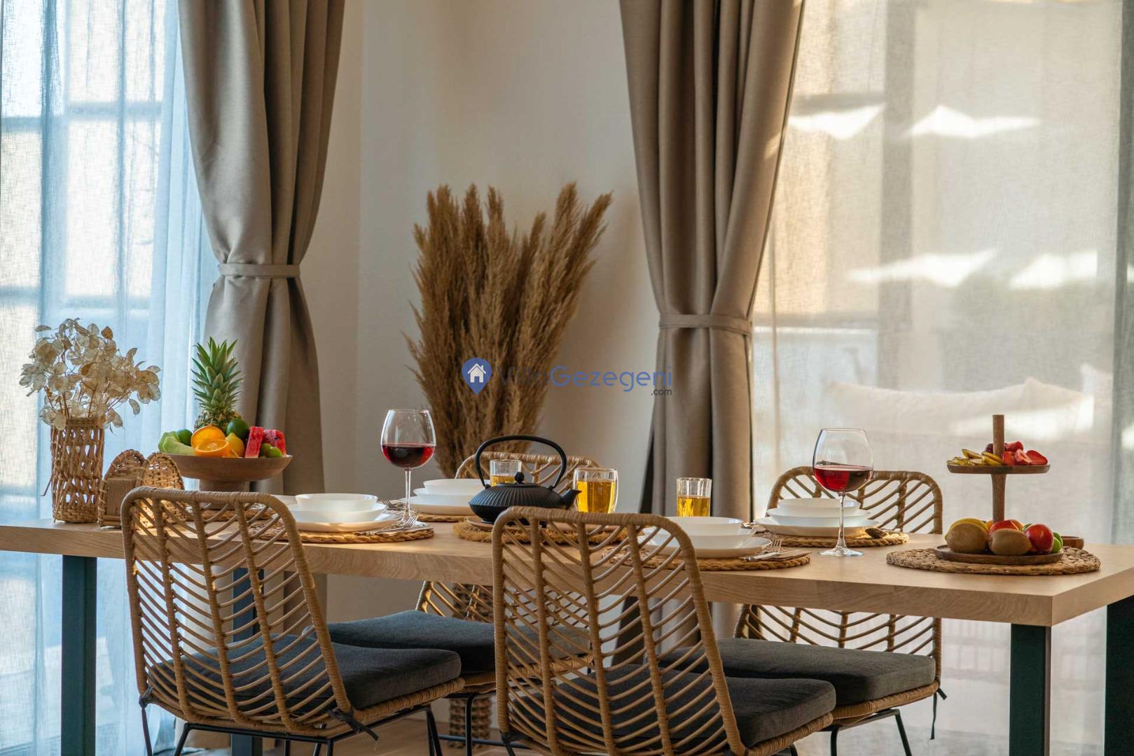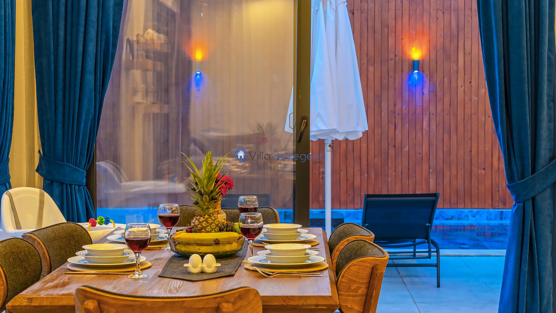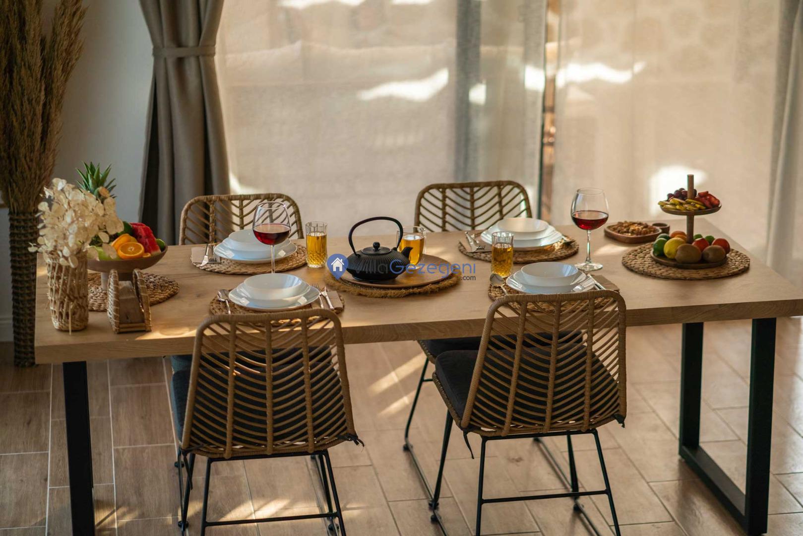 Yemek Masası ve bahçe mobilyaları kullanımınız için hazır bulunmaktadır sevdikleriniz ile beraber yemekler yiyip sohbetin dibine vurabilirsiniz. Villanın bahçesindeki salıncak ile keyifli vakitler geçirebilirsiniz.