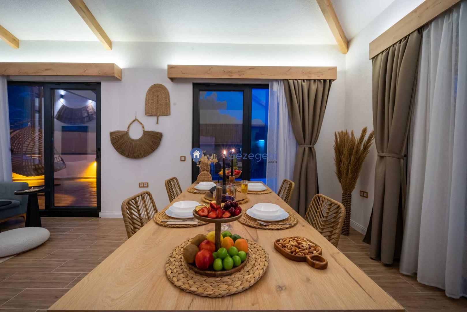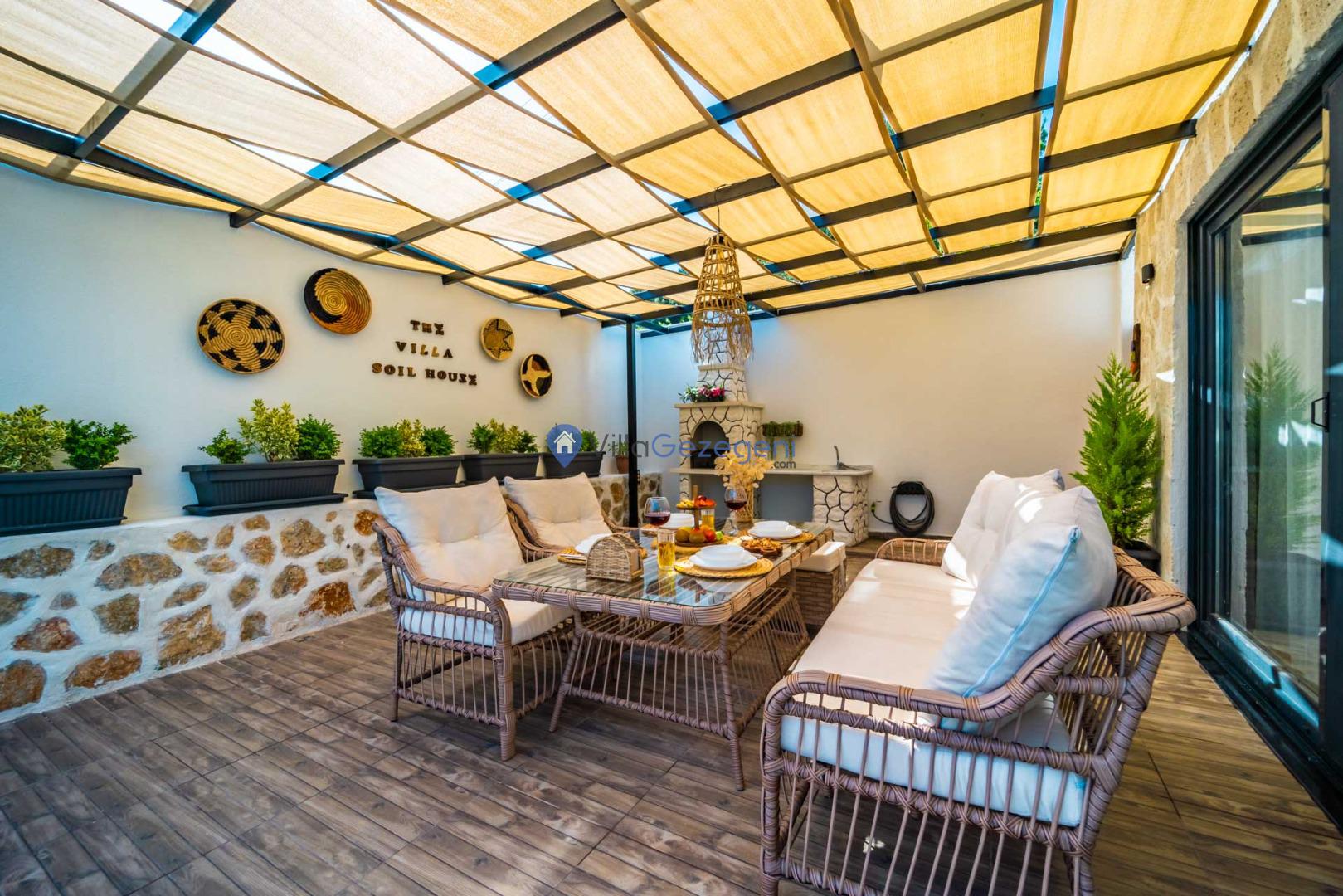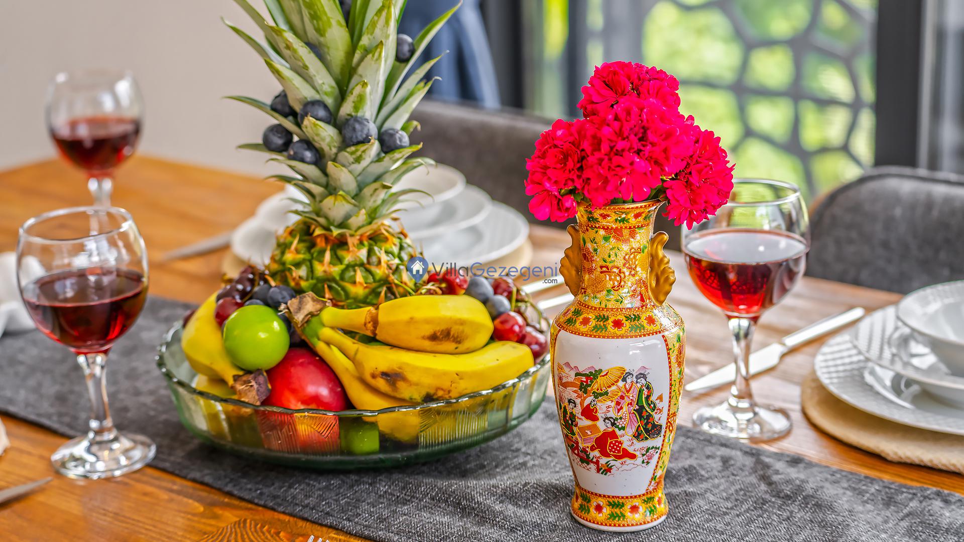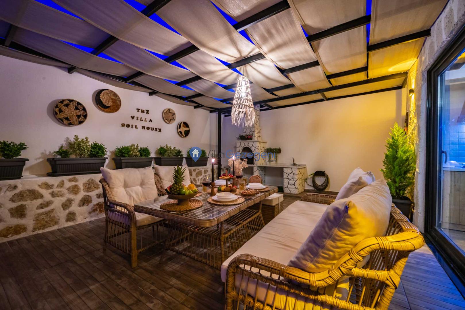 Yemek Masası ve bahçe mobilyaları kullanımınız için hazır bulunmaktadır sevdikleriniz ile beraber yemekler yiyip sohbetin dibine vurabilirsiniz. Villanın bahçesindeki salıncak ile keyifli vakitler geçirebilirsiniz.
