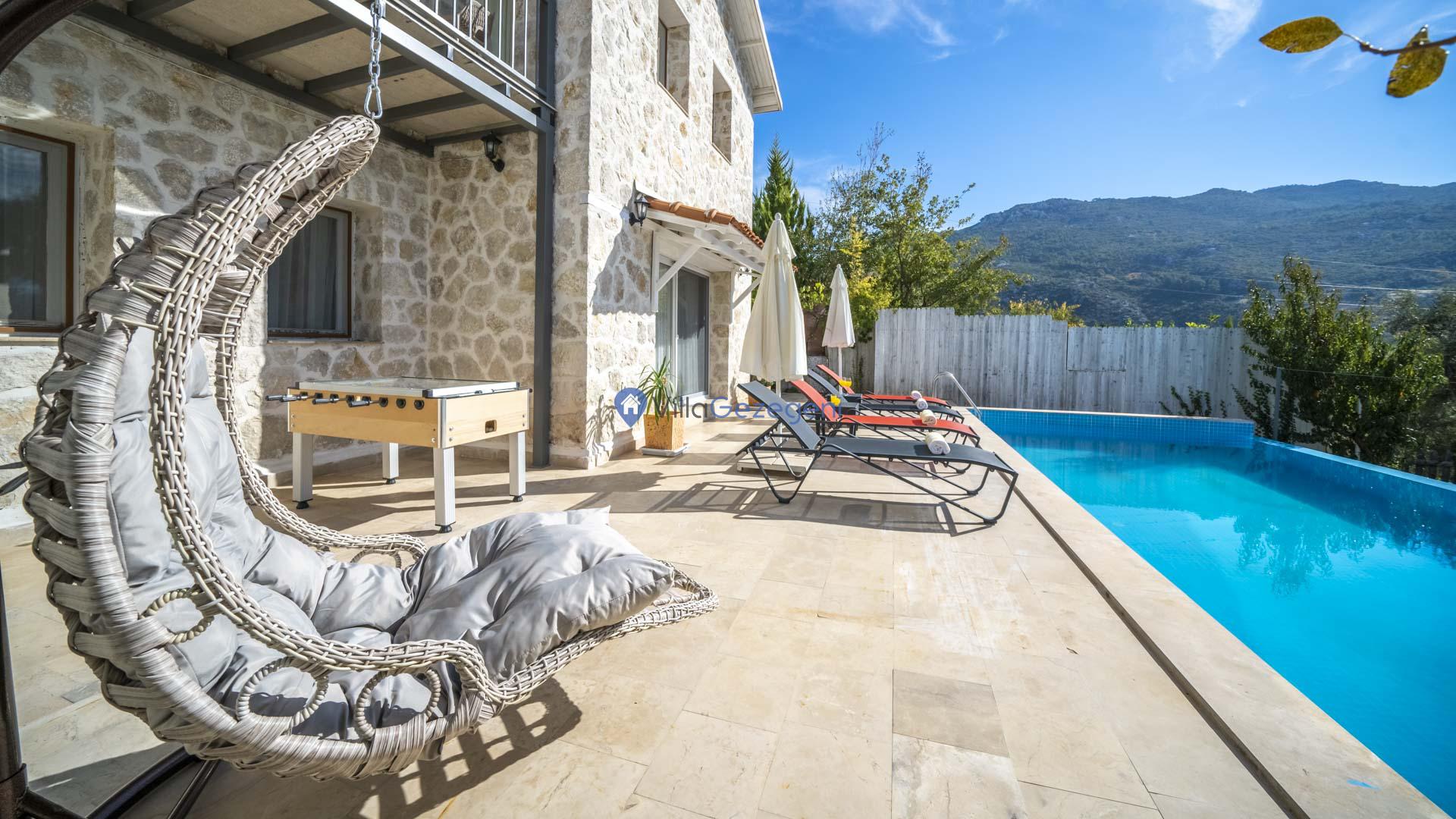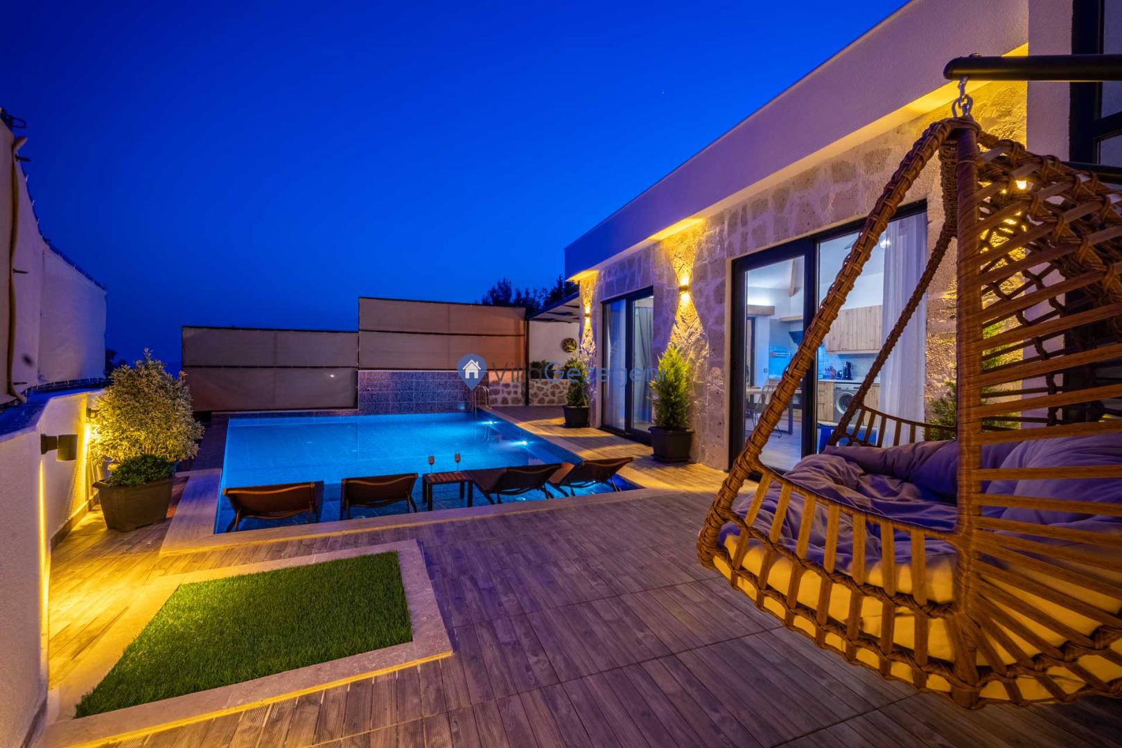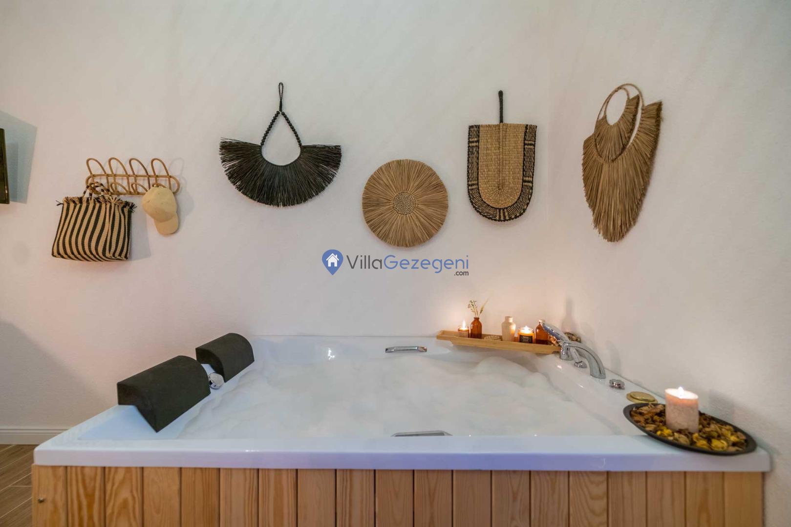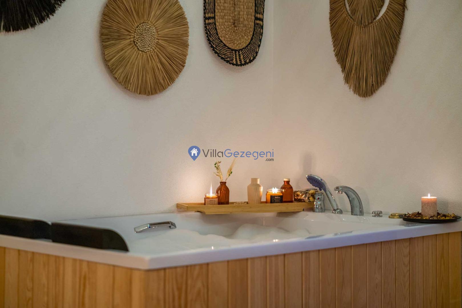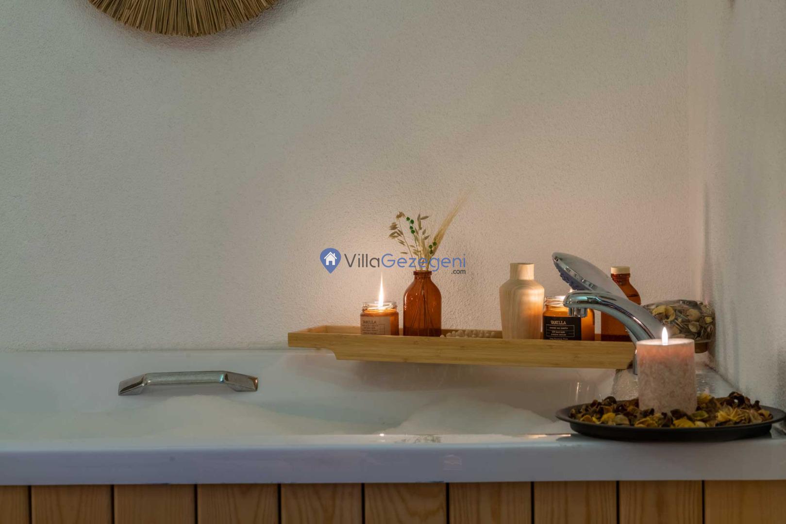 Villanın en özel özelliklerinden biri şüphesiz ki içerisinde bulunan jakuzidir. Günün sonunda, jakuzide rahatlayarak manzaraya karşı romantik anlar yaşayabilirsiniz. Ayrıca, bahçedeki salıncakta sevdiklerinizle birlikte huzurlu anlar geçirebilir, doğanın güzelliklerini doyasıya yaşayabilirsiniz.