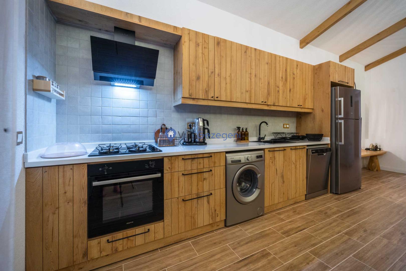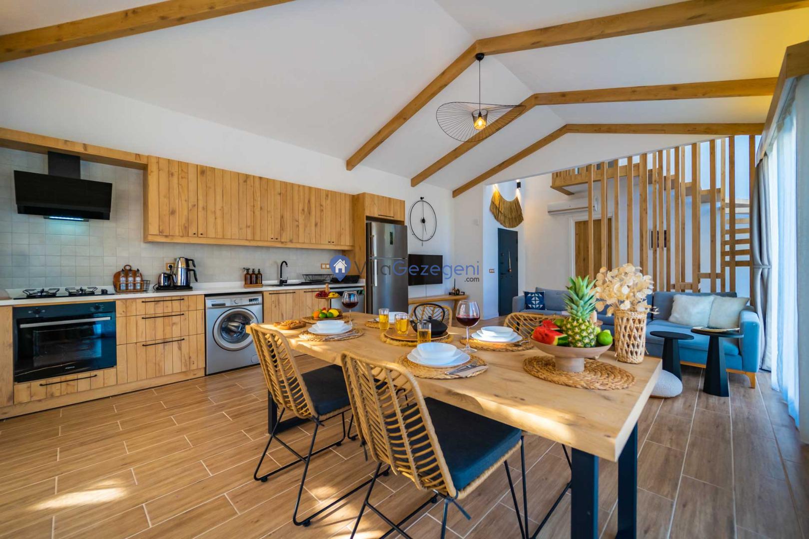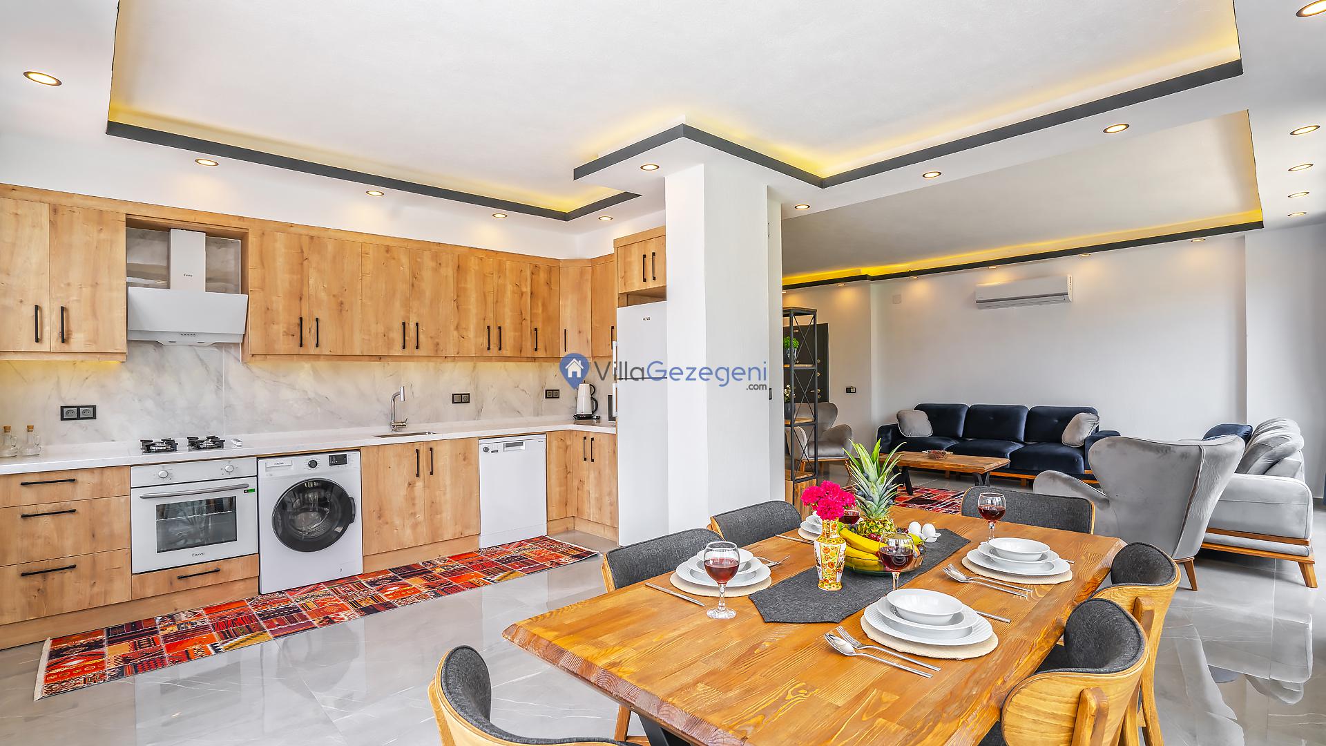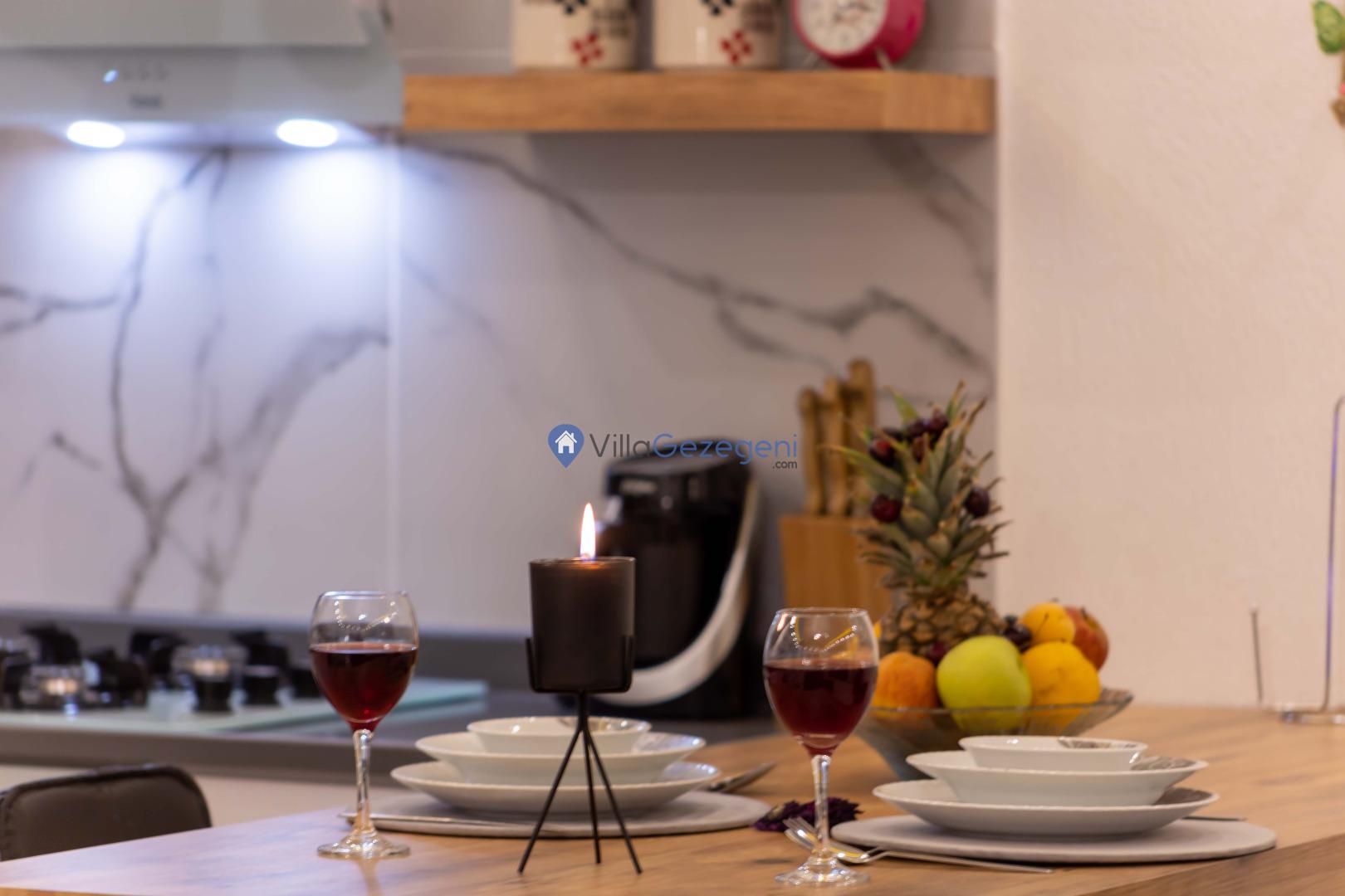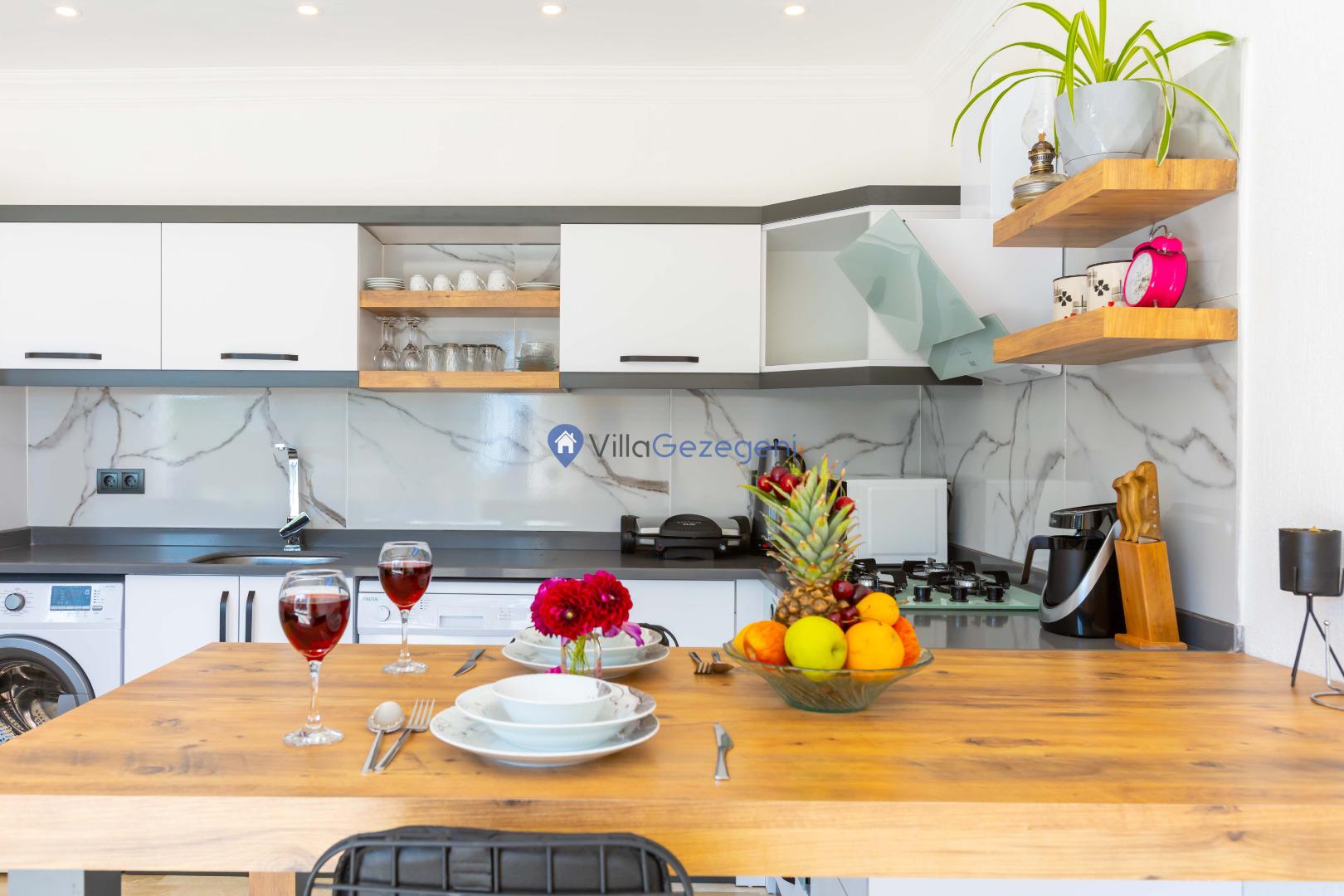 Villamız günlük hayatta sık kullanılan; Mikrodalga fırın, ankastre fırın, buzdolabı, çamaşır makinası, bulaşık makinesi, elektrikli su ısıtıcı kettle, ankastre 4’lü ocak, 2 kişilik yemek takımı, kaşık ve çatal takımı, tencere ve tava takımı, bardaklar yer almaktadır. İhtiyacınız durumunda villamızda bulunmayan malzemeler hakkında bizle iletişime geçebilir ve yardım isteyebilirsiniz.