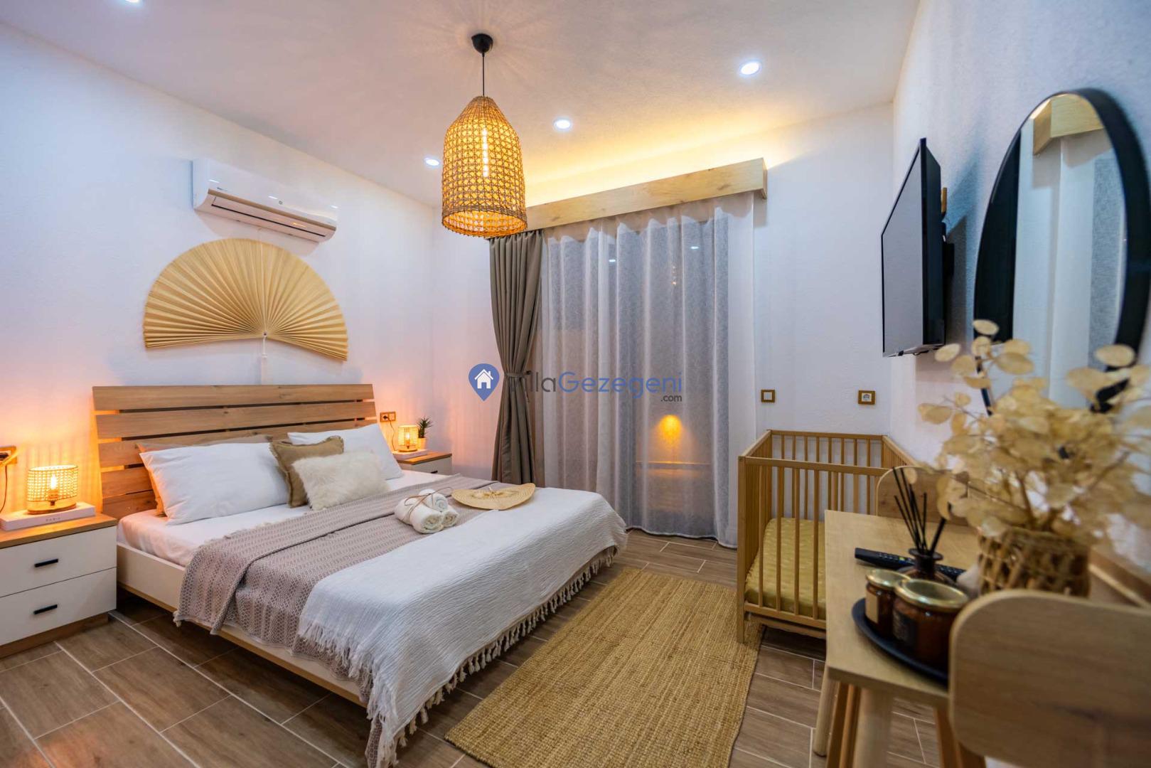 Villa Ayaz Uno, 2 kişilik konaklama kapasitesine sahiptir. 1 yatak odası, 1 yatak ve 1 banyosuyla, misafirlerine geniş ve konforlu bir yaşam alanı sunar. Modern ve şık bir dekorasyonla donatılmış olan bu villa, tatiliniz boyunca evinizin rahatlığını aratmayacak.