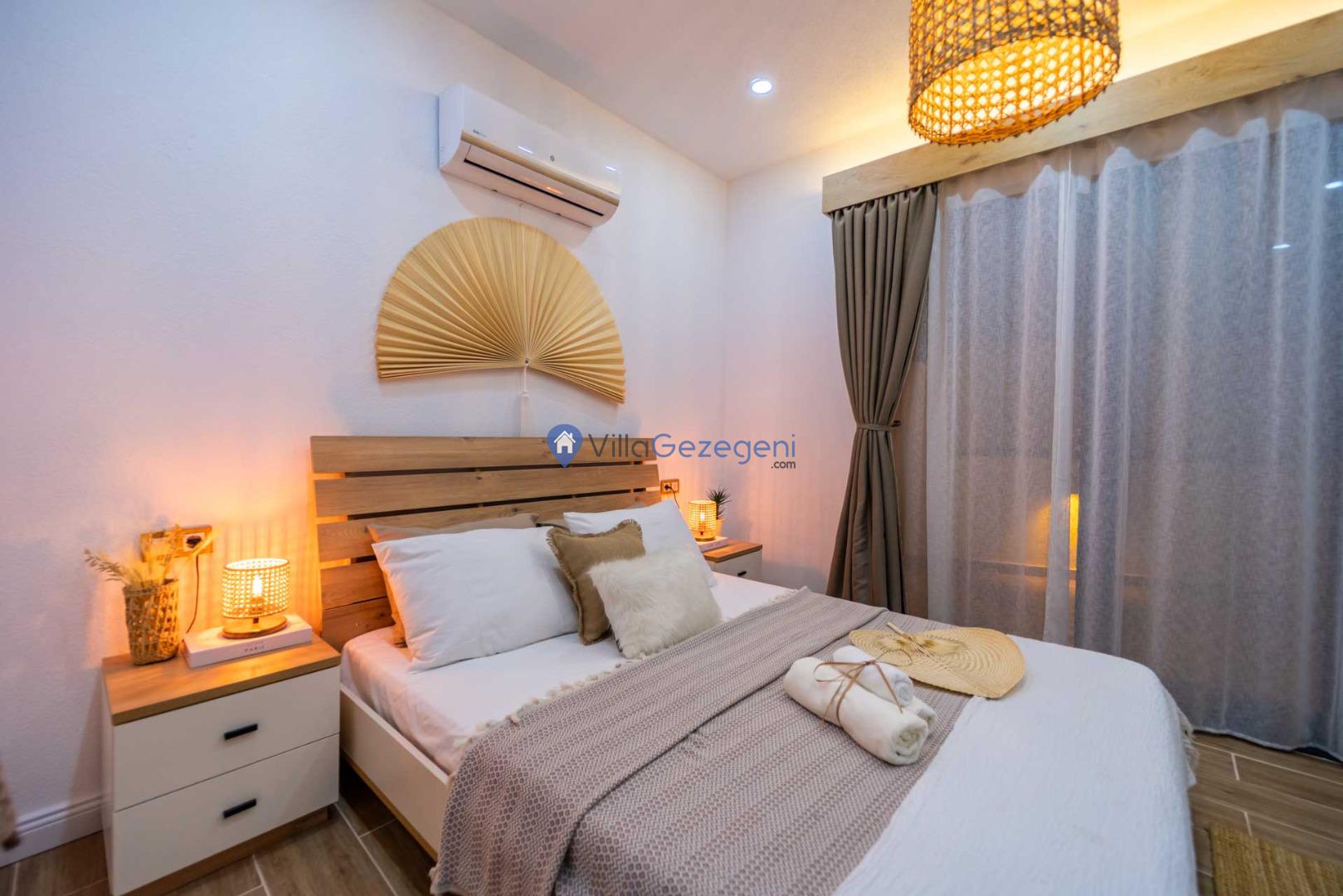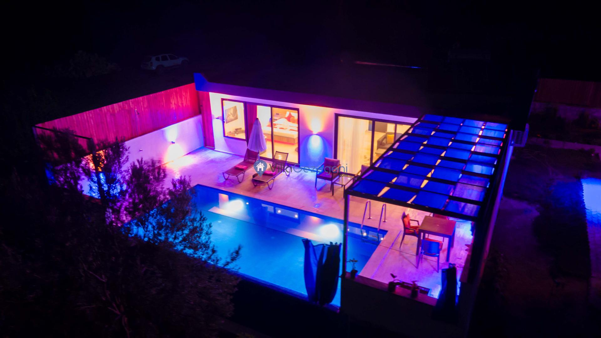 Villamızın genel konsept ve özelliklerinden tekrar bahsedecek olursak; villamızın 1 adet müstakil özel havuzu bulunmaktadır. Ortalama bir bahçeye sahip olan villamız rahatlığı ön planda tutan 1 adet yatak odası, 1 yatak, 1 banyo, hareket alanı geniş bir mutfak ve 2 kişinin geniş aralıklarla rahatlıkla oturabileceği koltuklara sahip salonu bulunmaktadır.