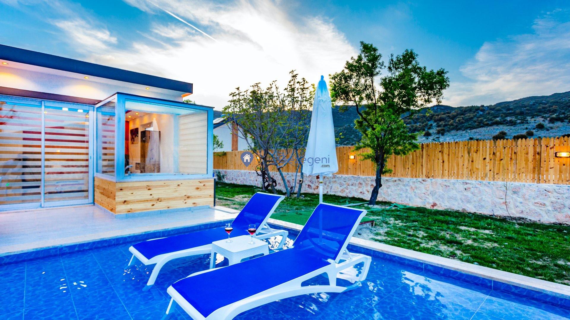 Antalya/Kaş/Kalkan/Sarıbelen bölgesinde yer alan 2 yatak odalı 4 kişi kapasiteli tatil villasıdır.