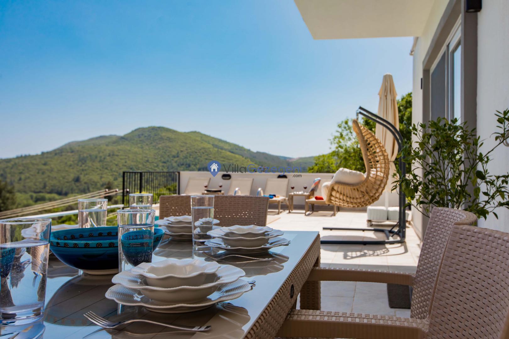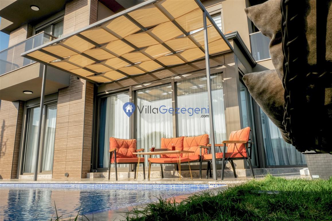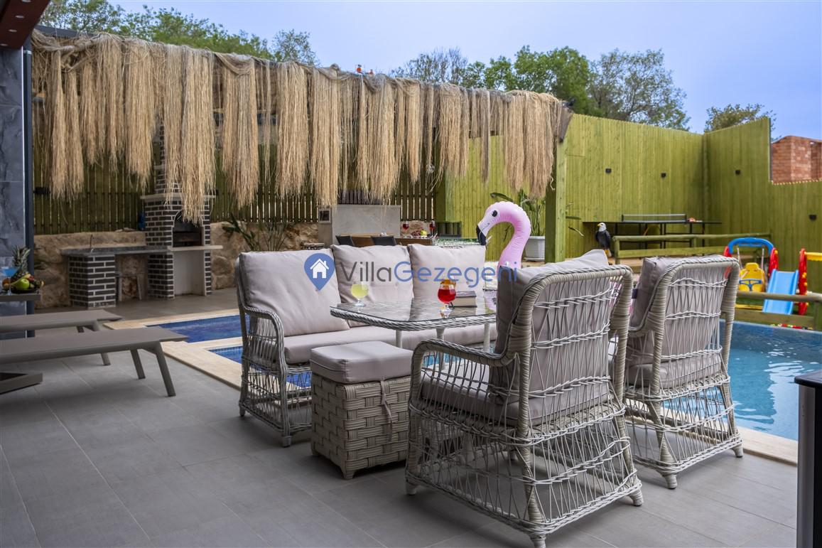 Villa'nın terası villamızda kaldığınız süre boyunca eşiniz ve arkadaşlarınızla beraber keyifli vakit geçirmeniz için özel olarak dizayn edilmiştir. Villamızın terasında şezlong, güneş şemsiyesi, yemek masası ve barbekü bulunmaktadır. Bu sayede konaklamanız esnasında hem siz hem de sevdikleriniz ile birçok şey yapabilir, villanızda keyifli vakit geçirebilirsiniz.