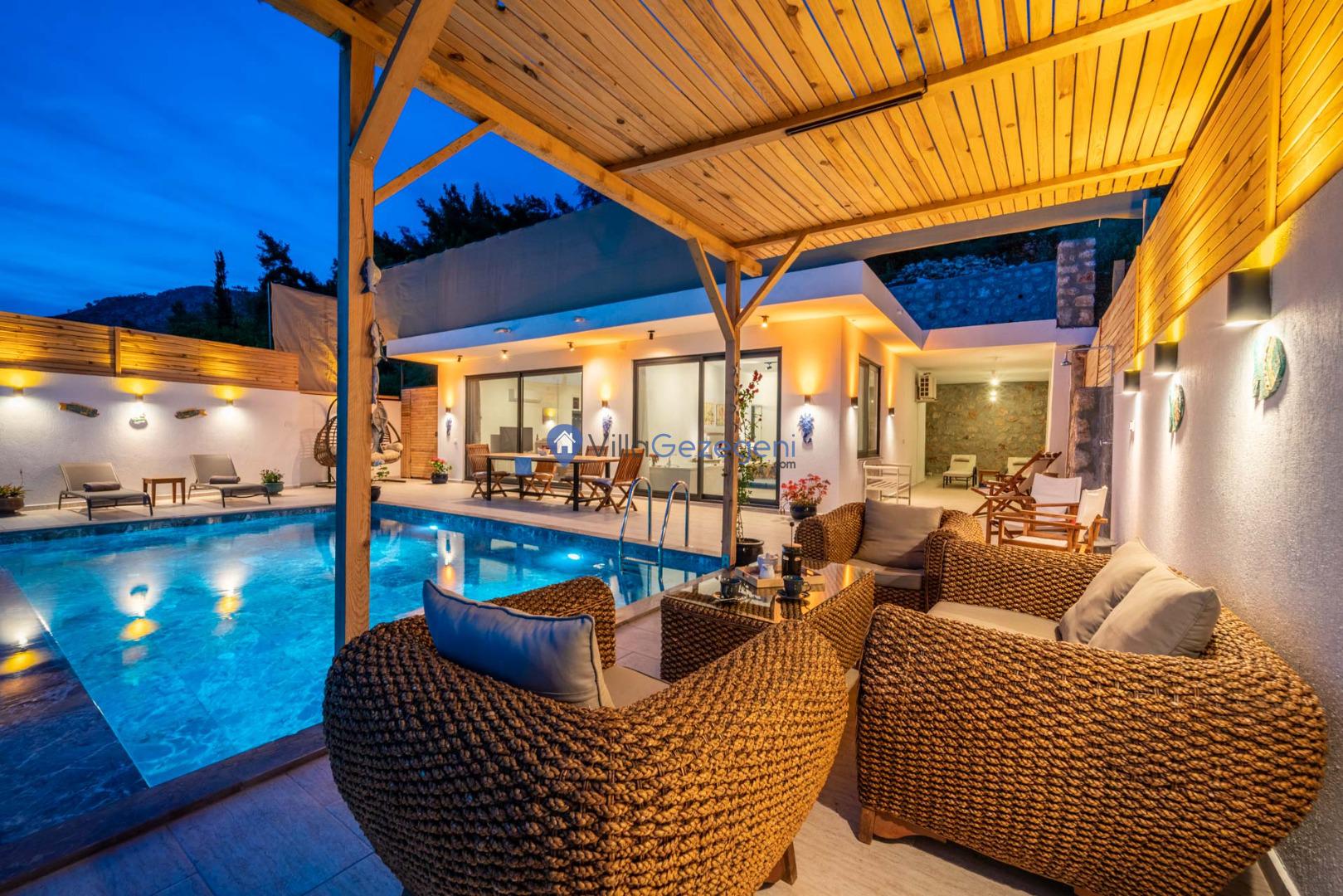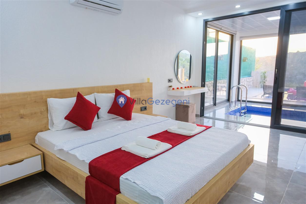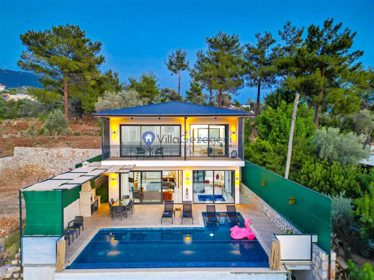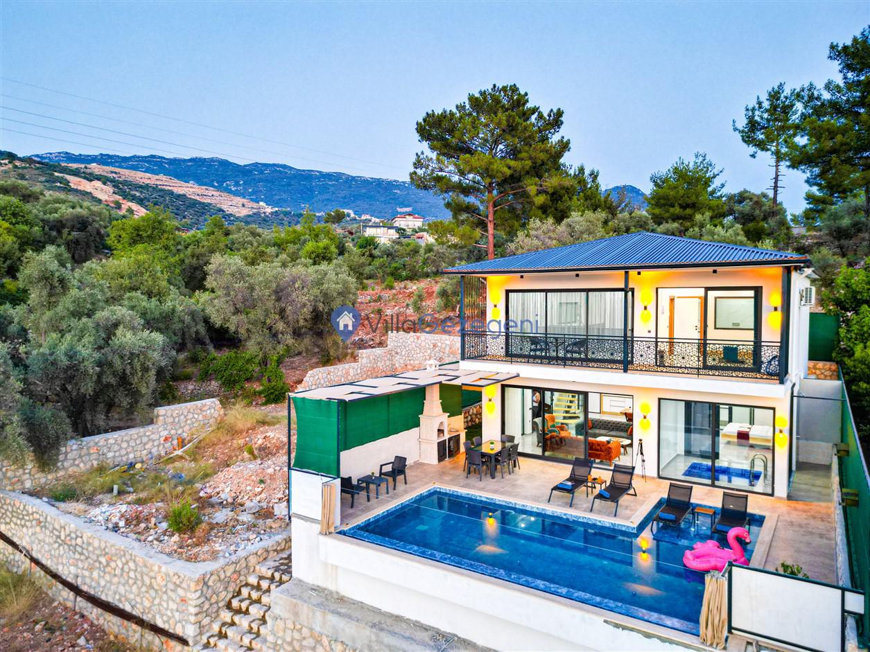 Kalkan Üzümlü bölgesinde yer alan tek yatak odalı 2 kişilik havuzu korunaklı,doğa içerisinde muhafazakar kiralık aile ve balayı villası.