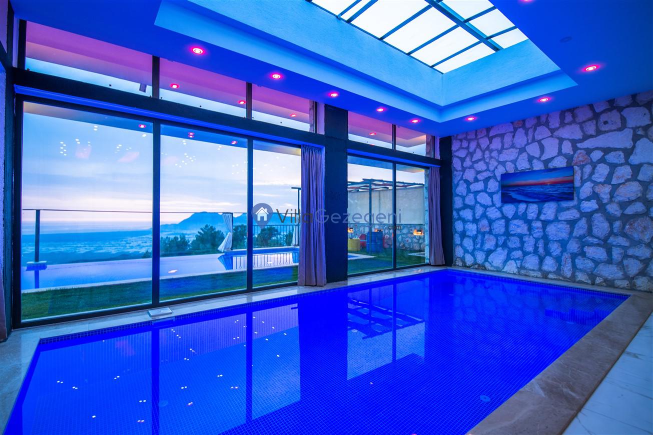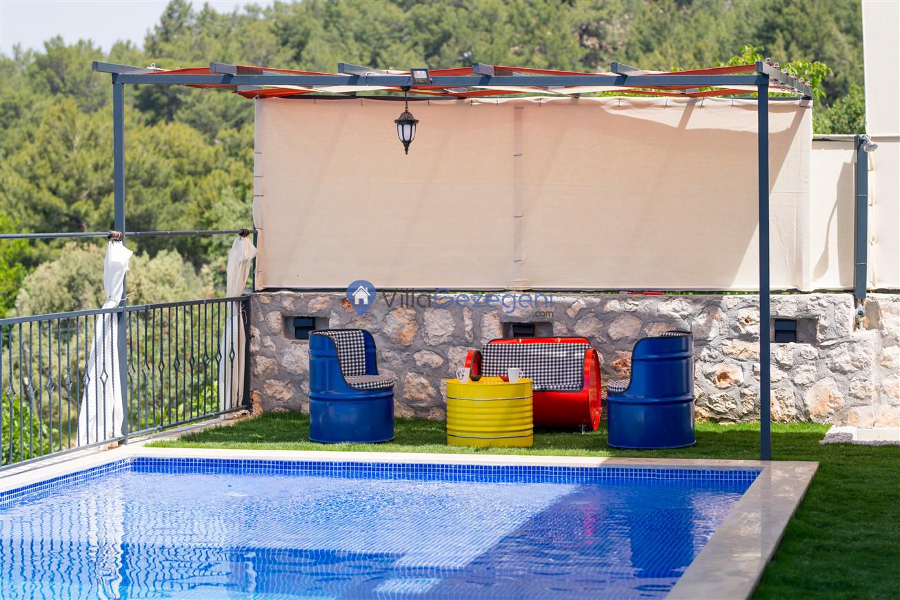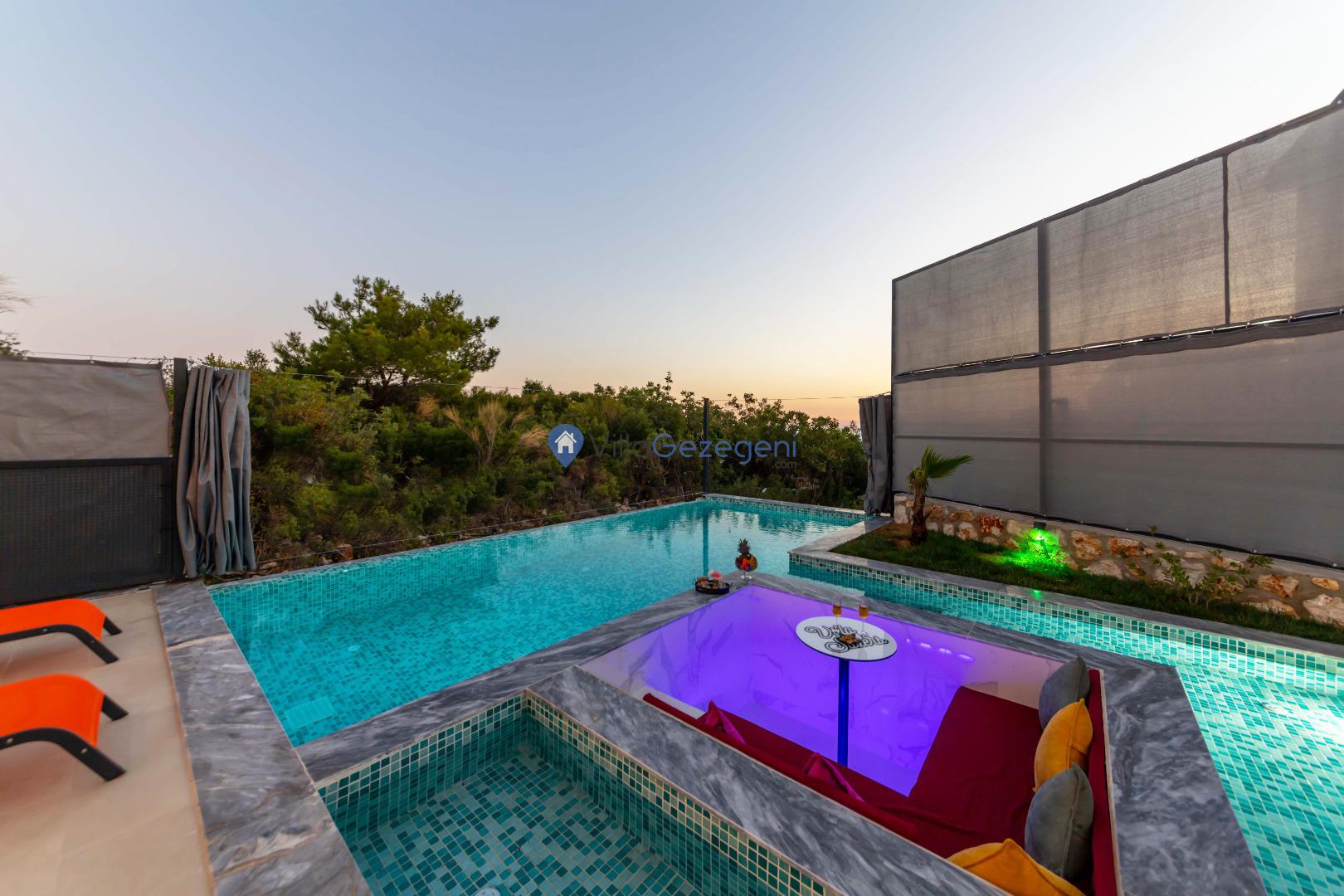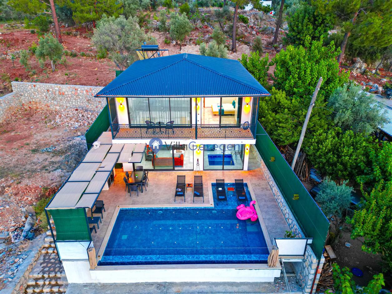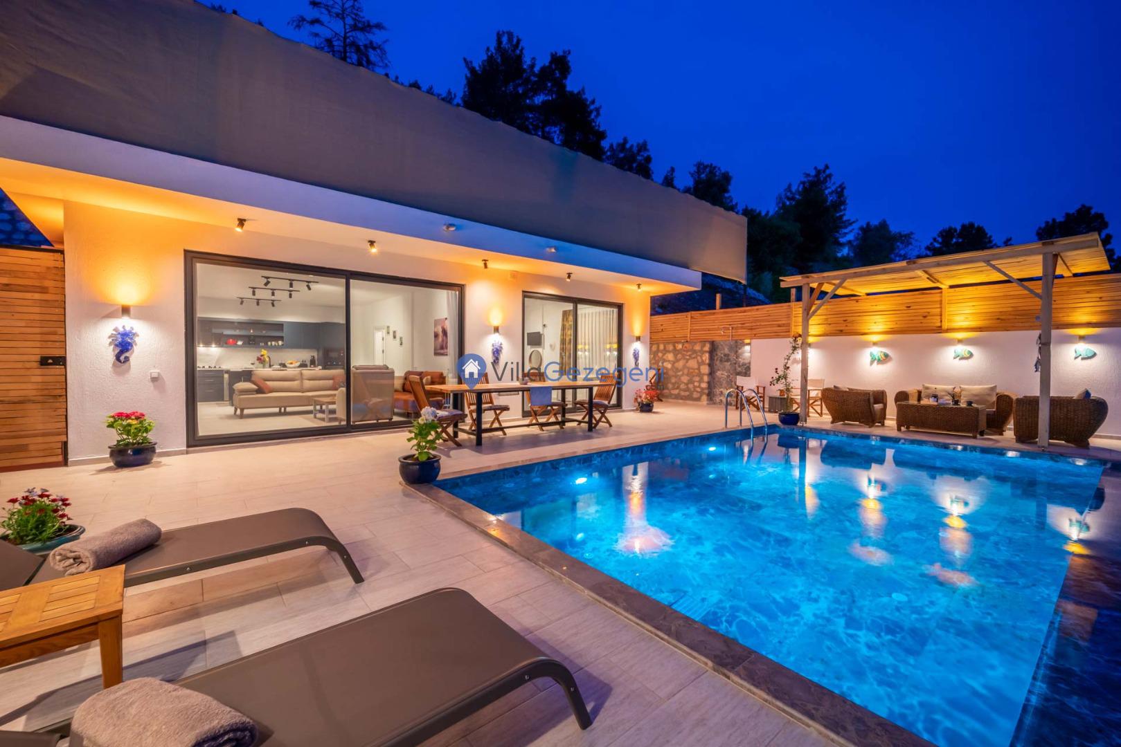 Kalkan Üzümlü bölgesinde yer alan tek yatak odalı 2 kişilik havuzu korunaklı,doğa içerisinde muhafazakar kiralık aile ve balayı villası.
