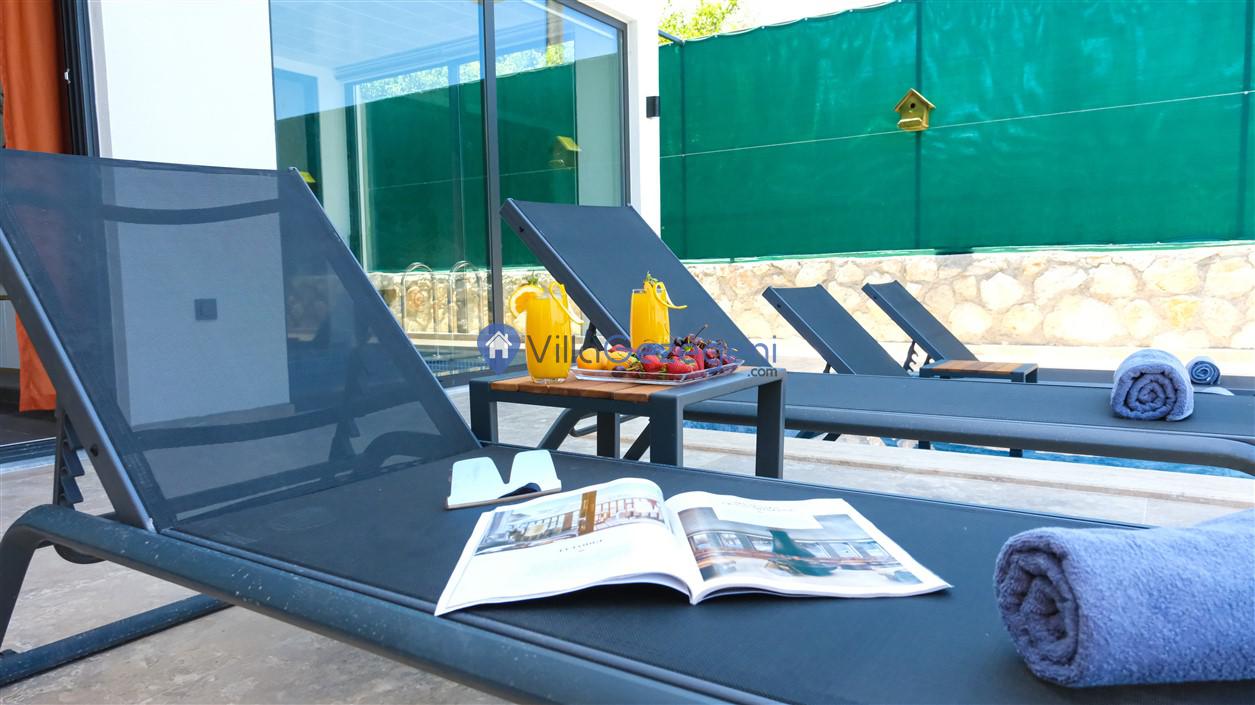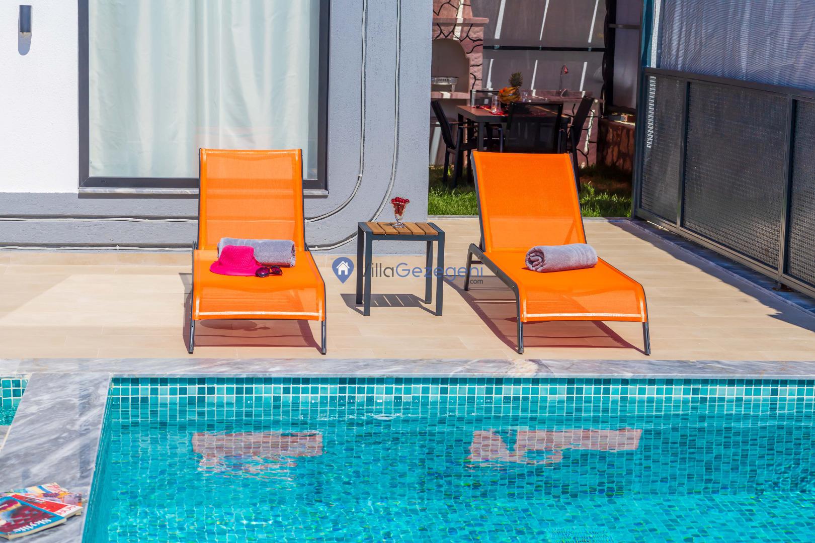 Villamızın genel konsept ve özelliklerinden tekrar bahsedecek olursak; villamızın 1 adet müstakil özel havuzu bulunmaktadır. Ortalama bir bahçeye sahip olan villamız rahatlığı ön planda tutan 1 adet yatak odası, 1 yatak,1 banyo, hareket alanı geniş bir mutfak ve 2 kişinin geniş aralıklarla rahatlıkla oturabileceği koltuklara sahip salonu bulunmaktadır.