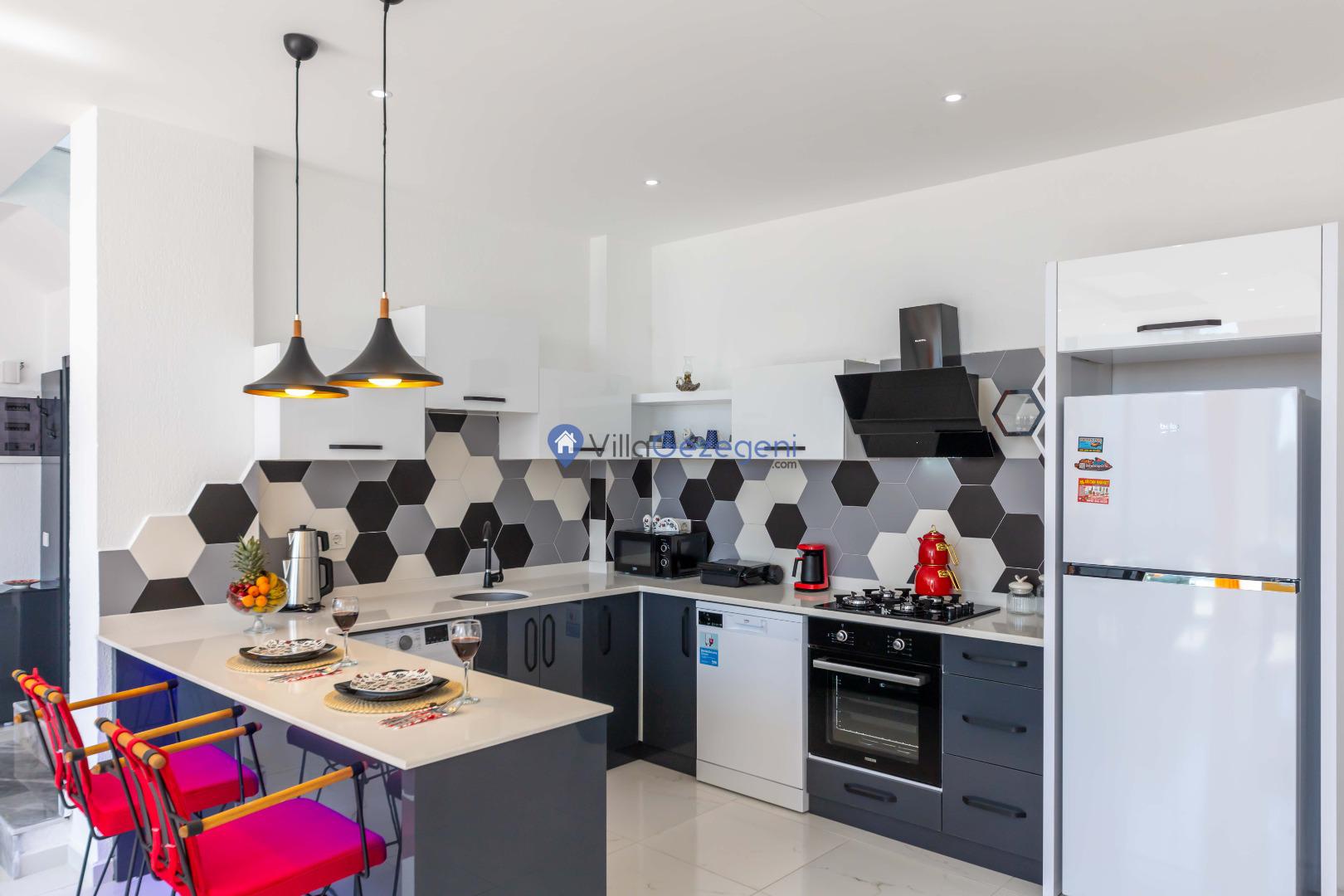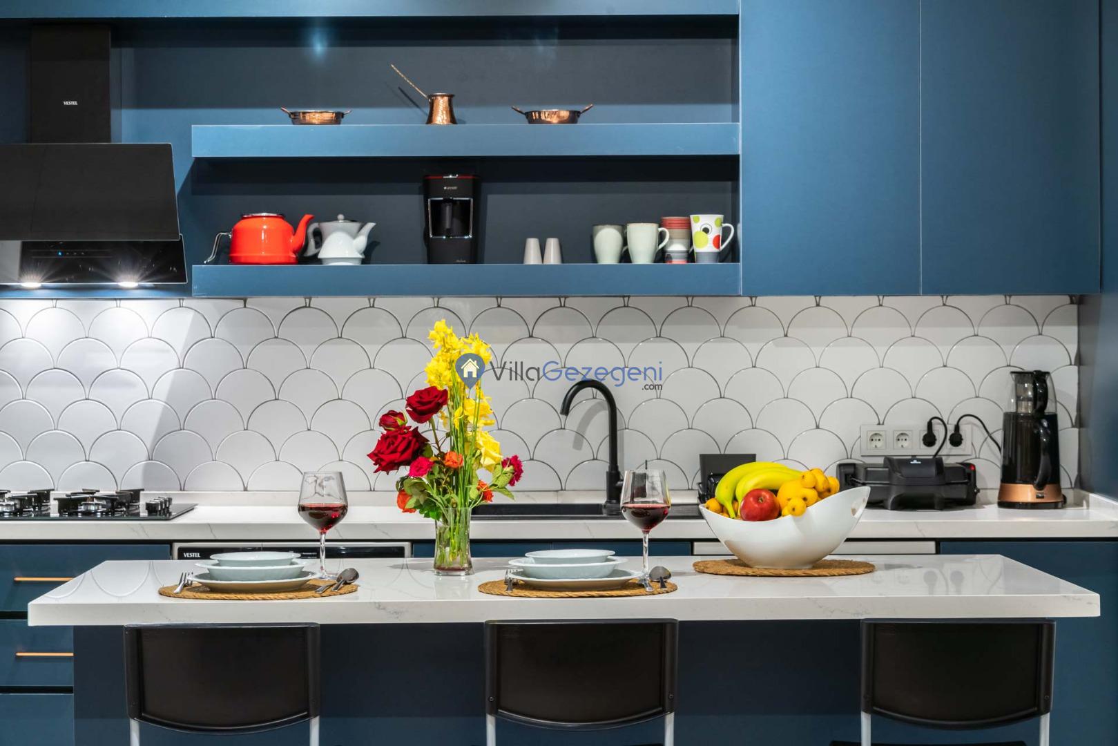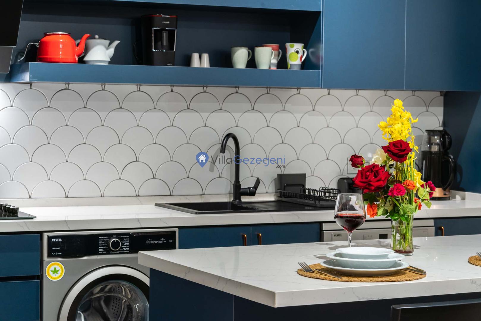 Villamız günlük hayatta sık kullanılan; Mikrodalga fırın, ankastre fırın, buzdolabı, çamaşır makinası, bulaşık makinesi, elektrikli su ısıtıcı kettle, ankastre 4’lü ocak, 4 kişilik yemek takımı, kaşık ve çatal takımı, tencere ve tava takımı, bardaklar yer almaktadır. İhtiyacınız durumunda villamızda bulunmayan malzemeler hakkında bizle iletişime geçebilir ve yardım isteyebilirsiniz.