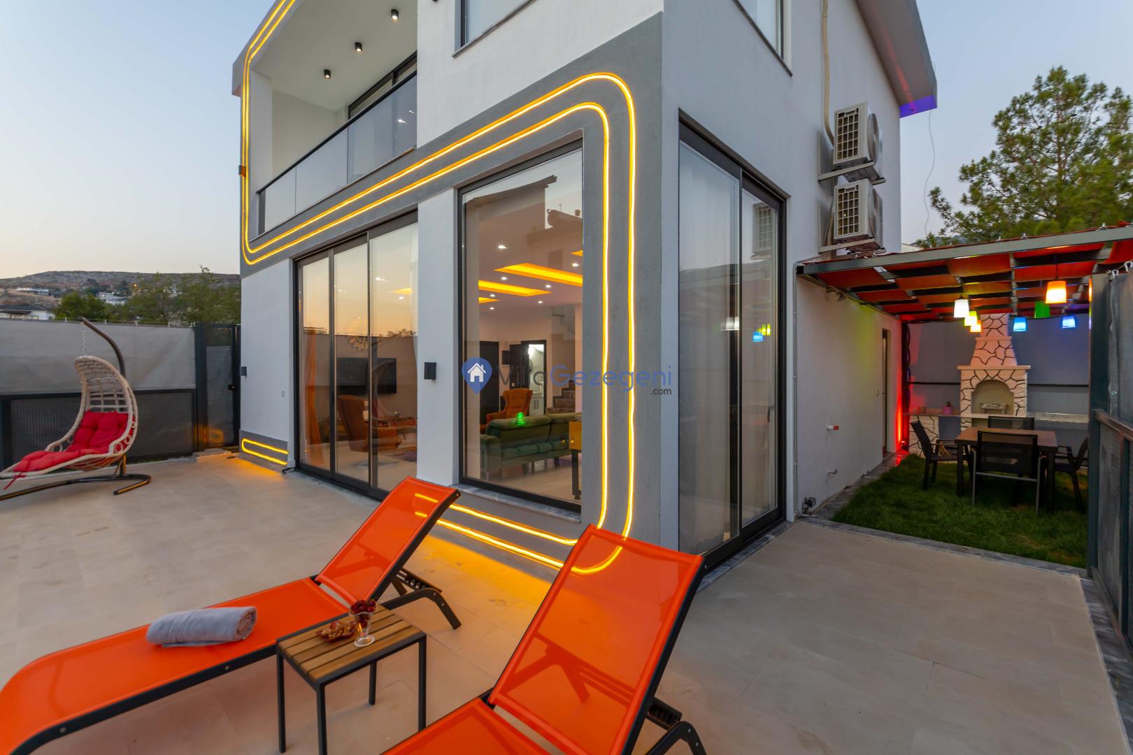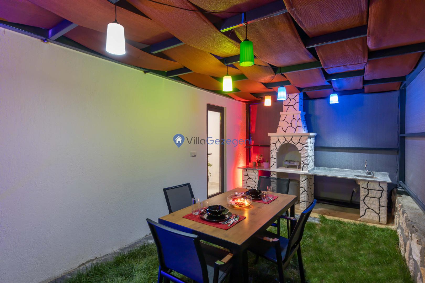 Yemek Masası ve bahçe mobilyaları kullanımınız için hazır bulunmaktadır sevdikleriniz ile beraber yemekler yiyip sohbetin dibine vurabilirsiniz. Villanın bahçesindeki salıncak ile keyifli vakitler geçirebilirsiniz.