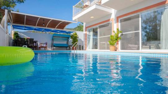 Kaş Kalkan Üzümlü bölgesinde yer alan, 2 yatak odalı ve 4 kişi konaklama kapasiteli villamız; doğa ile iç içe, huzurlu bir tatil arayan misafirlerimiz için ideal bir seçenektir. Korunaklı özel yüzme havuzu sayesinde muhafazakâr aileler ve balayı çiftleri için uygundur. Sessiz ve sakin konumu ile şehir kalabalığından uzak, keyifli bir tatil imkânı sunar.