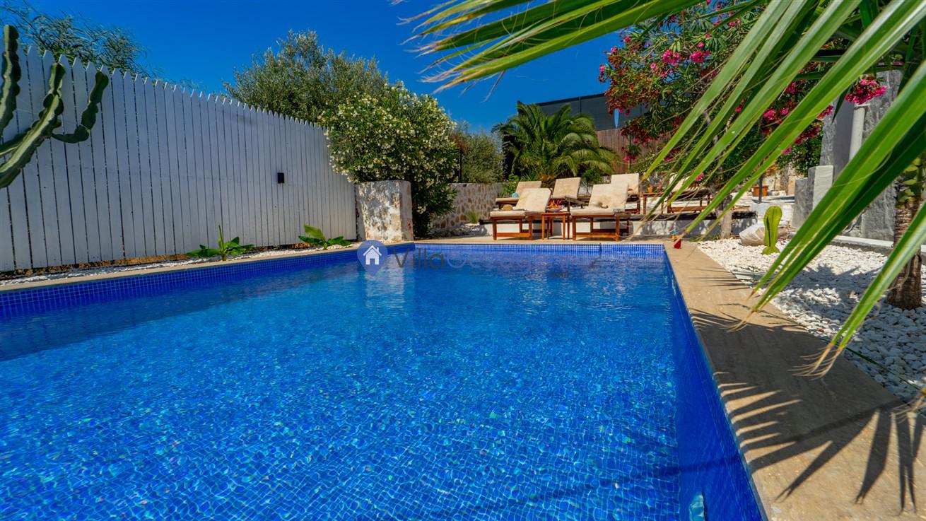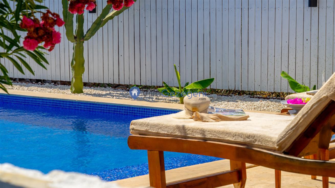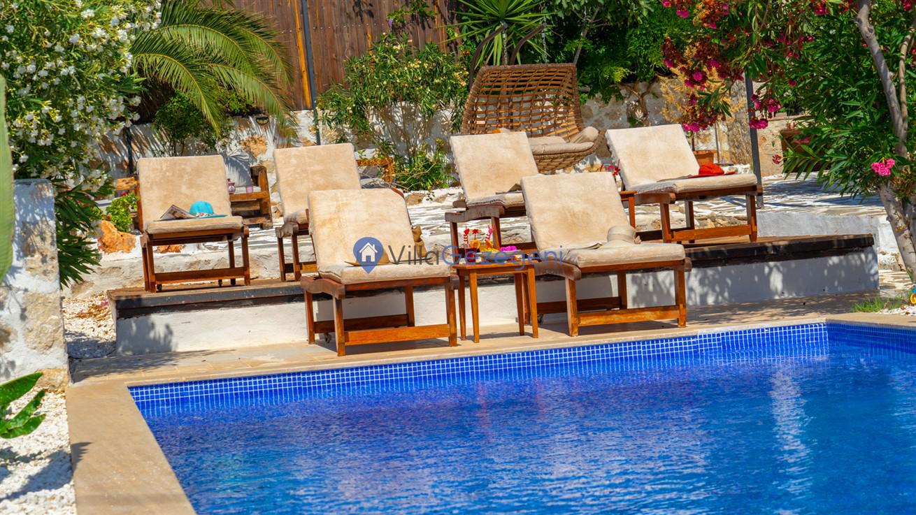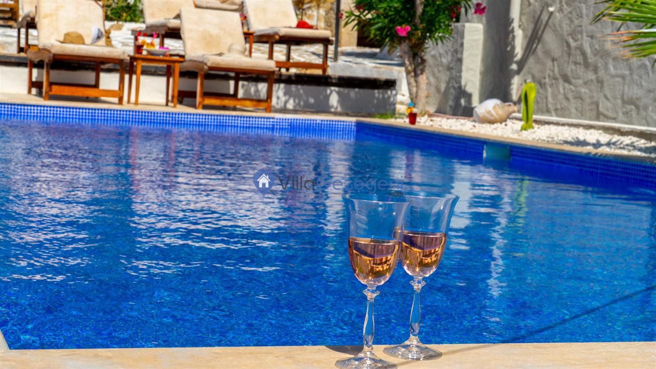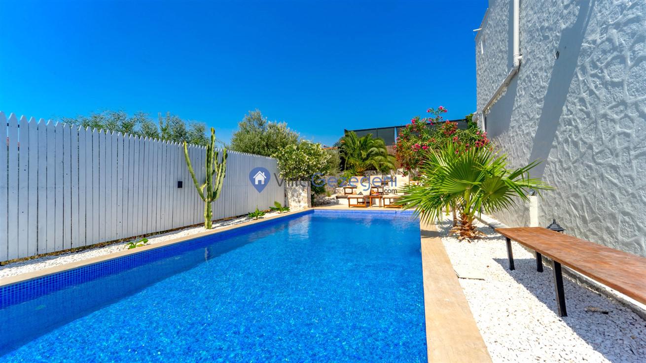 Villamızın genel konsept ve özelliklerinden tekrar bahsedecek olursak; villamızın 1 adet müstakil özel havuzu bulunmaktadır. Ortalama bir bahçeye sahip olan villamız rahatlığı ön planda tutan 1 adet yatak odası, 1 yatak, 1 banyo, hareket alanı geniş bir mutfak ve 2 kişinin geniş aralıklarla rahatlıkla oturabileceği koltuklara sahip salonu bulunmaktadır.