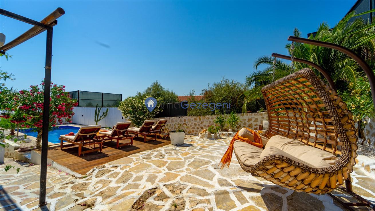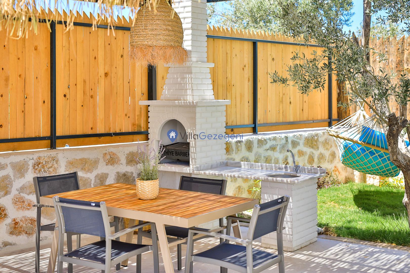 Yemek Masası ve bahçe mobilyaları kullanımınız için hazır bulunmaktadır sevdikleriniz ile beraber yemekler yiyip sohbetin dibine vurabilirsiniz. Villanın bahçesindeki salıncak ile keyifli vakitler geçirebilirsiniz.