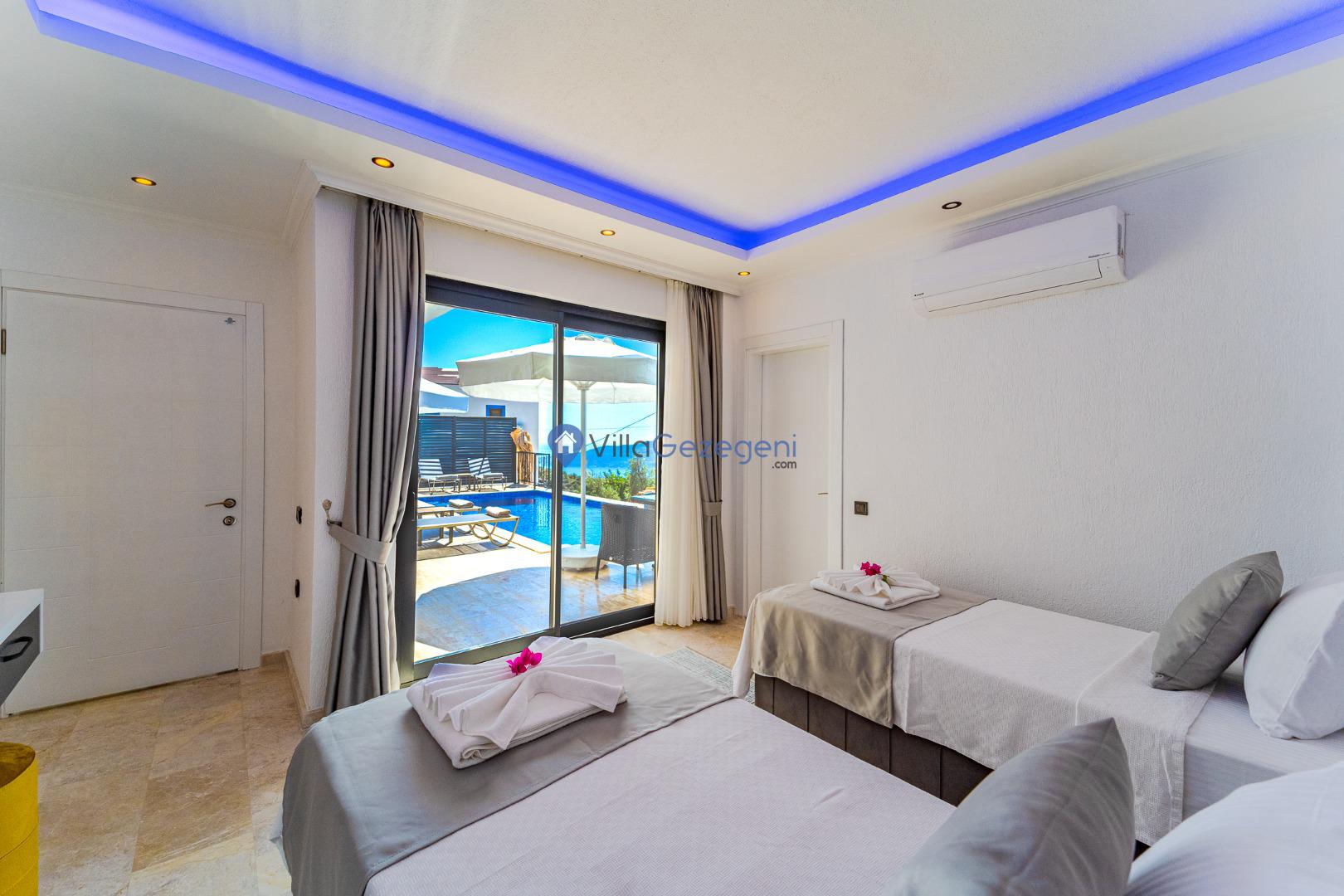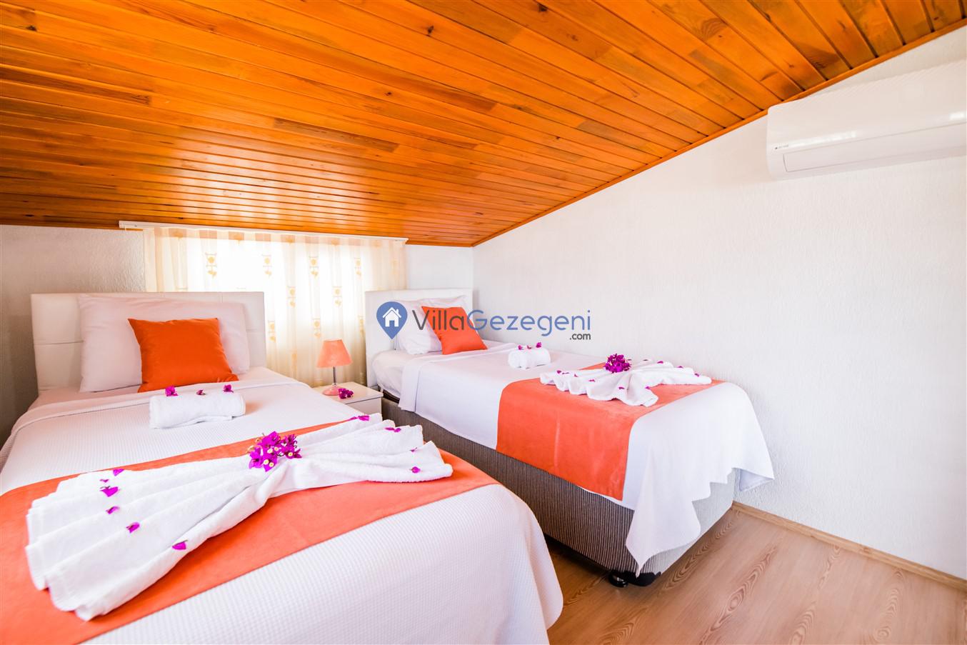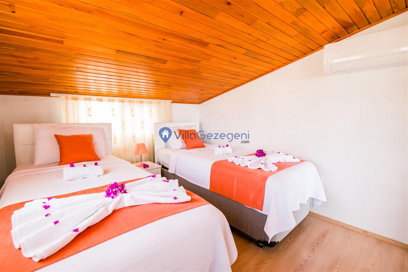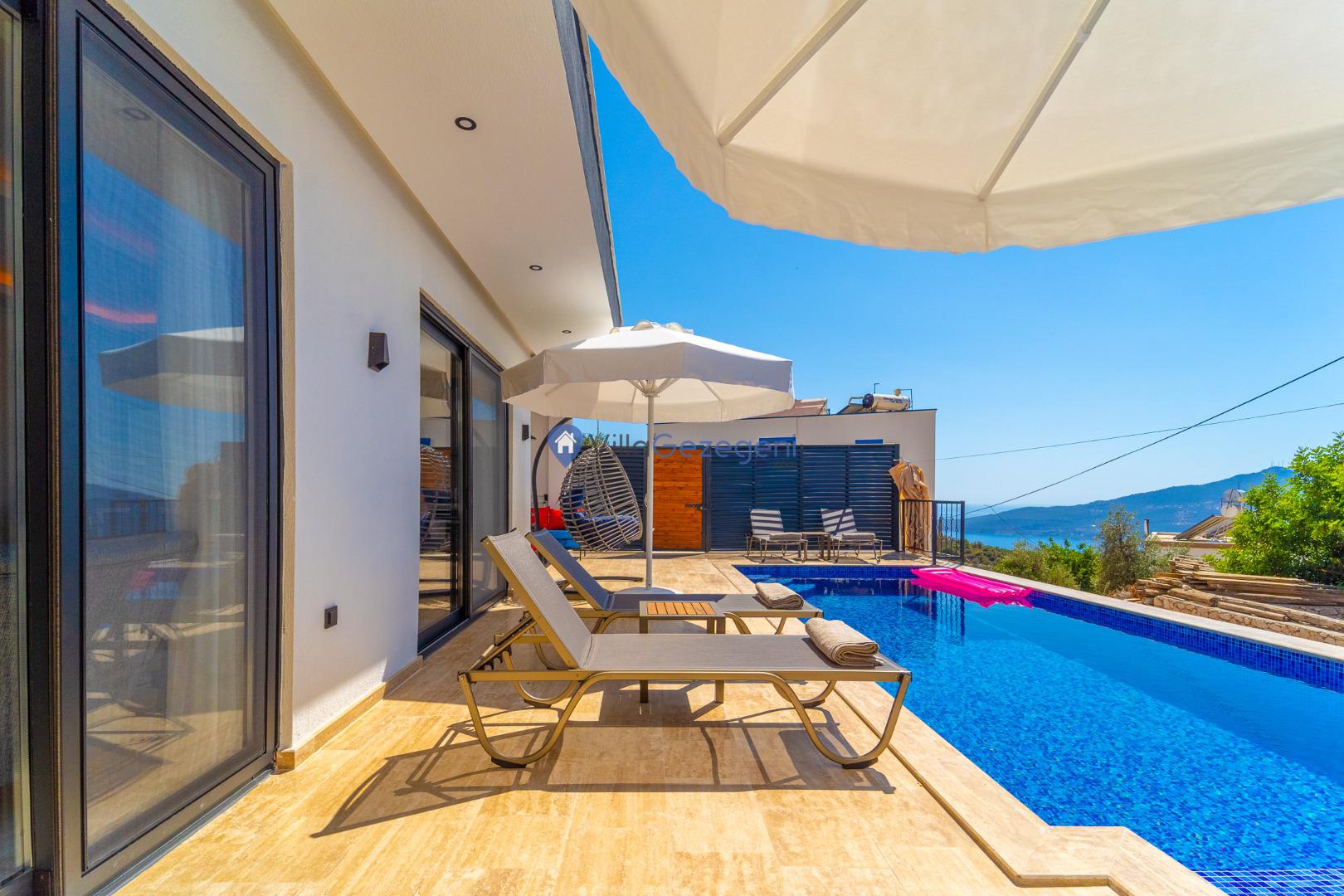 Kalkan Kördere Bölgesinde yer alan 4 yatak odalı 8 kişi kapasiteli deniz manzaralı, geniş aile ve akadaş grupları için uygun Kiralık Tatil Villası.