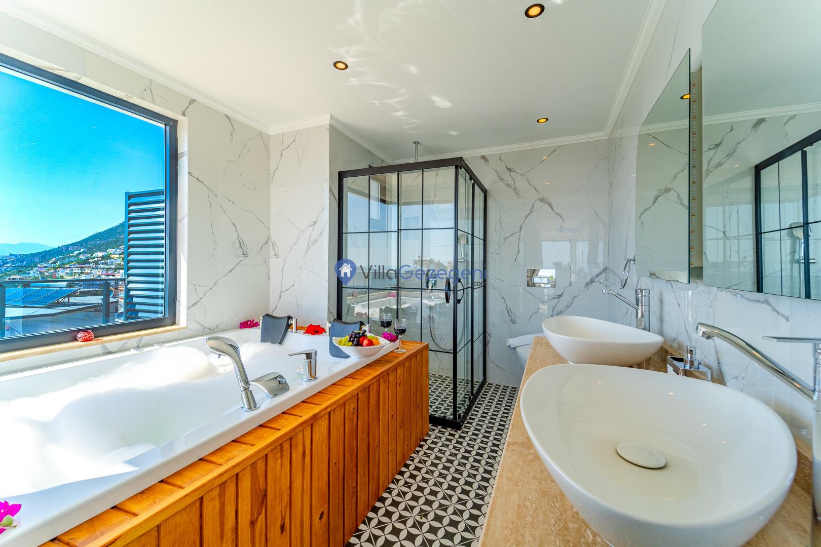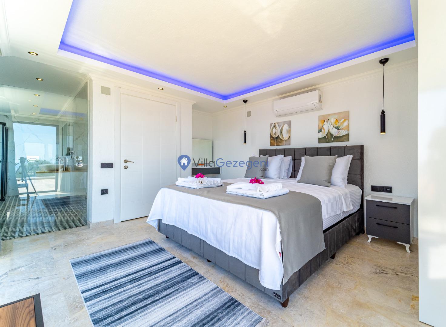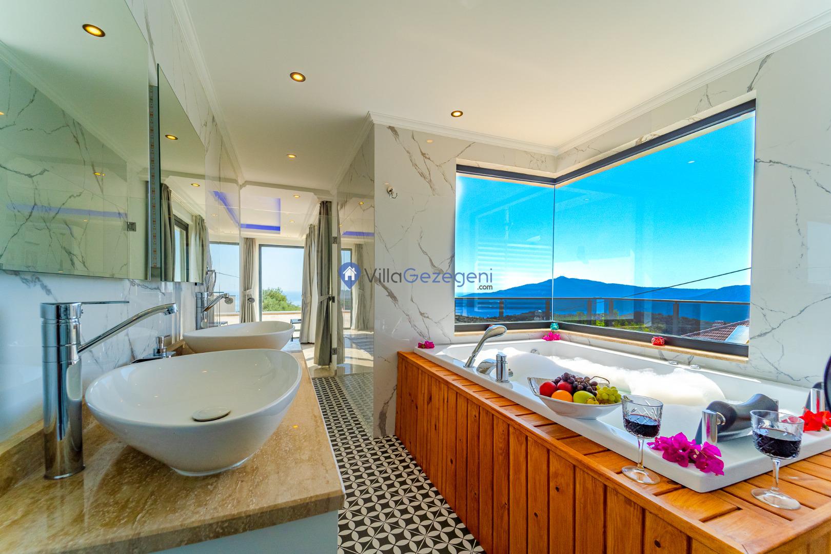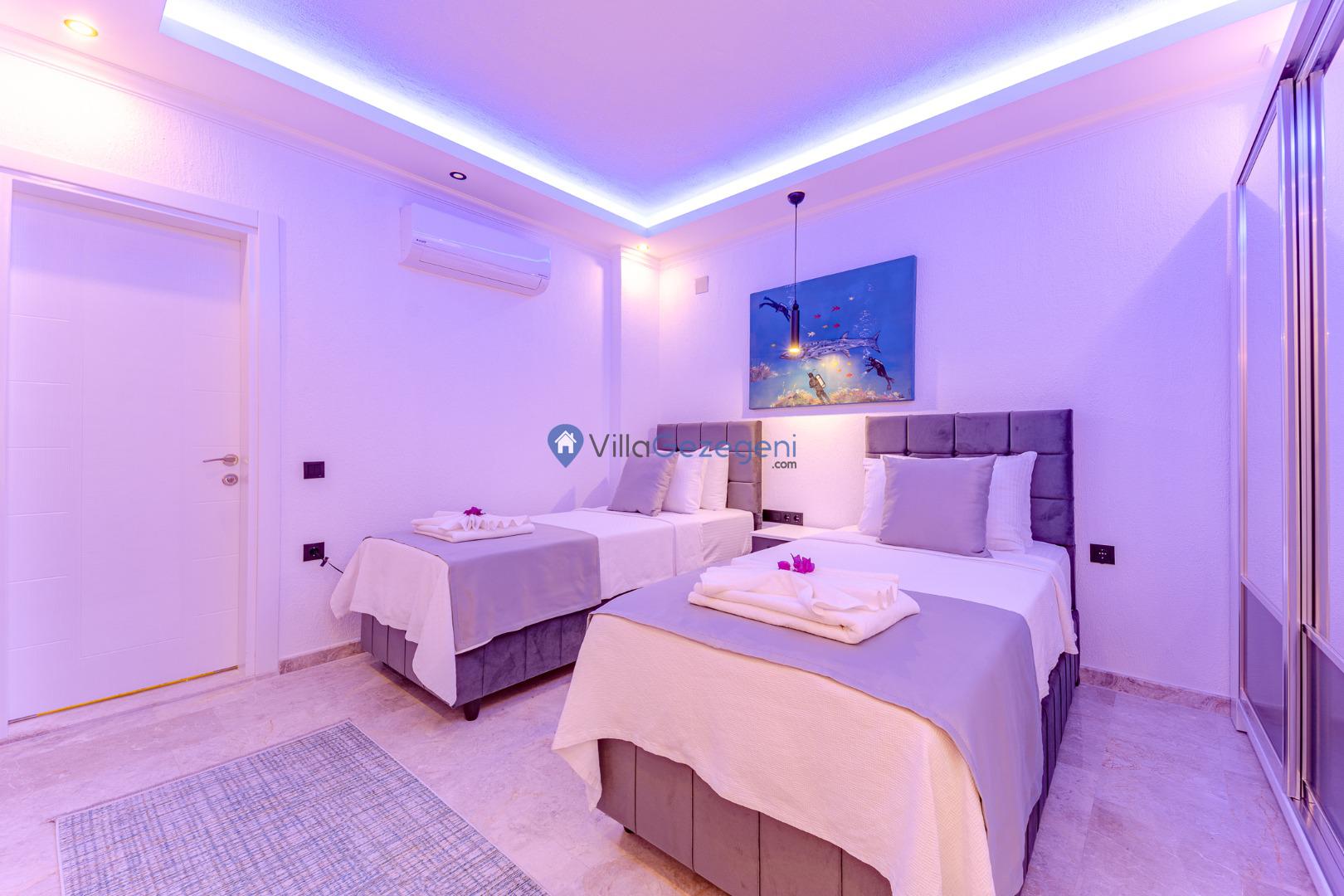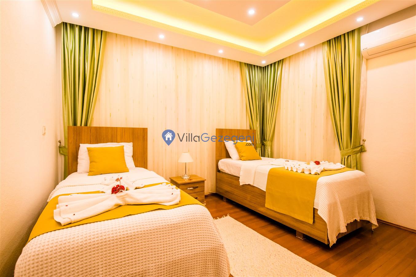 Kalkan Kördere Bölgesinde yer alan 4 yatak odalı 8 kişi kapasiteli deniz manzaralı, geniş aile ve akadaş grupları için uygun Kiralık Tatil Villası.