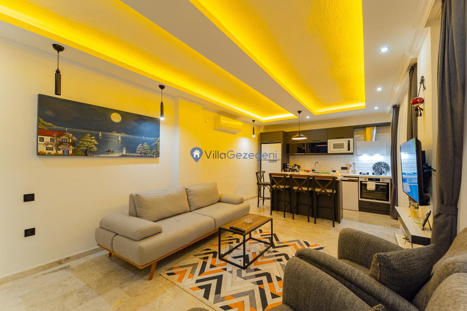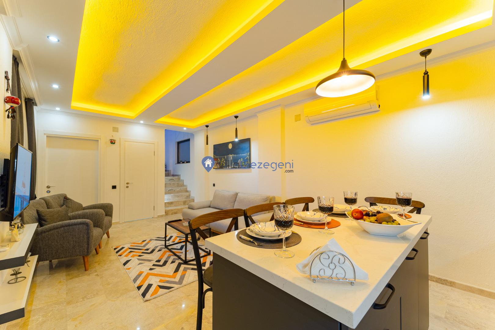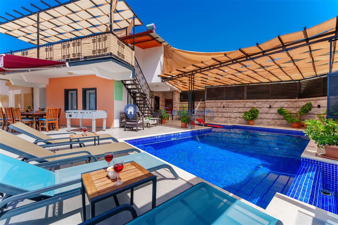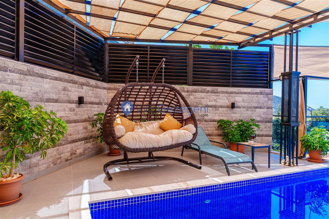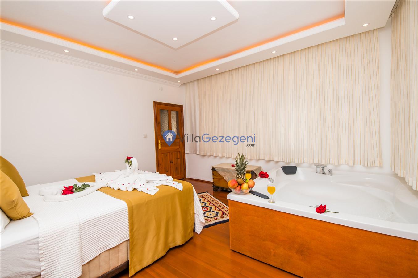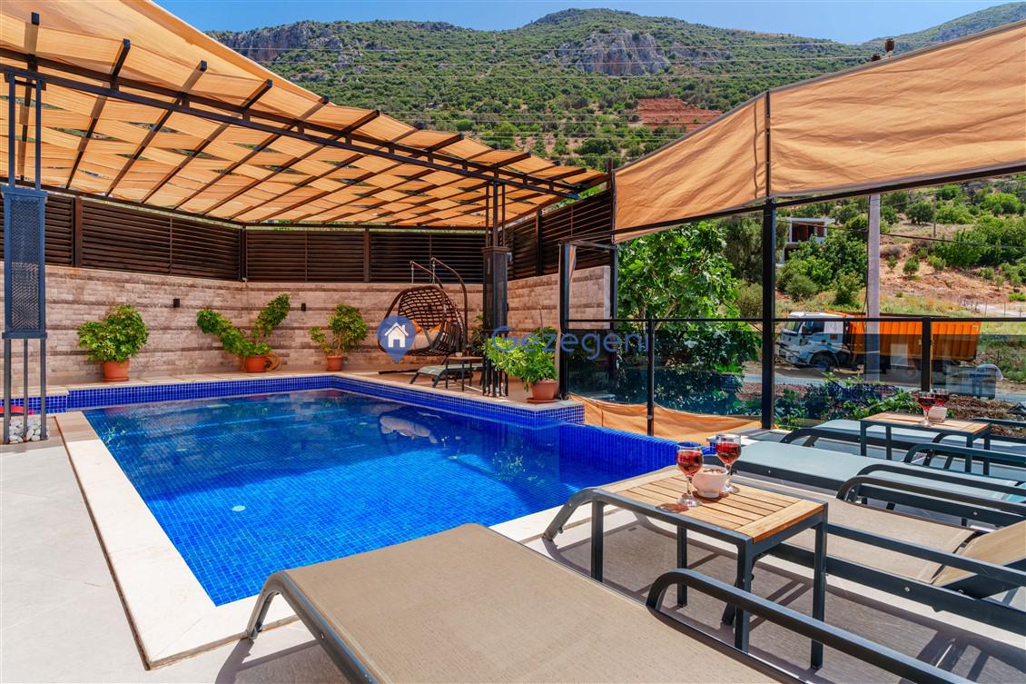 Kalkan Kördere mevkiinde bulunan tek yatak odalı 2 kişilik merkeze yakın muhafazakar balayı villası
