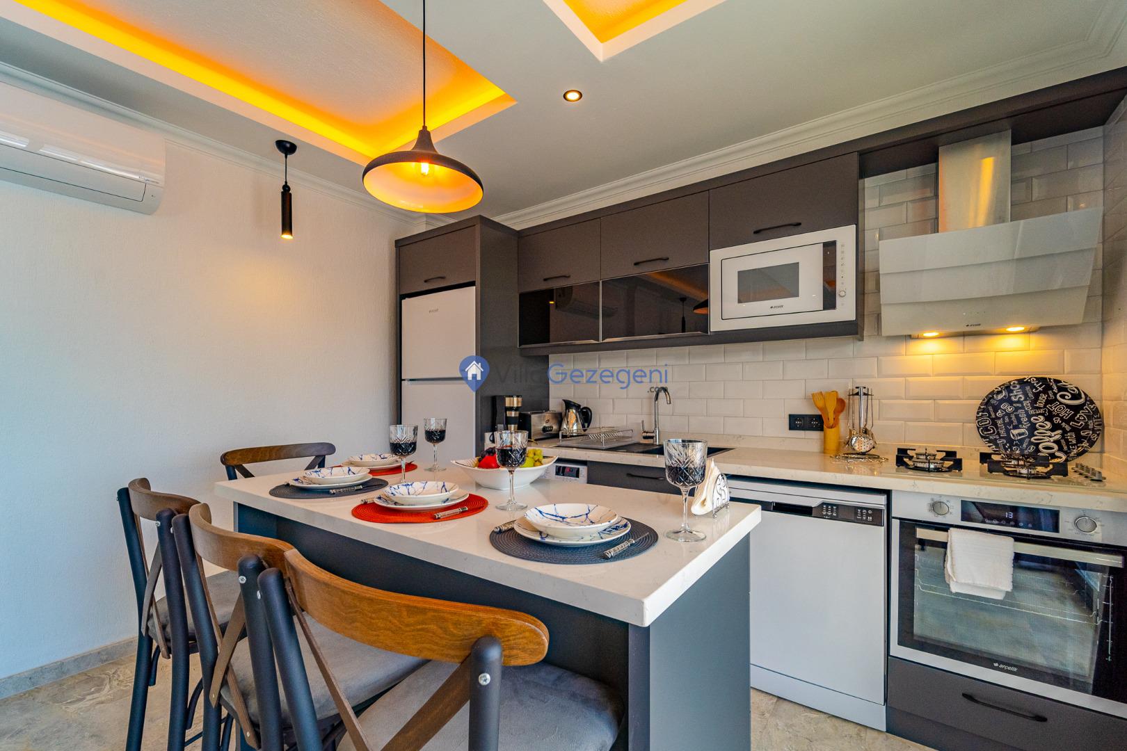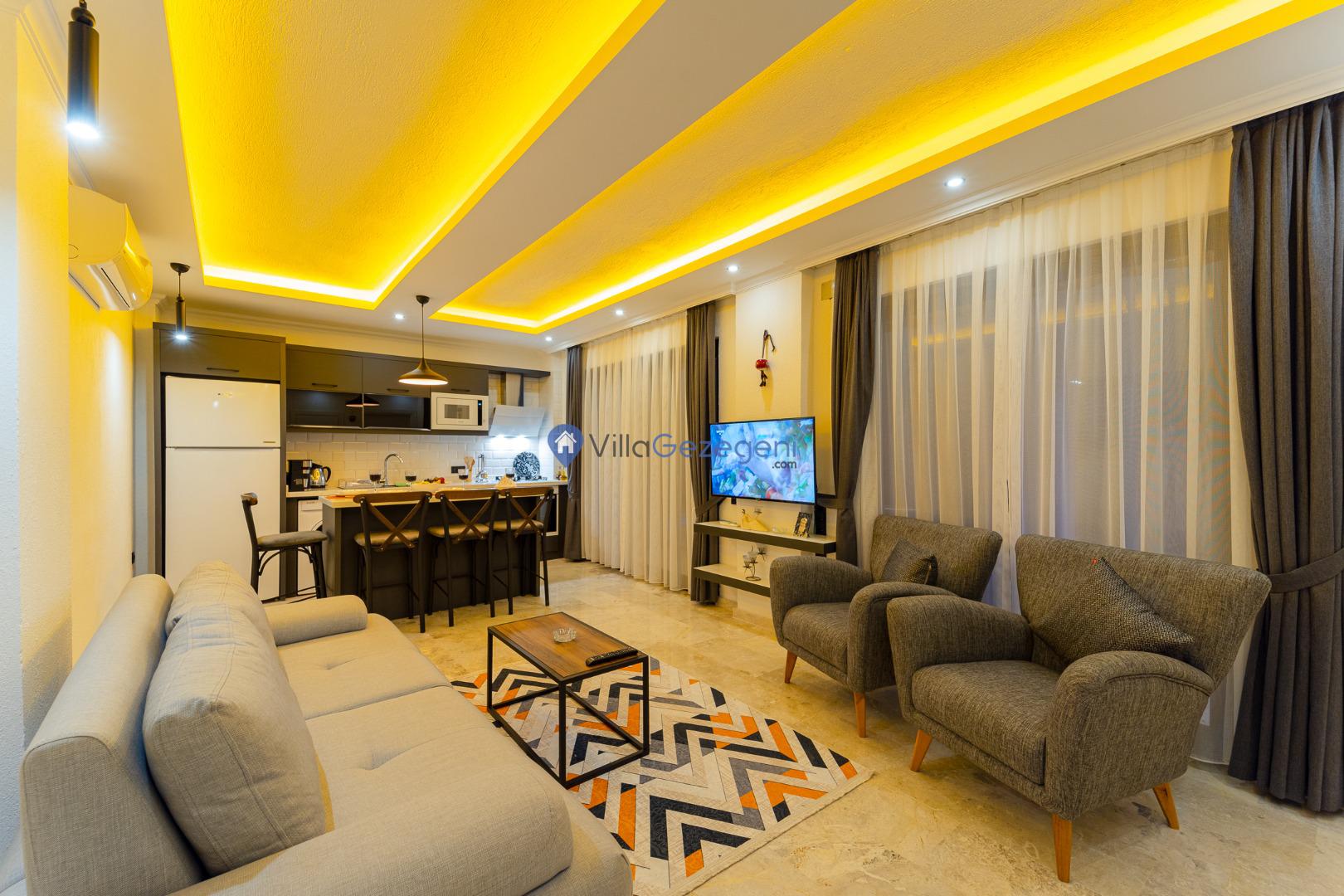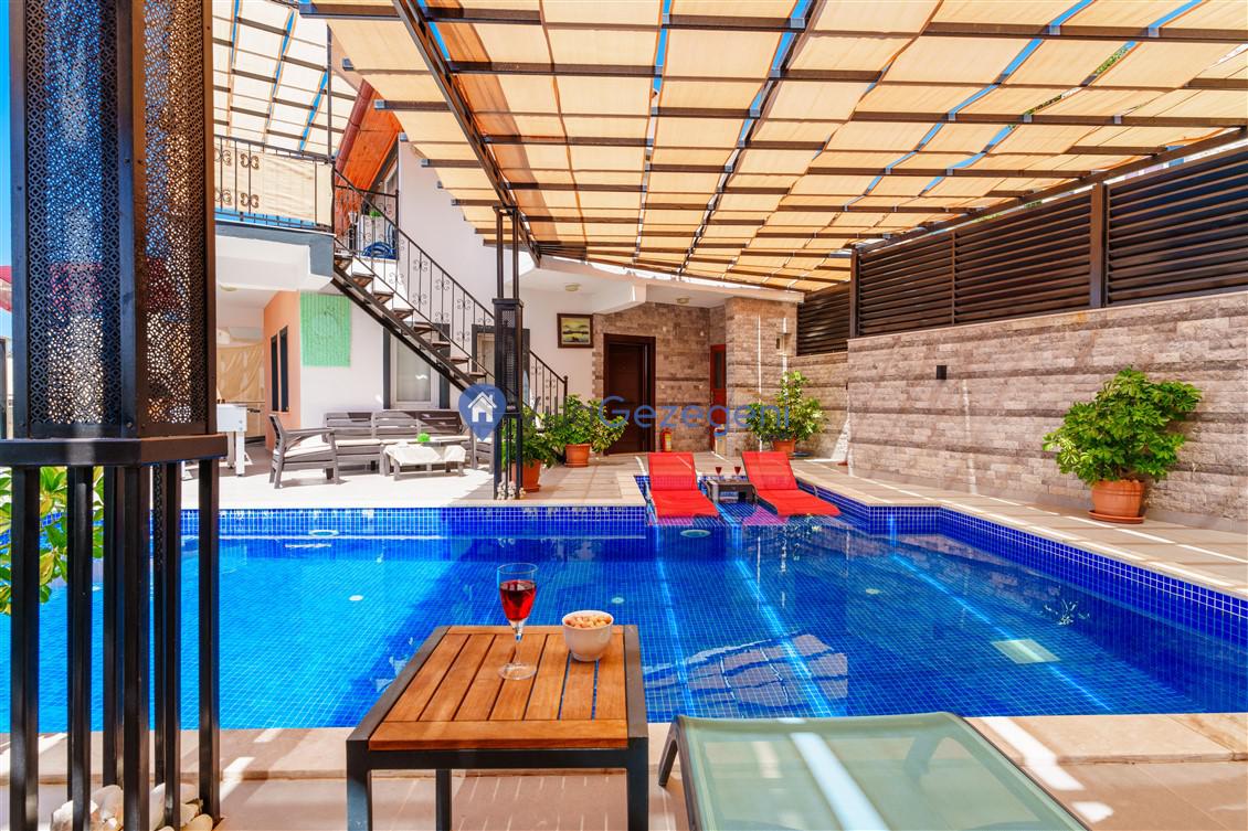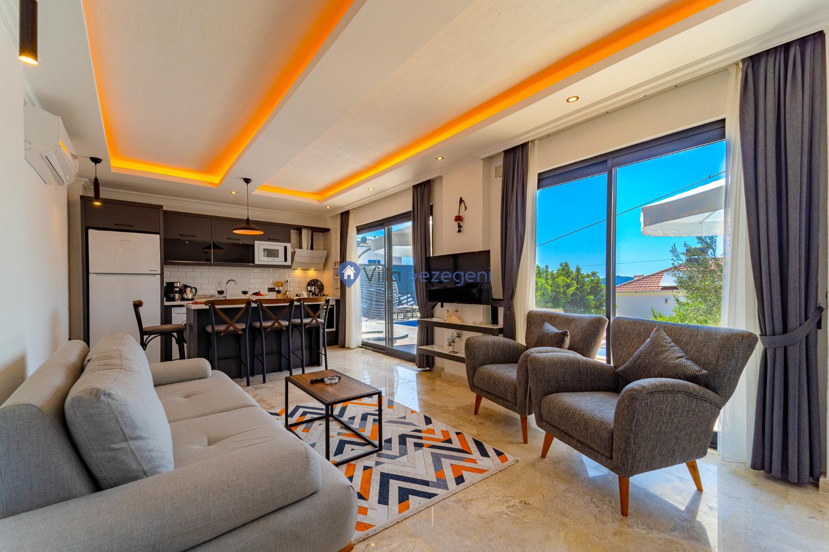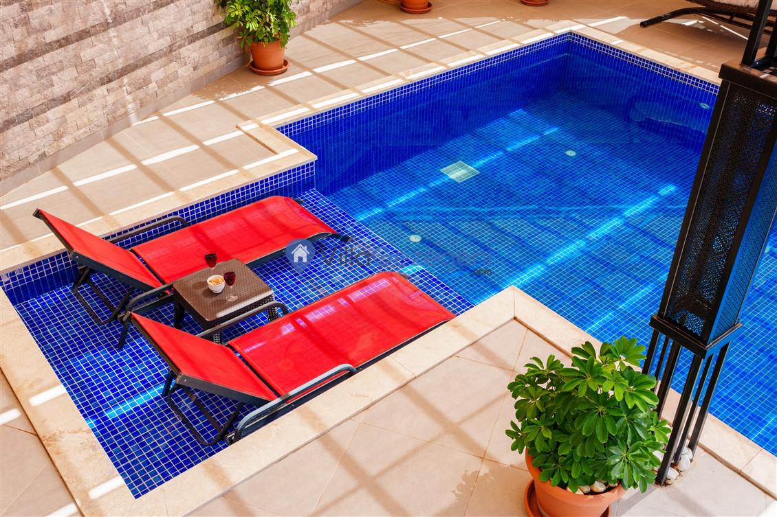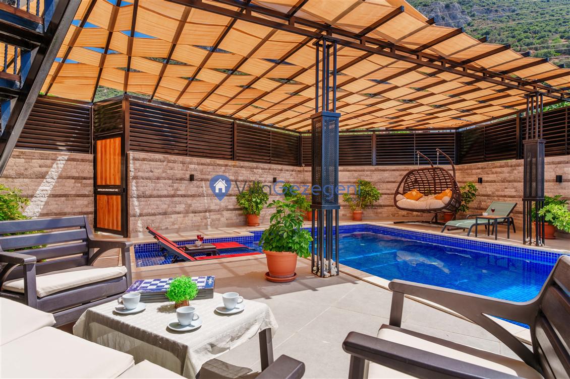 Kalkan Kördere mevkiinde bulunan tek yatak odalı 2 kişilik merkeze yakın muhafazakar balayı villası