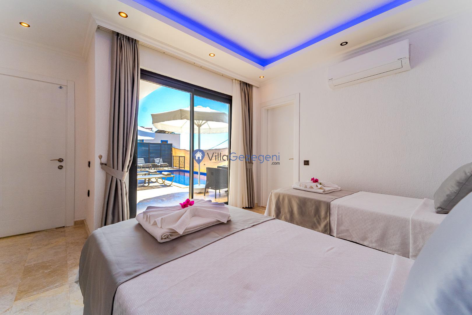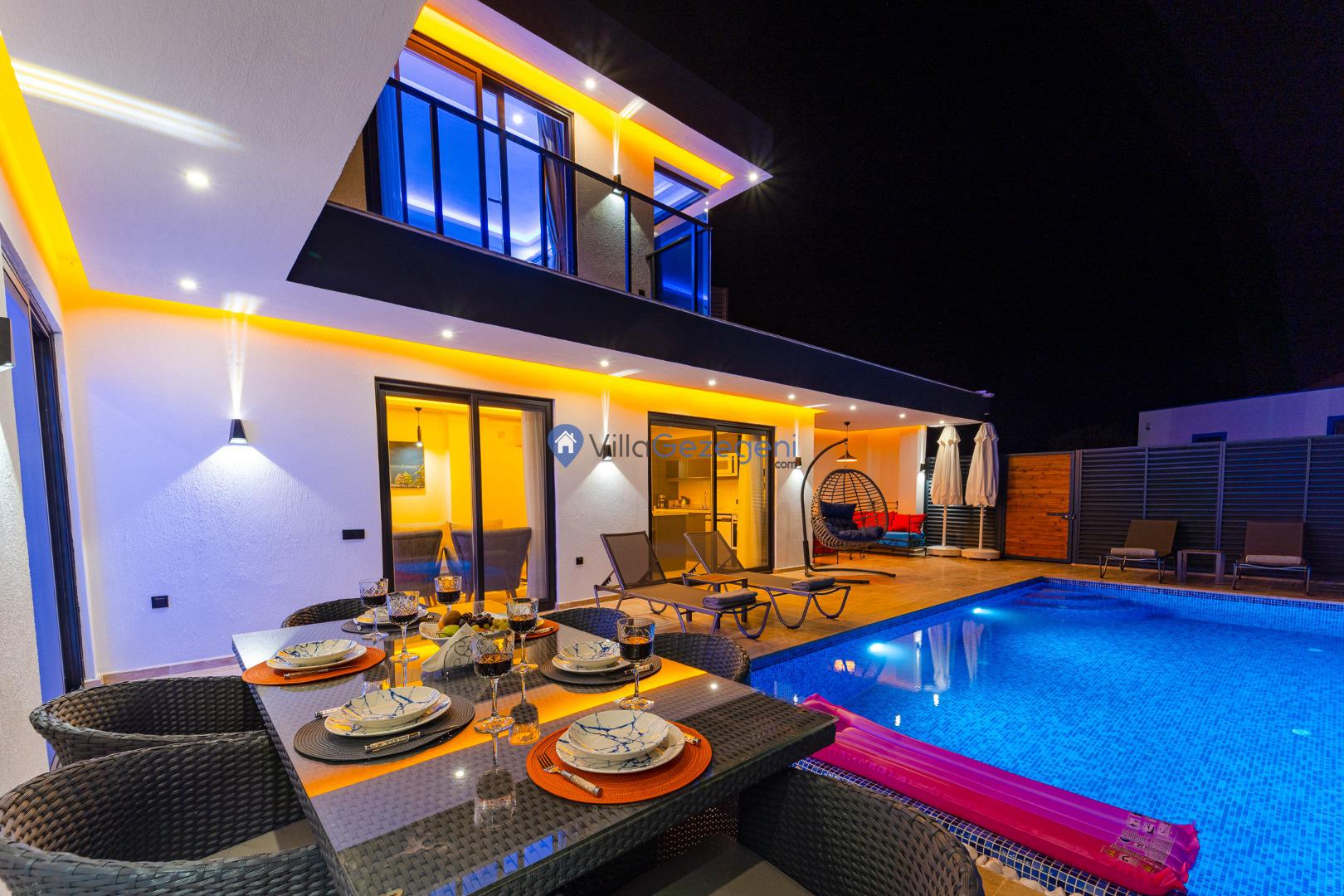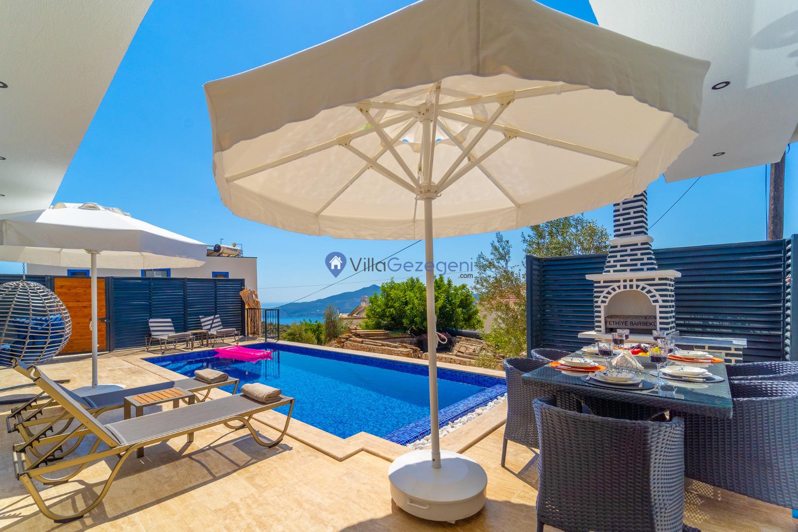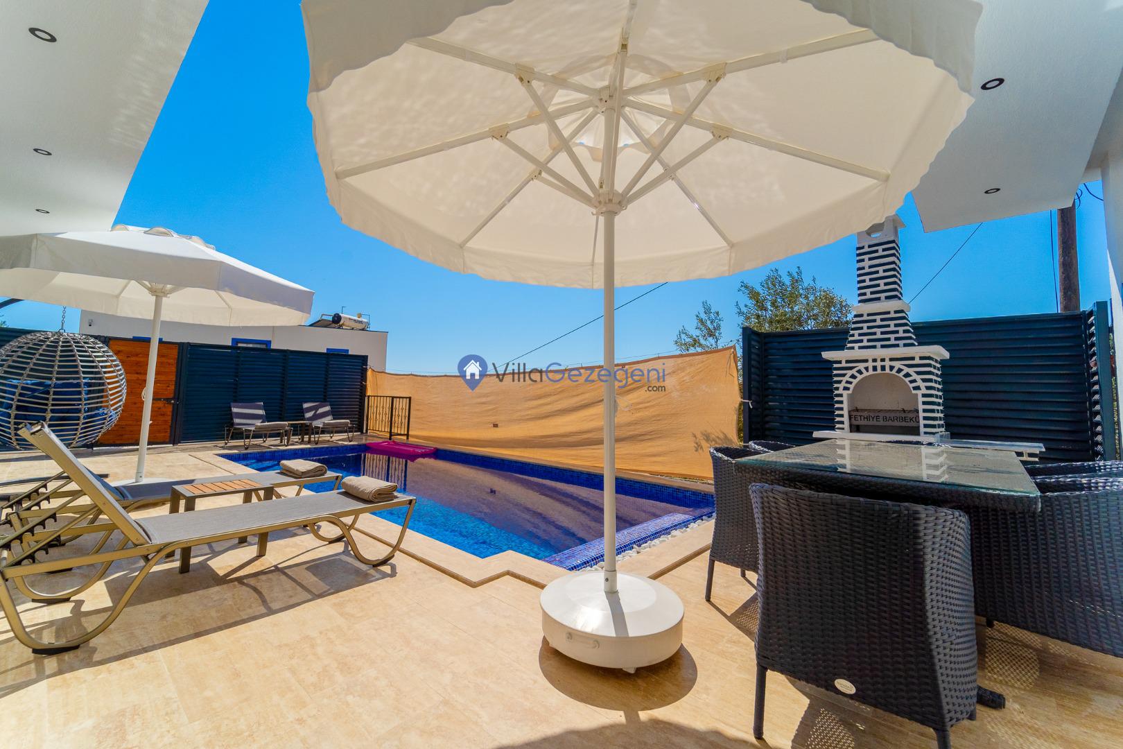 Villamızın genel konsept ve özelliklerinden tekrar bahsedecek olursak; villamızın 1 adet müstakil özel havuzu bulunmaktadır. Ortalama bir bahçeye sahip olan villamız rahatlığı ön planda tutan 2 adet yatak odası, 3 yatak, 2 banyo, hareket alanı geniş bir mutfak ve 4 kişinin geniş aralıklarla rahatlıkla oturabileceği koltuklara sahip salonu bulunmaktadır.