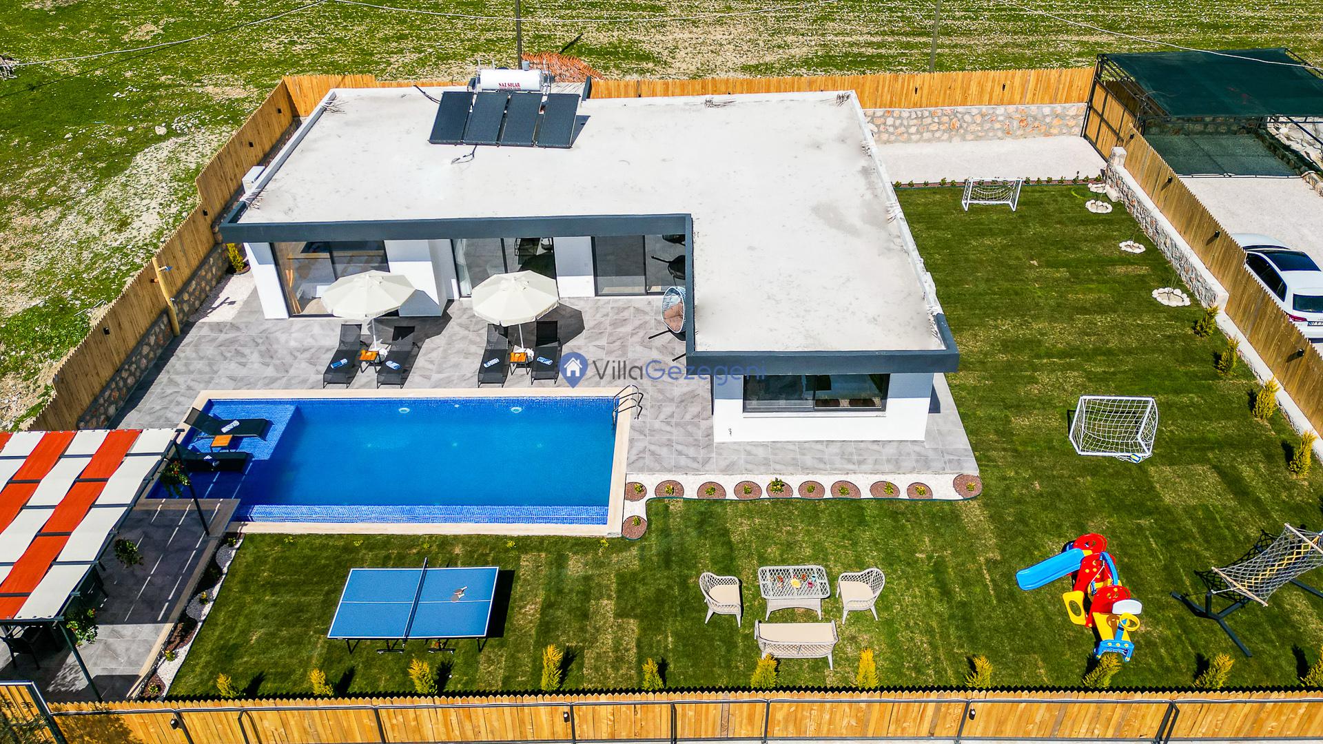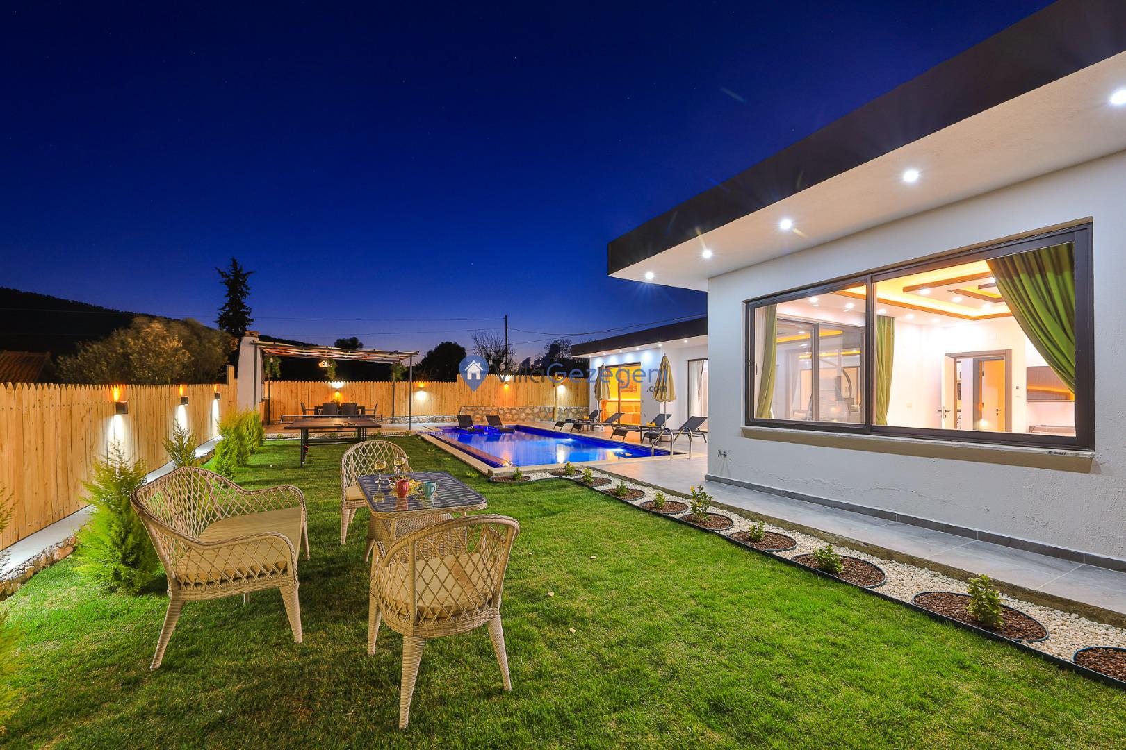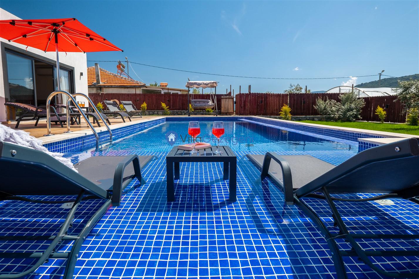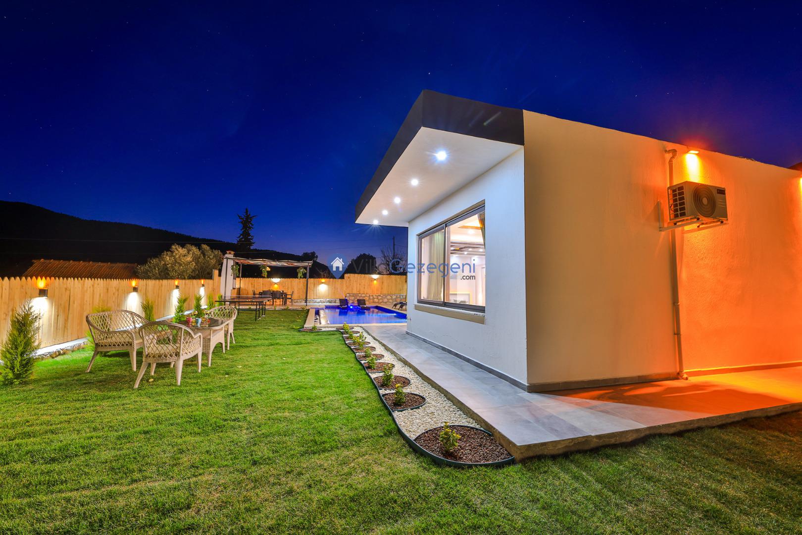 Villamızın genel konsept ve özelliklerinden tekrar bahsedecek olursak; villamızın 1 adet müstakil özel havuzu bulunmaktadır. Ortalama bir bahçeye sahip olan villamız rahatlığı ön planda tutan 3 adet yatak odası,4 yatak,3 banyo, hareket alanı geniş bir mutfak ve 8 kişinin geniş aralıklarla rahatlıkla oturabileceği koltuklara sahip salonu bulunmaktadır.