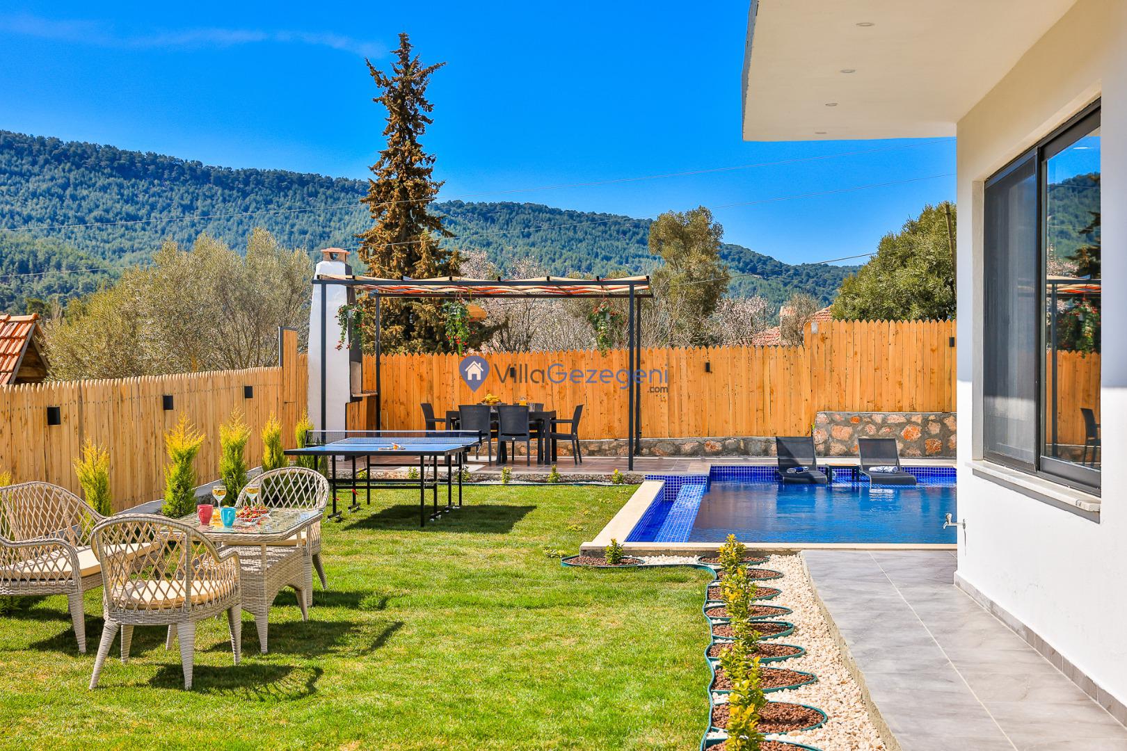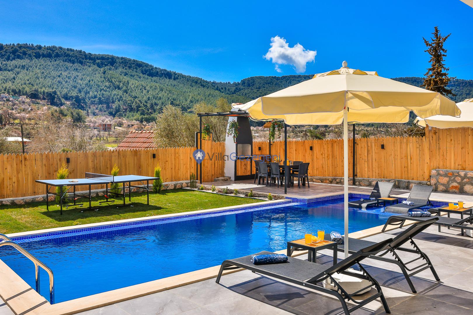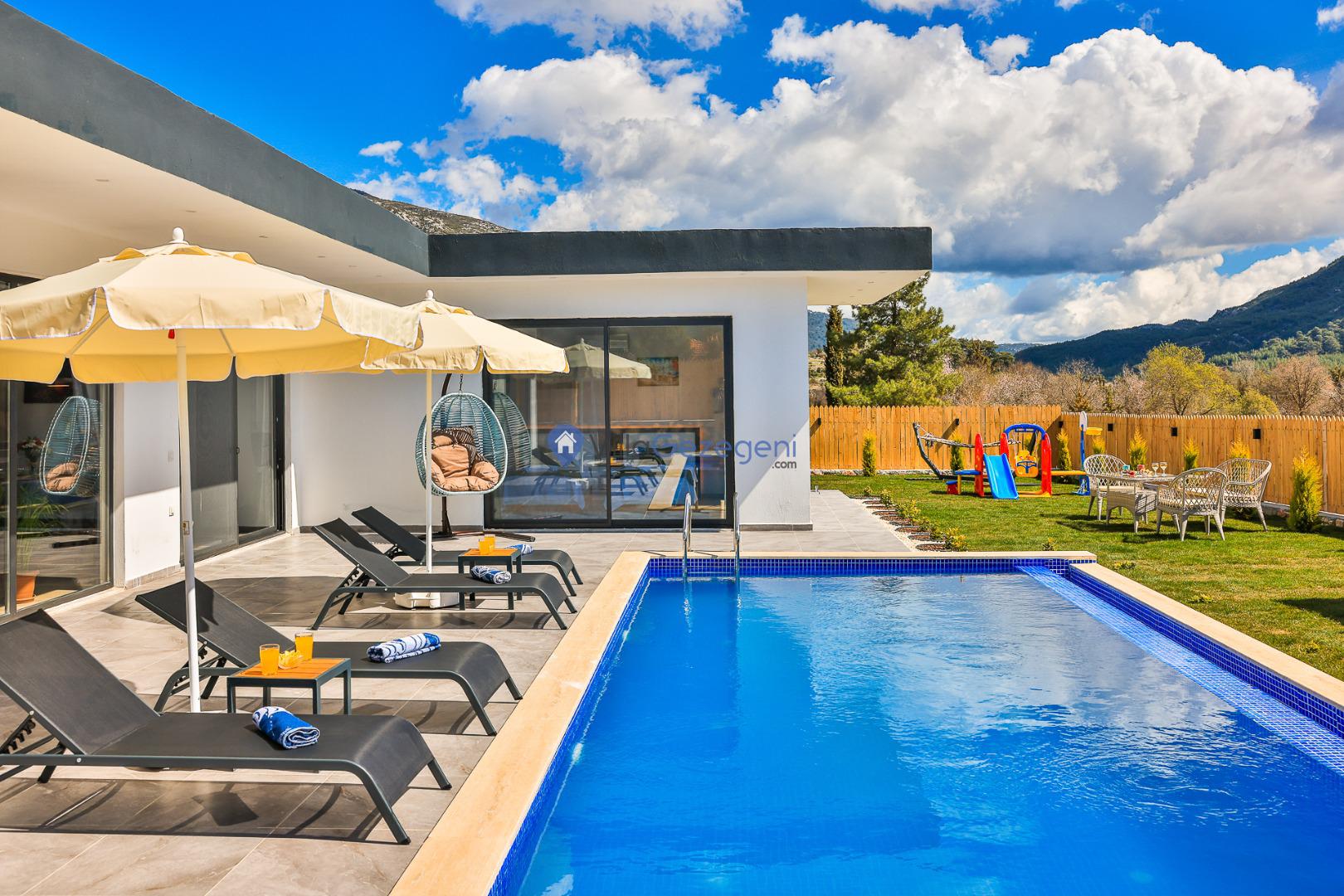 Villamızın genel konsept ve özelliklerinden tekrar bahsedecek olursak; villamızın 1 adet müstakil özel havuzu bulunmaktadır. Ortalama bir bahçeye sahip olan villamız rahatlığı ön planda tutan 3 adet yatak odası,4 yatak,3 banyo, hareket alanı geniş bir mutfak ve 8 kişinin geniş aralıklarla rahatlıkla oturabileceği koltuklara sahip salonu bulunmaktadır.