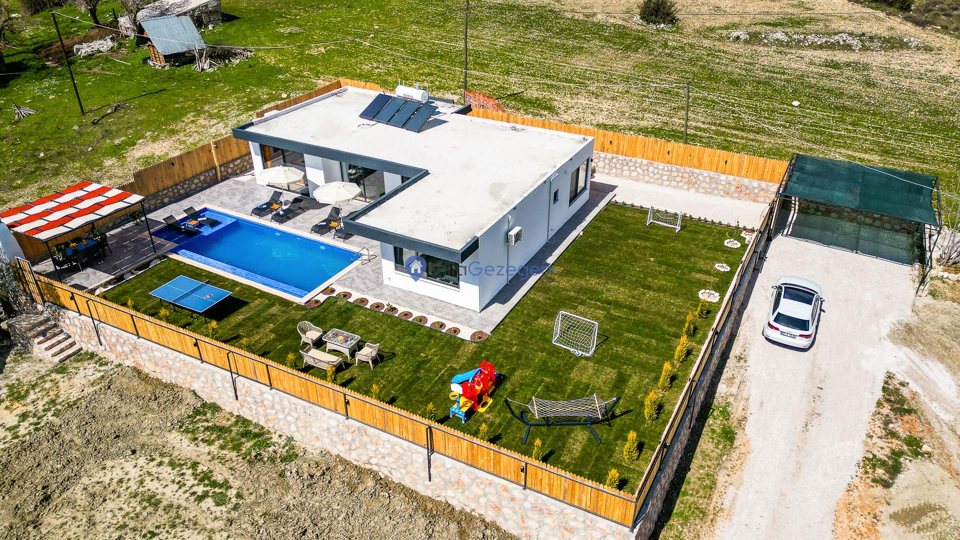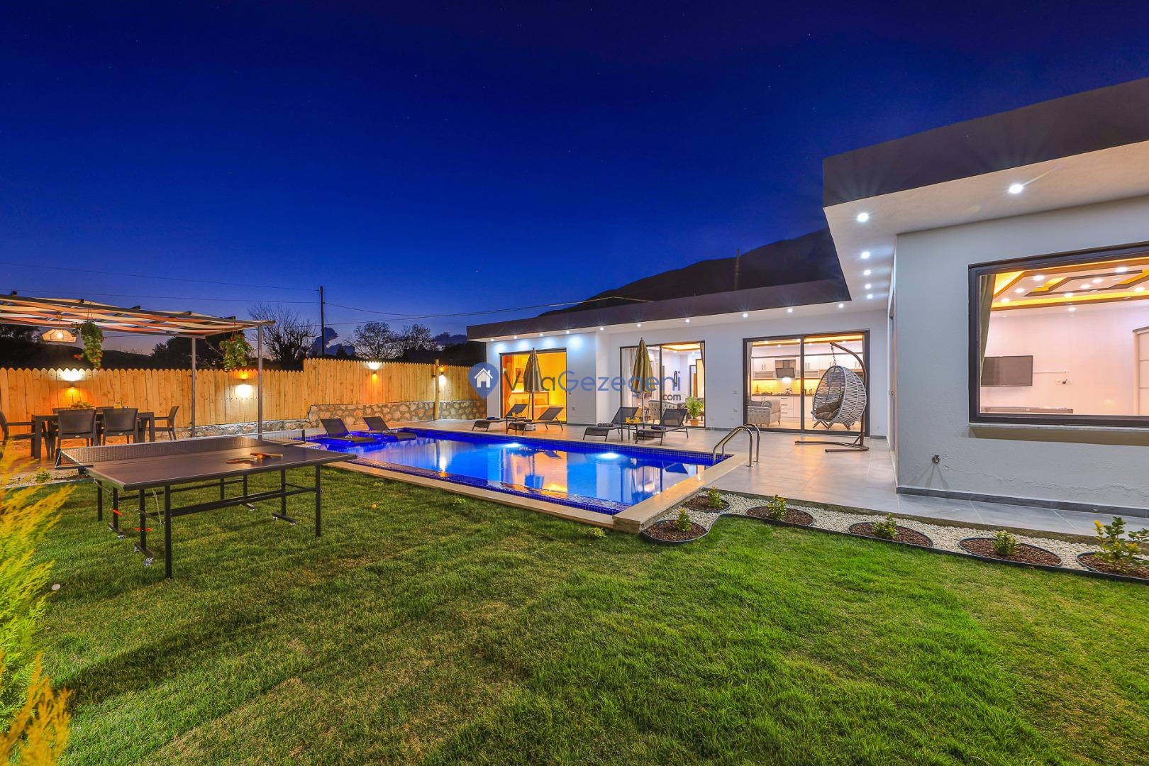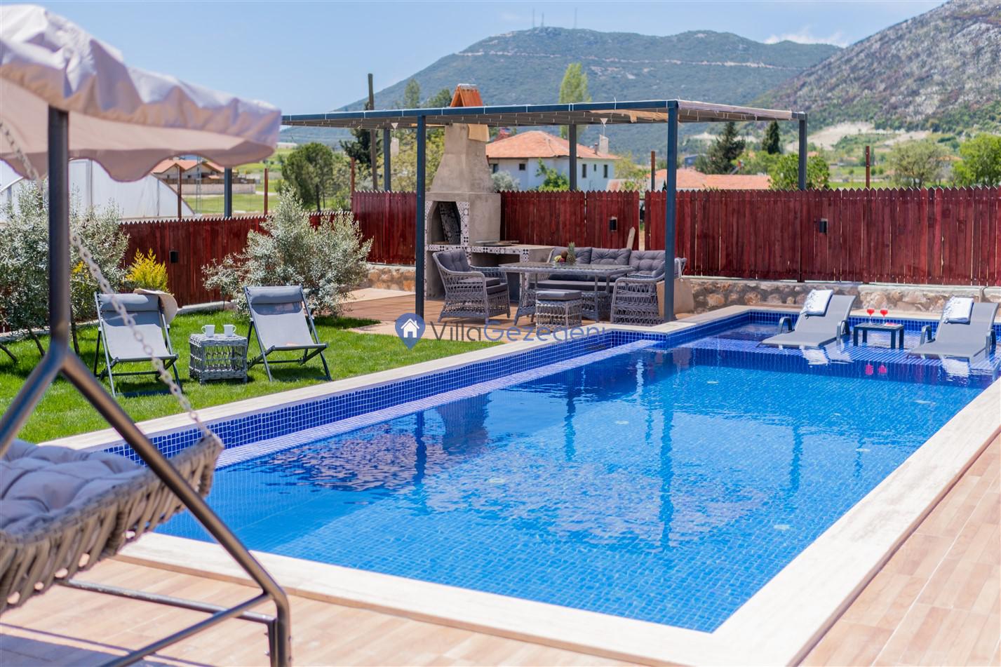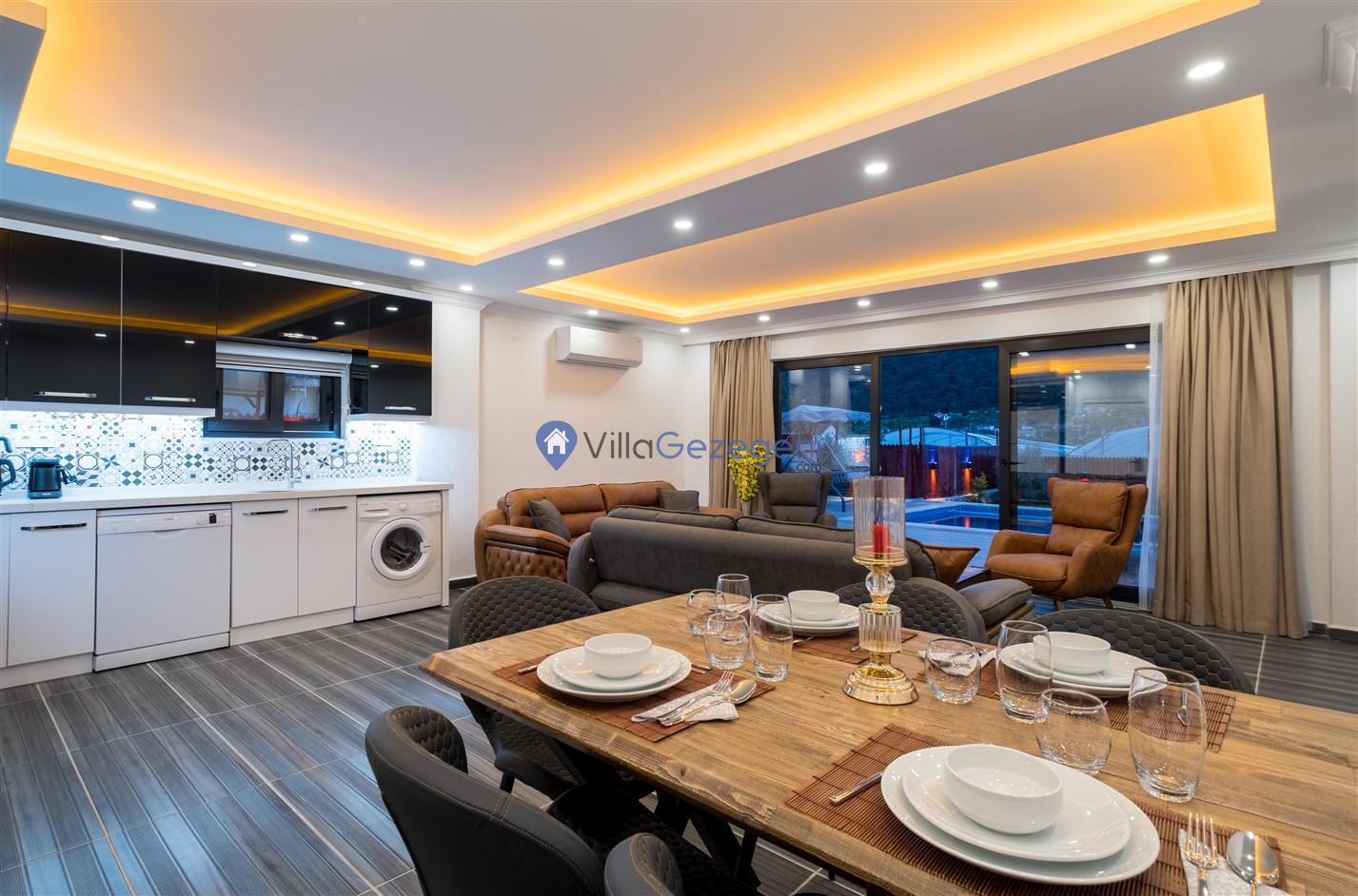 Villamızın genel konsept ve özelliklerinden tekrar bahsedecek olursak; villamızın 1 adet müstakil özel havuzu bulunmaktadır. Ortalama bir bahçeye sahip olan villamız rahatlığı ön planda tutan 3 adet yatak odası,4 yatak,3 banyo, hareket alanı geniş bir mutfak ve 8 kişinin geniş aralıklarla rahatlıkla oturabileceği koltuklara sahip salonu bulunmaktadır.