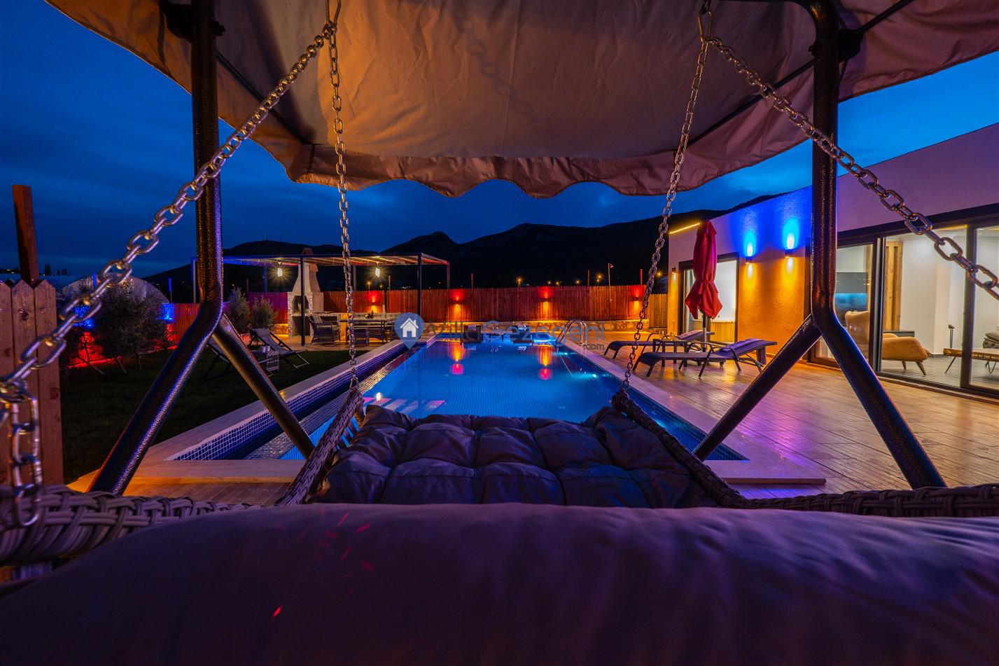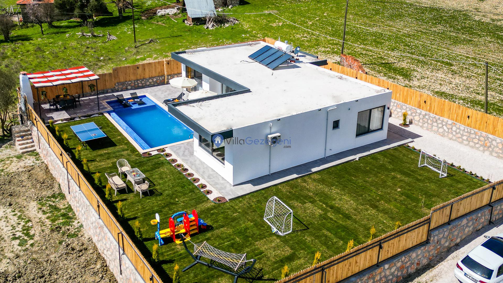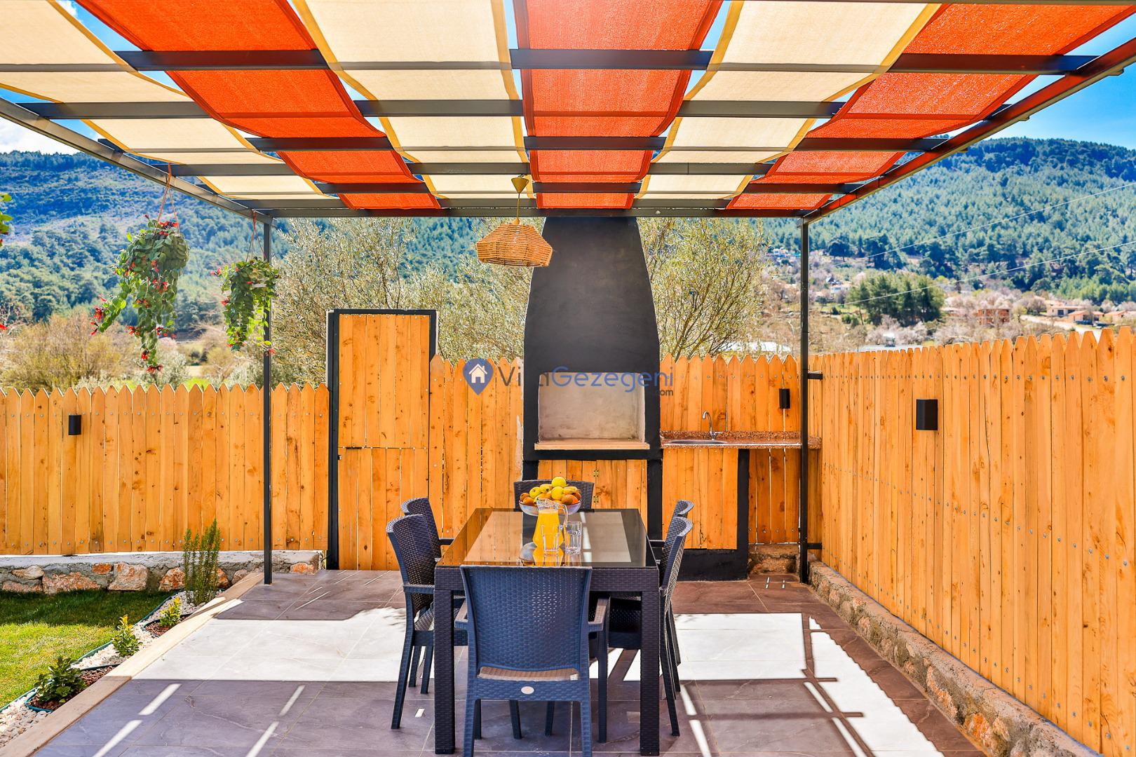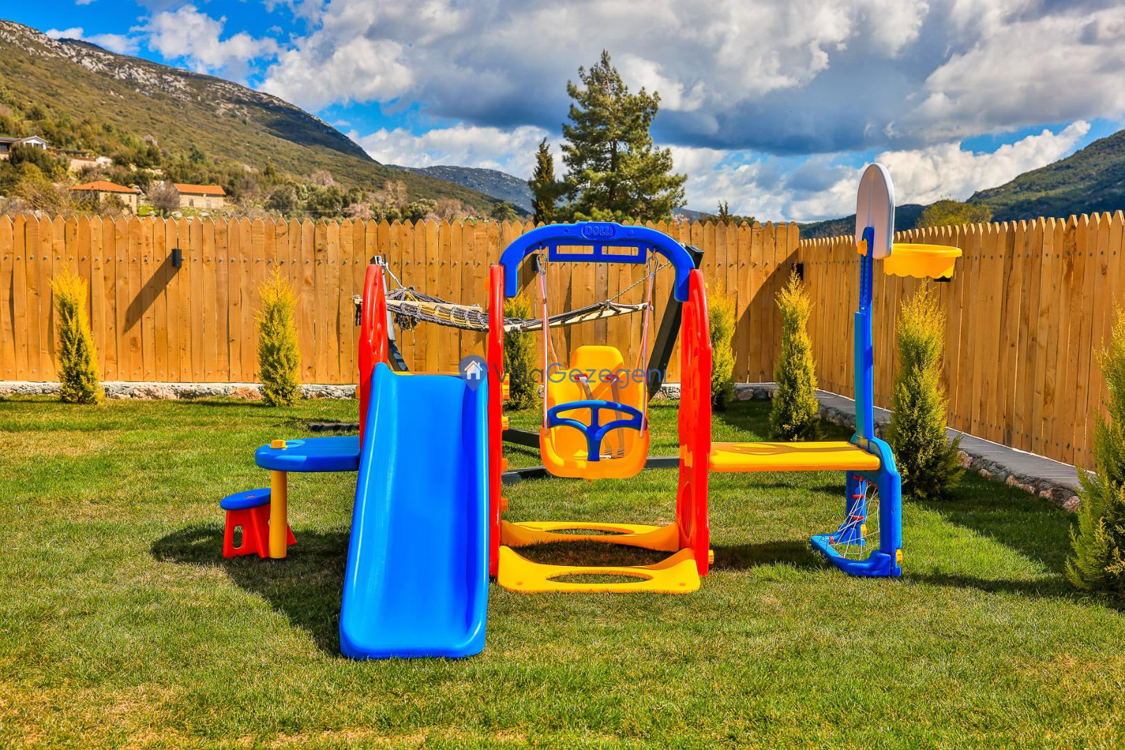Yemek Masası ve bahçe mobilyaları kullanımınız için hazır bulunmaktadır sevdikleriniz ile beraber yemekler yiyip sohbetin dibine vurabilirsiniz. Villanın bahçesindeki salıncak ile keyifli vakitler geçirebilirsiniz.