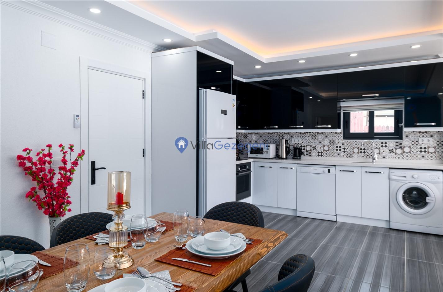 Villamız günlük hayatta sık kullanılan; Mikrodalga fırın, ankastre fırın, buzdolabı, çamaşır makinası, bulaşık makinesi, elektrikli su ısıtıcı kettle, ankastre 4’lü ocak,6 kişilik yemek takımı, kaşık ve çatal takımı, tencere ve tava takımı, bardaklar yer almaktadır. İhtiyacınız durumunda villamızda bulunmayan malzemeler hakkında bizle iletişime geçebilir ve yardım isteyebilirsiniz.