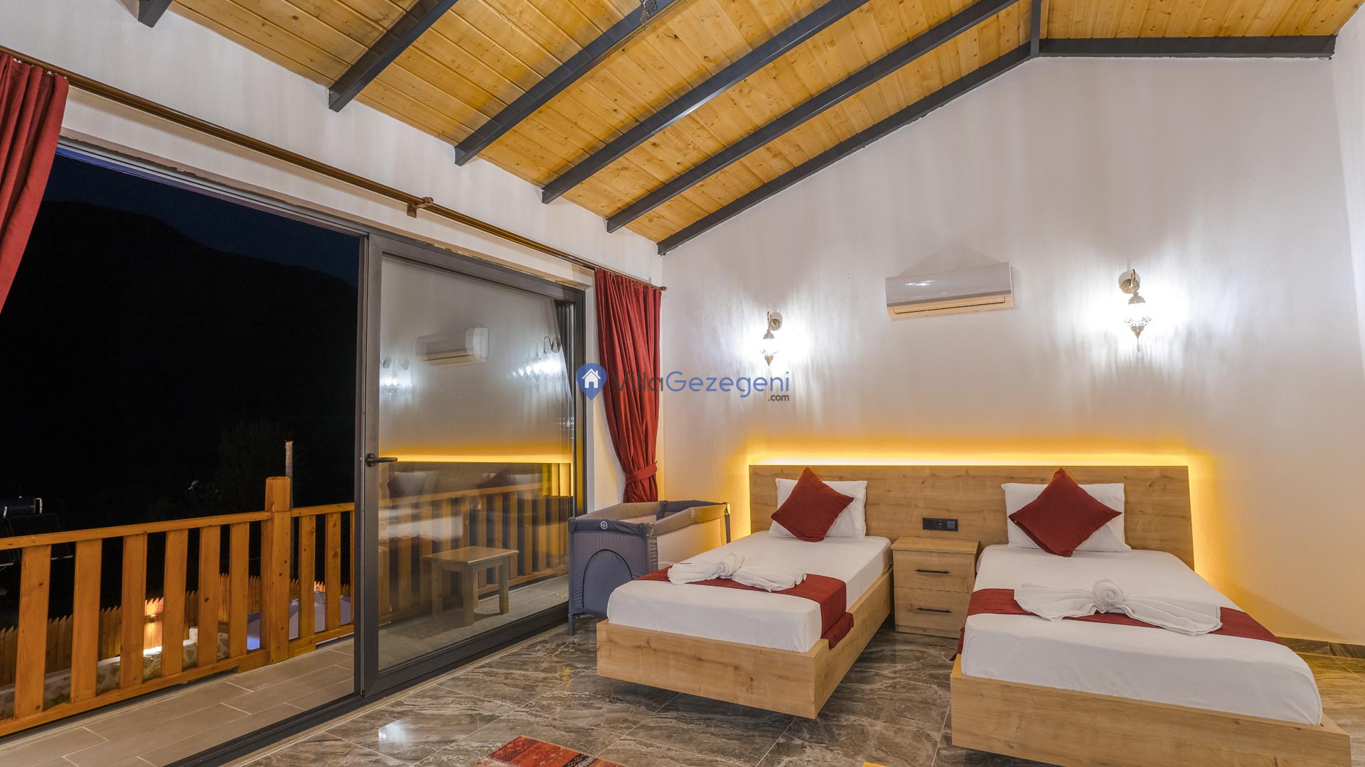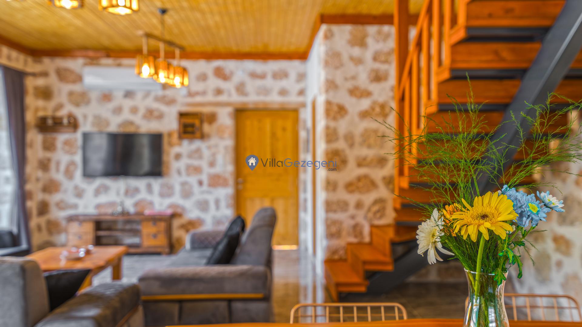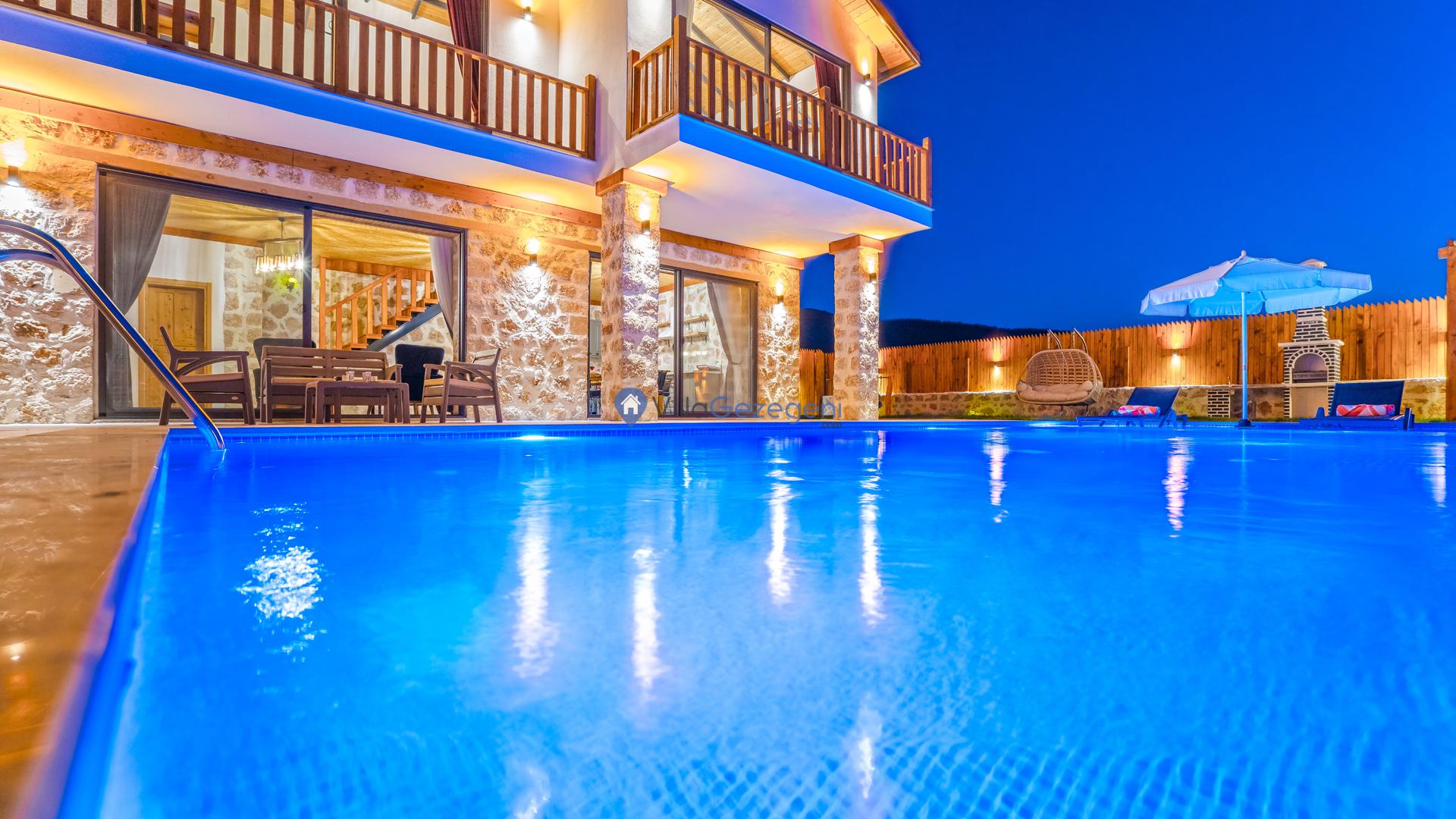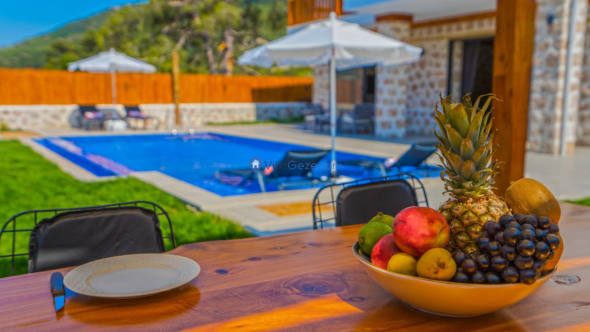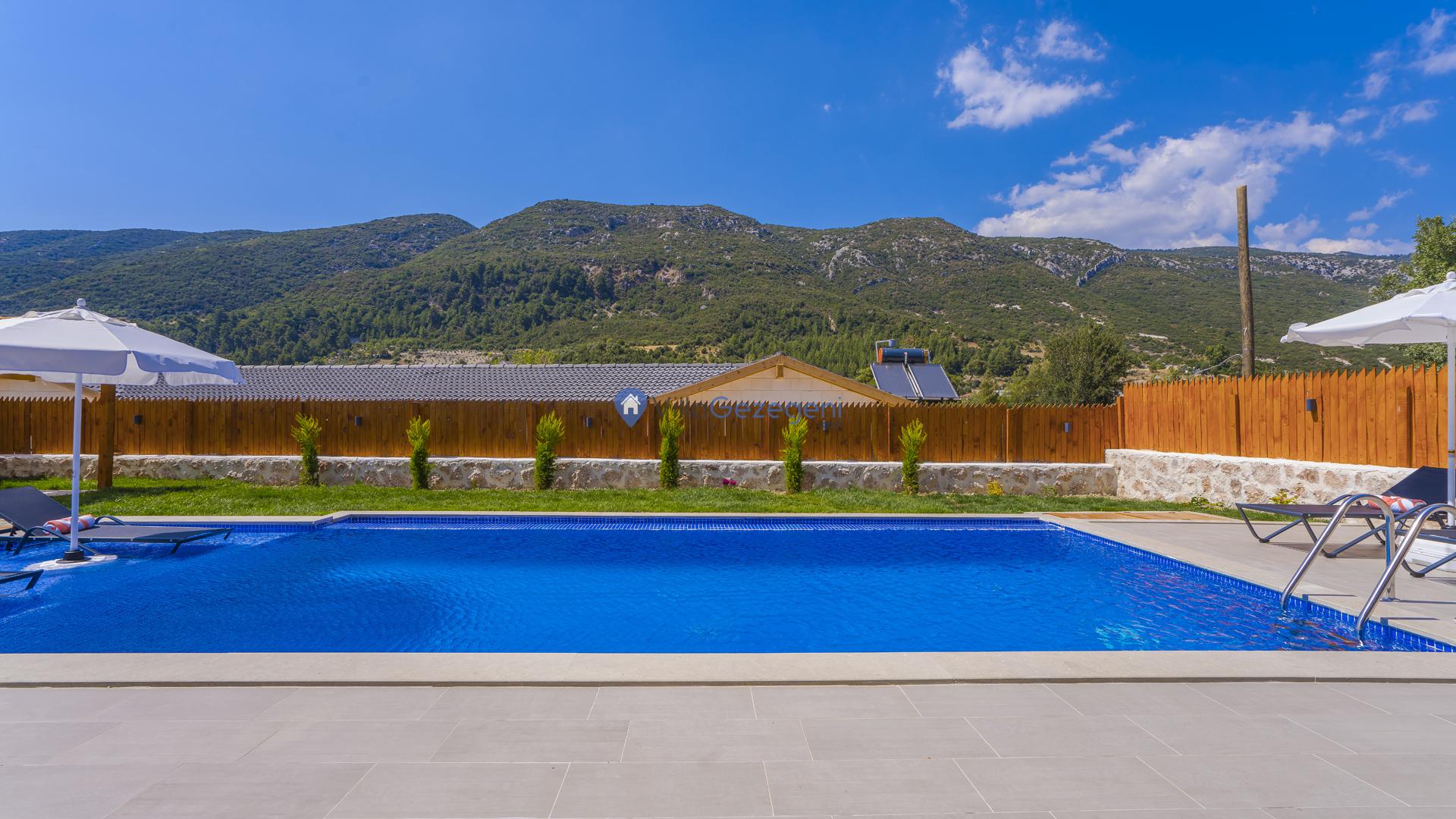 Kalkan Sarıbelen bölgesinde yer alan 2 yatak odalı 4 kişilik havuzu korunaklı,doğa içerisinde muhafazakar kiralık aile ve balayı villası.