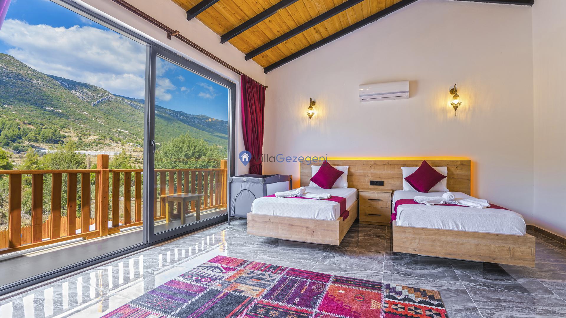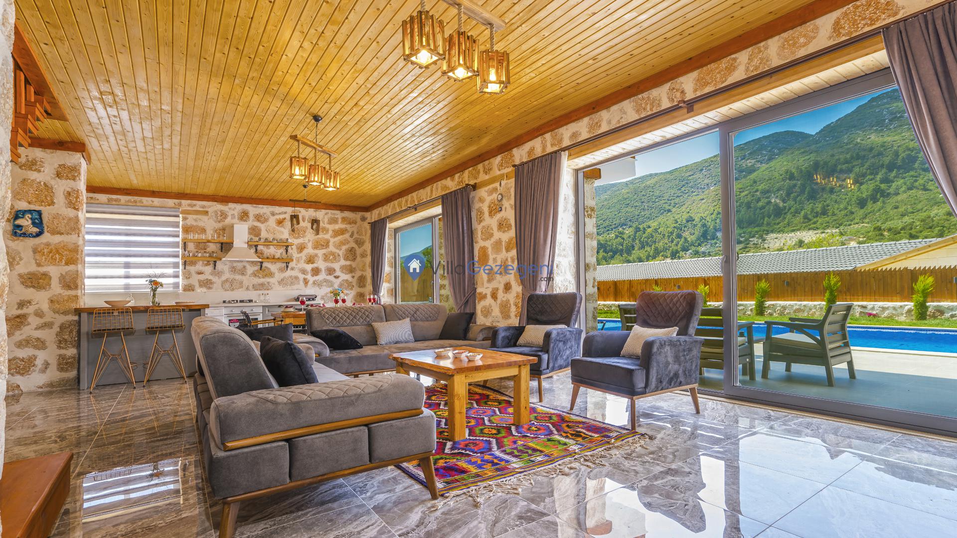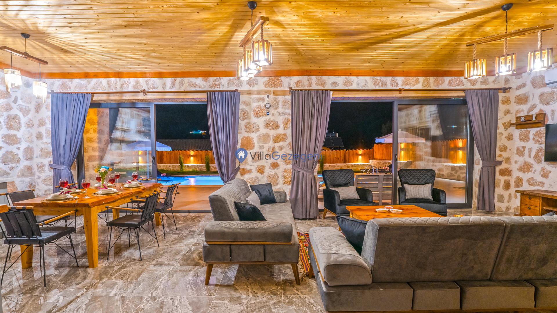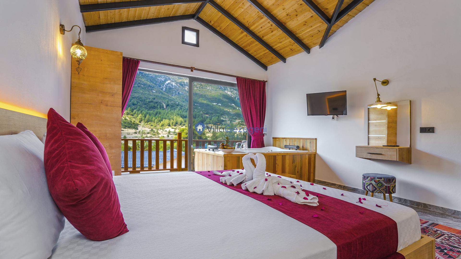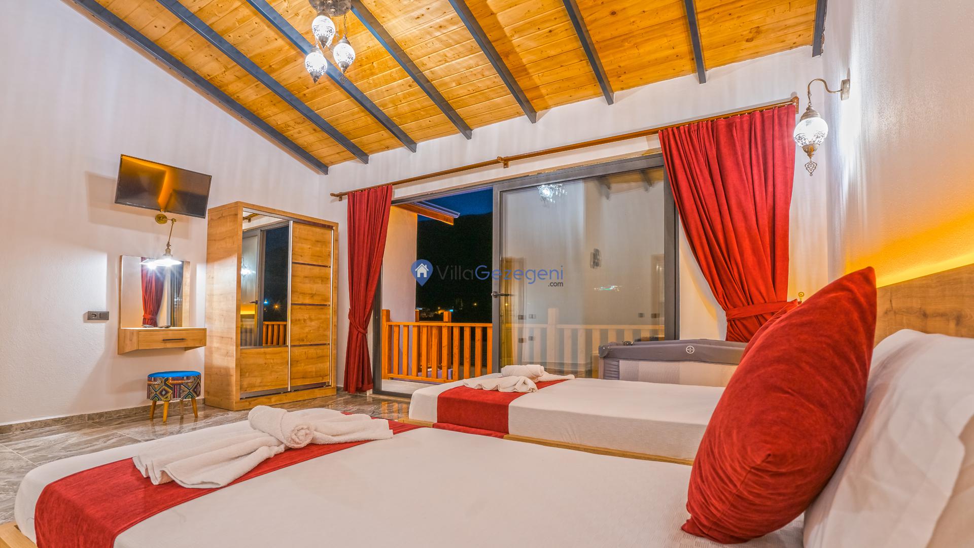 Kalkan Sarıbelen bölgesinde yer alan 2 yatak odalı 4 kişilik havuzu korunaklı,doğa içerisinde muhafazakar kiralık aile ve balayı villası.