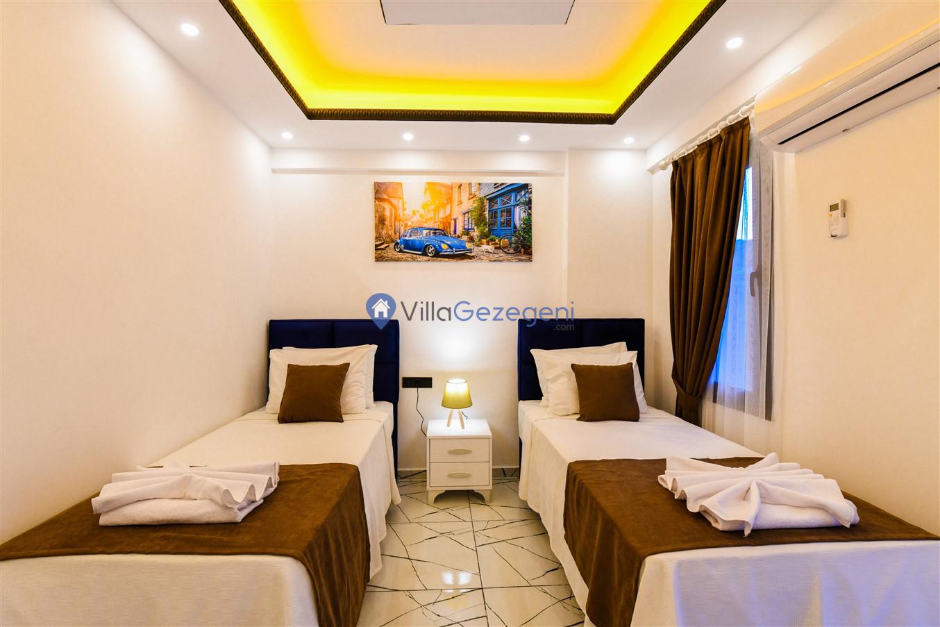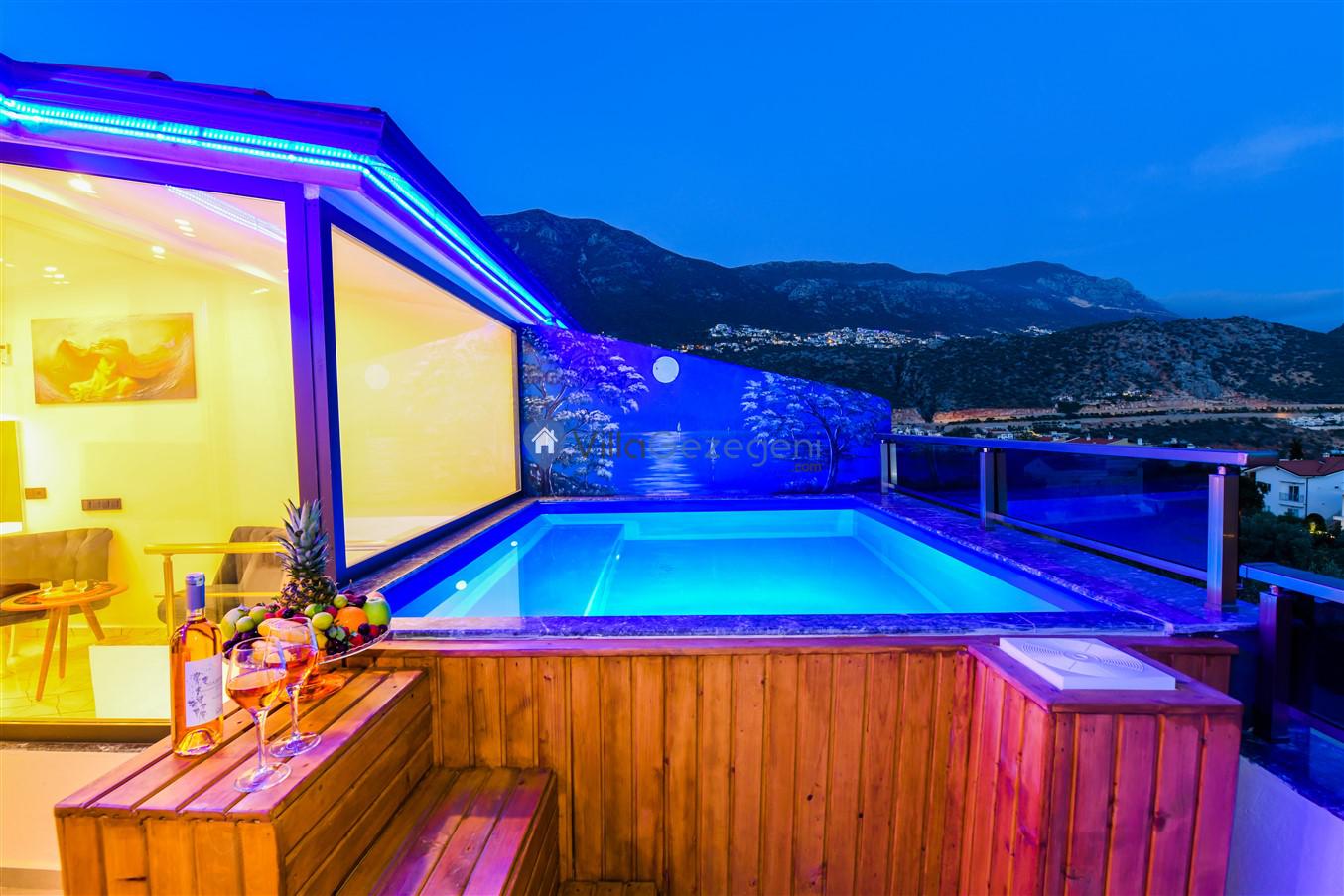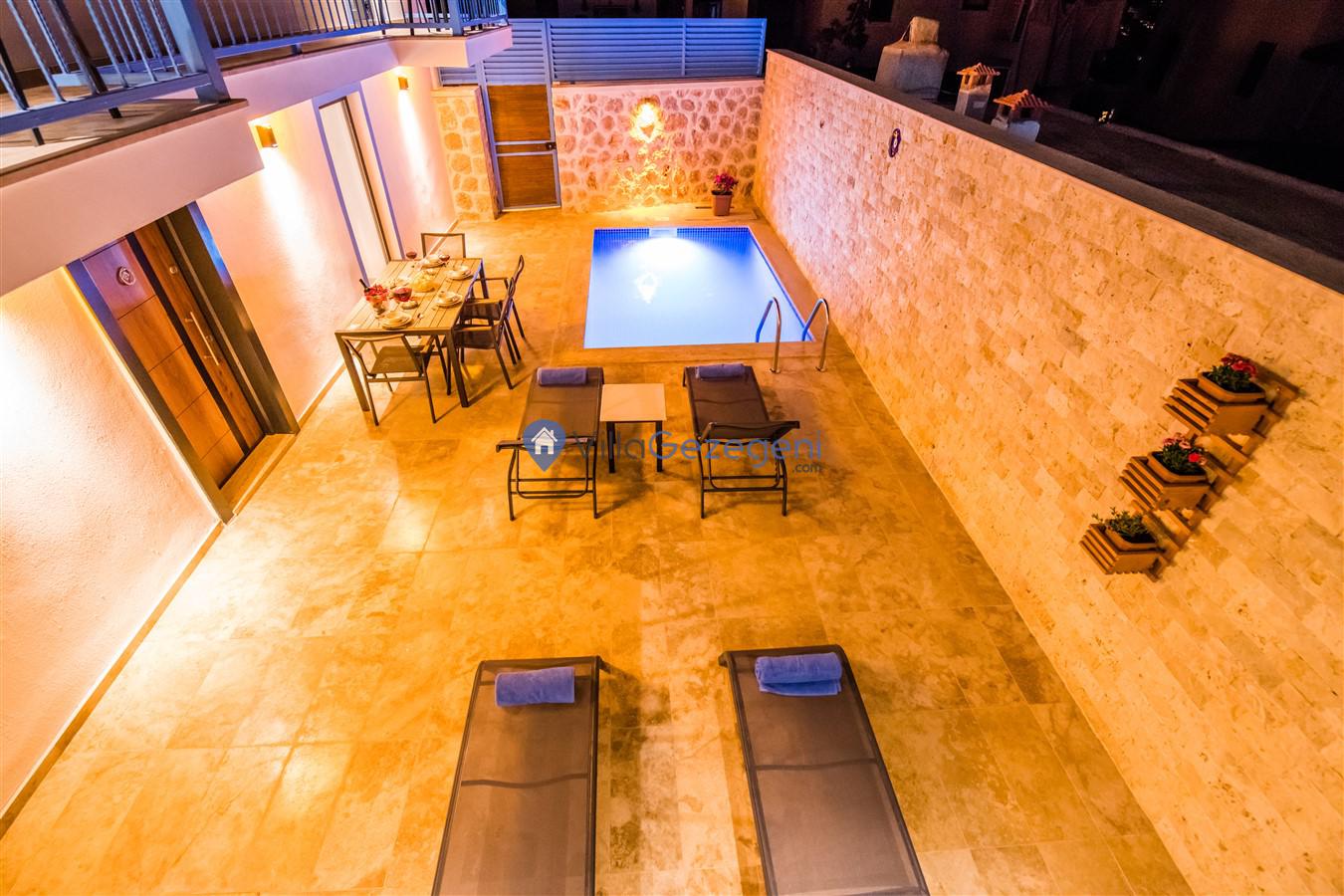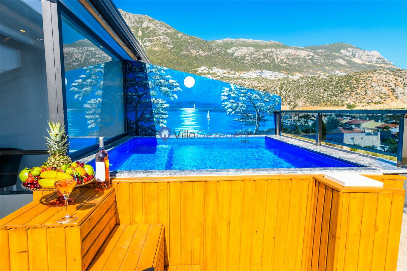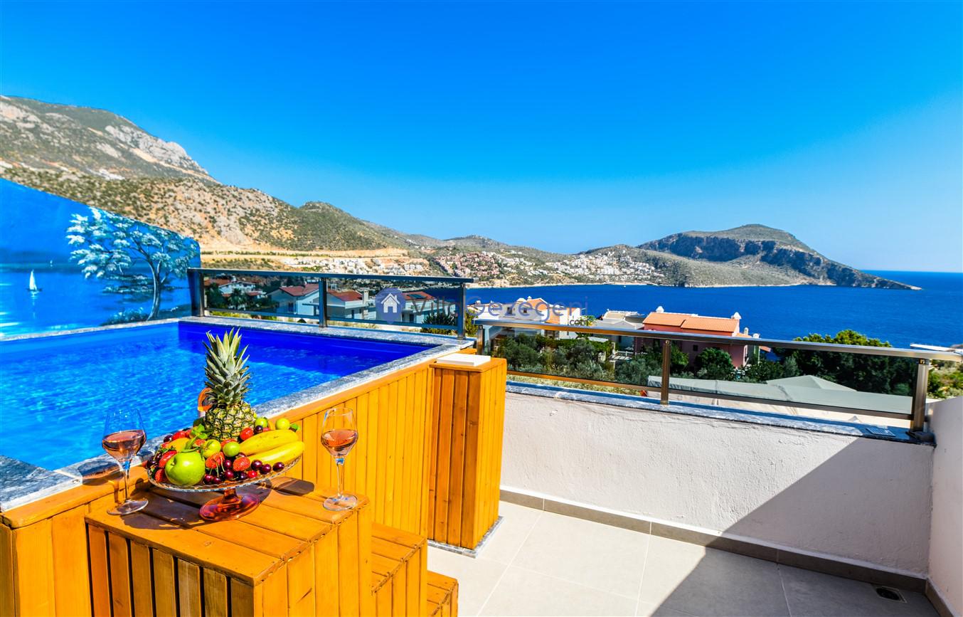 Kaş/Kalkan/Ortaalan Bölgesinde yer alan 6 yatak odalı 12 kişi kapasiteli Şehir Merkezine Yakın Deniz Manzaralı Lüks Tatil Villasıdır.